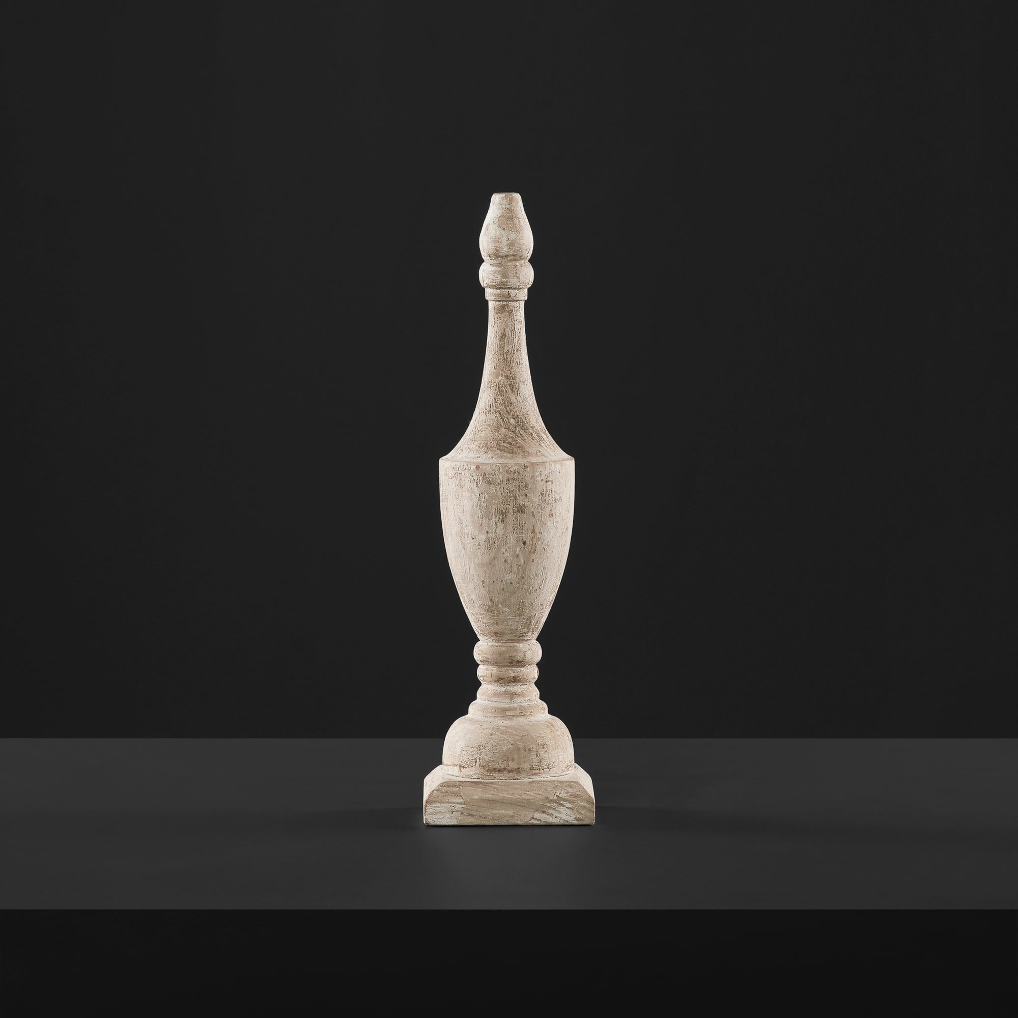 Bello acento decorativo, tallado totalmente a mano a partir de madera natural maciza, en tonos blancos y grises con efecto desgastado. Las formas geométricas le aportan visibilidad y harán de tus espacios, lugares único y fabulosos.