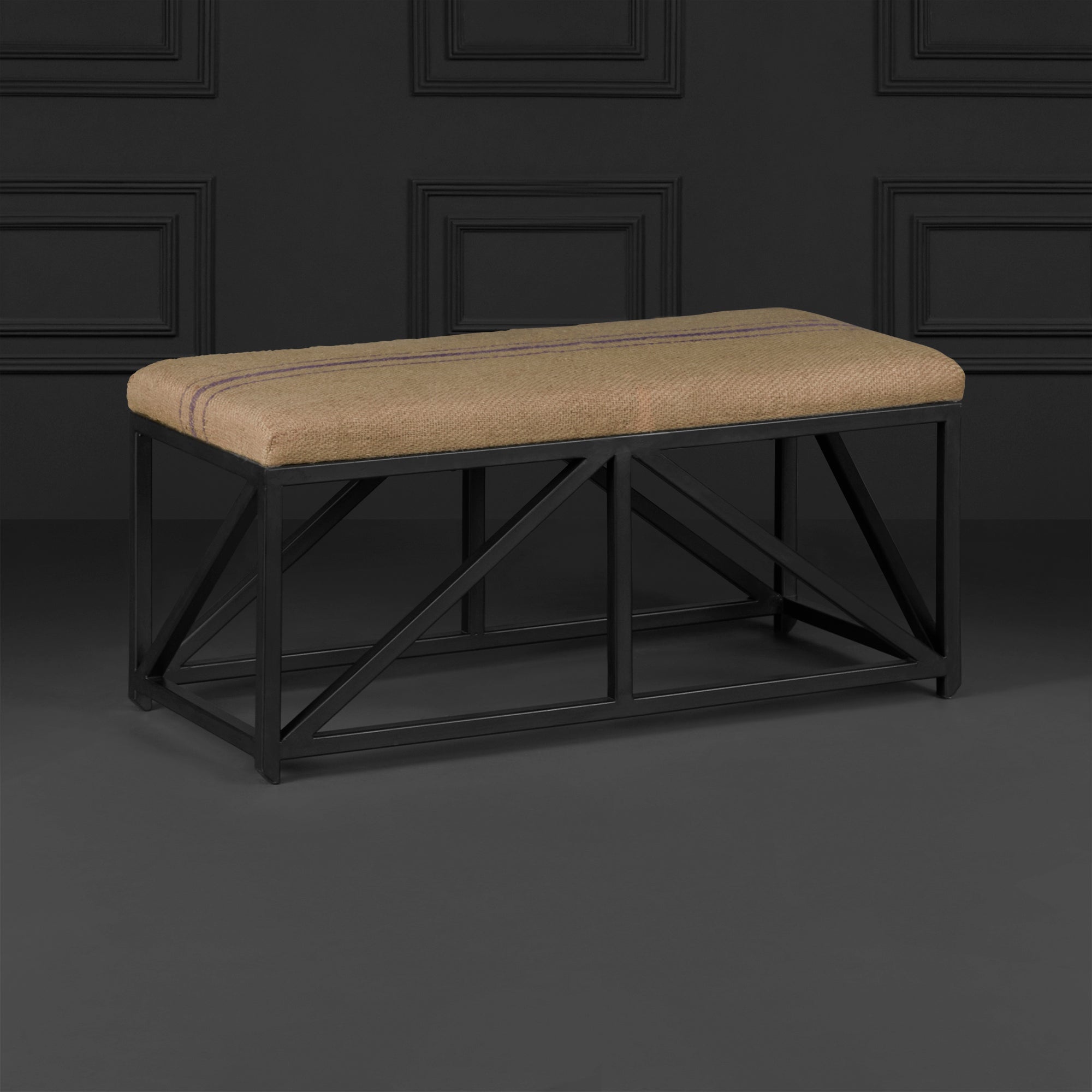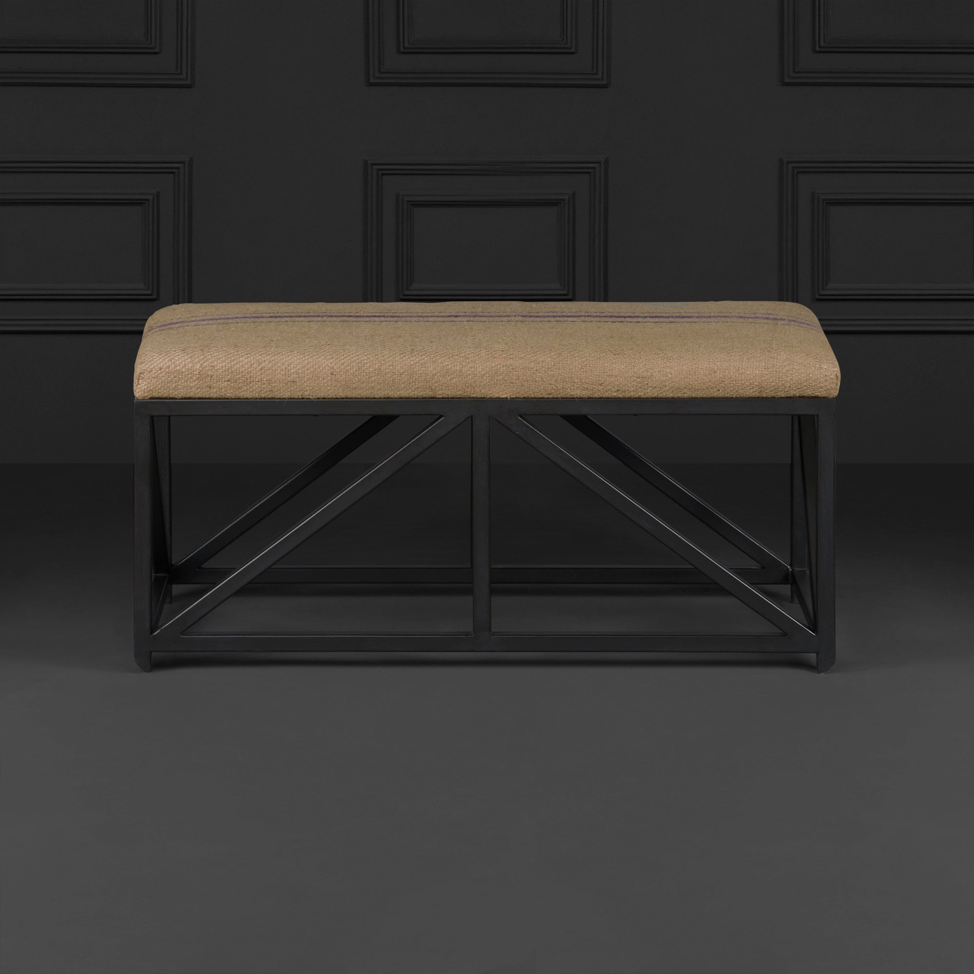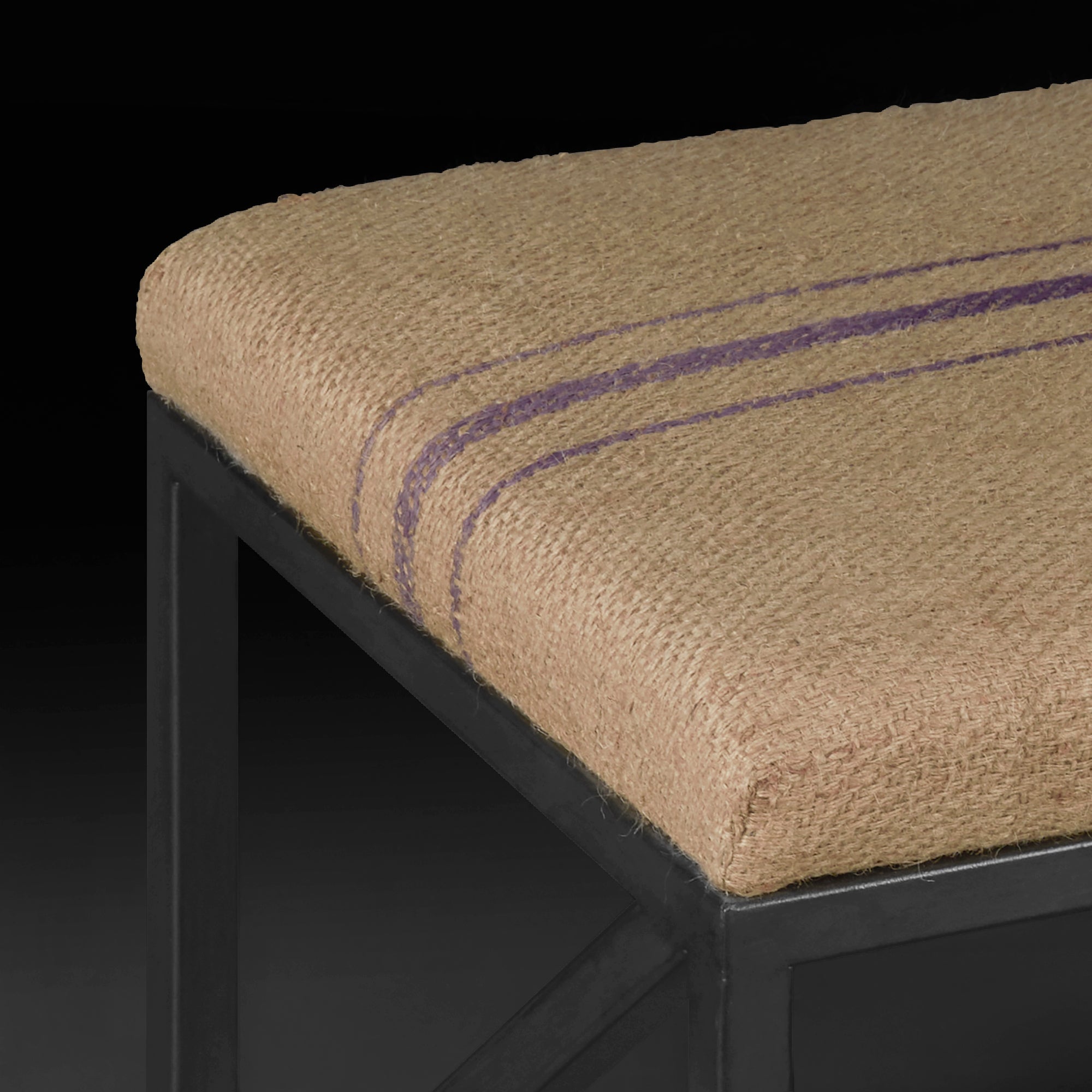 Banca rectangular que combina de manera exitosa, elementos decorativos de fabricación artesanal, elaborada en su estructura, a partir de sólida herrería en tono obscuro, con un suave y cómodo asiento fabricado en Tela de Yute, comprueba que los pequeños detalles hacen que nuestro entorno luzca de manera diferente, diseño único y exclusivo de Casa Armida.