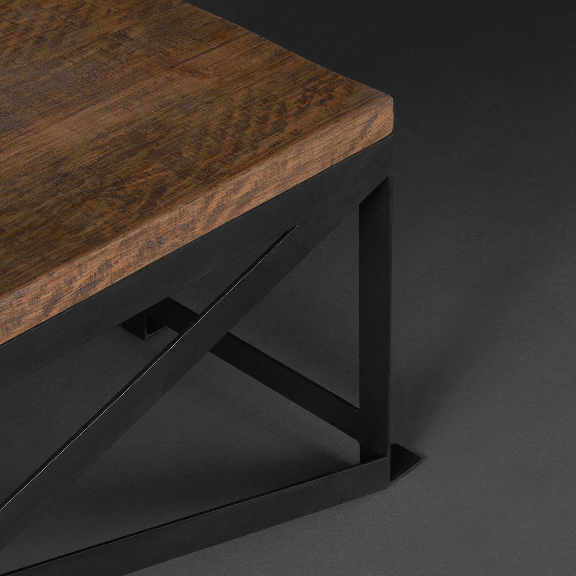 Nuestra Banca Morris se compone de una sólida base de metal en acabado negro, así como de una cubierta en Madera Recuperada Natural República. Una pieza sencilla en diseño, pero que ofrece estilo y vanguardia.