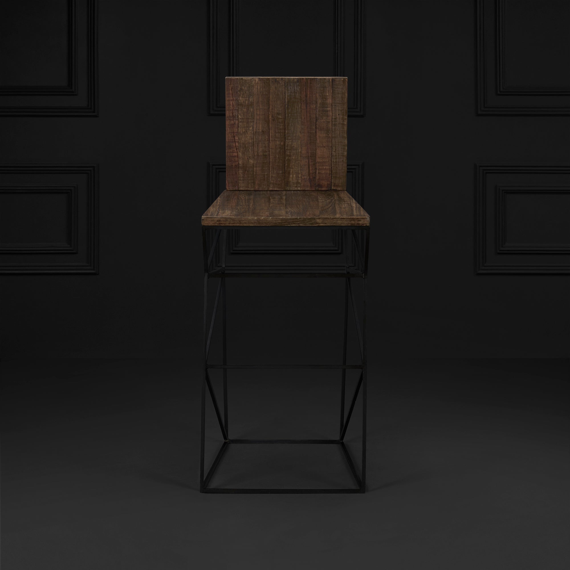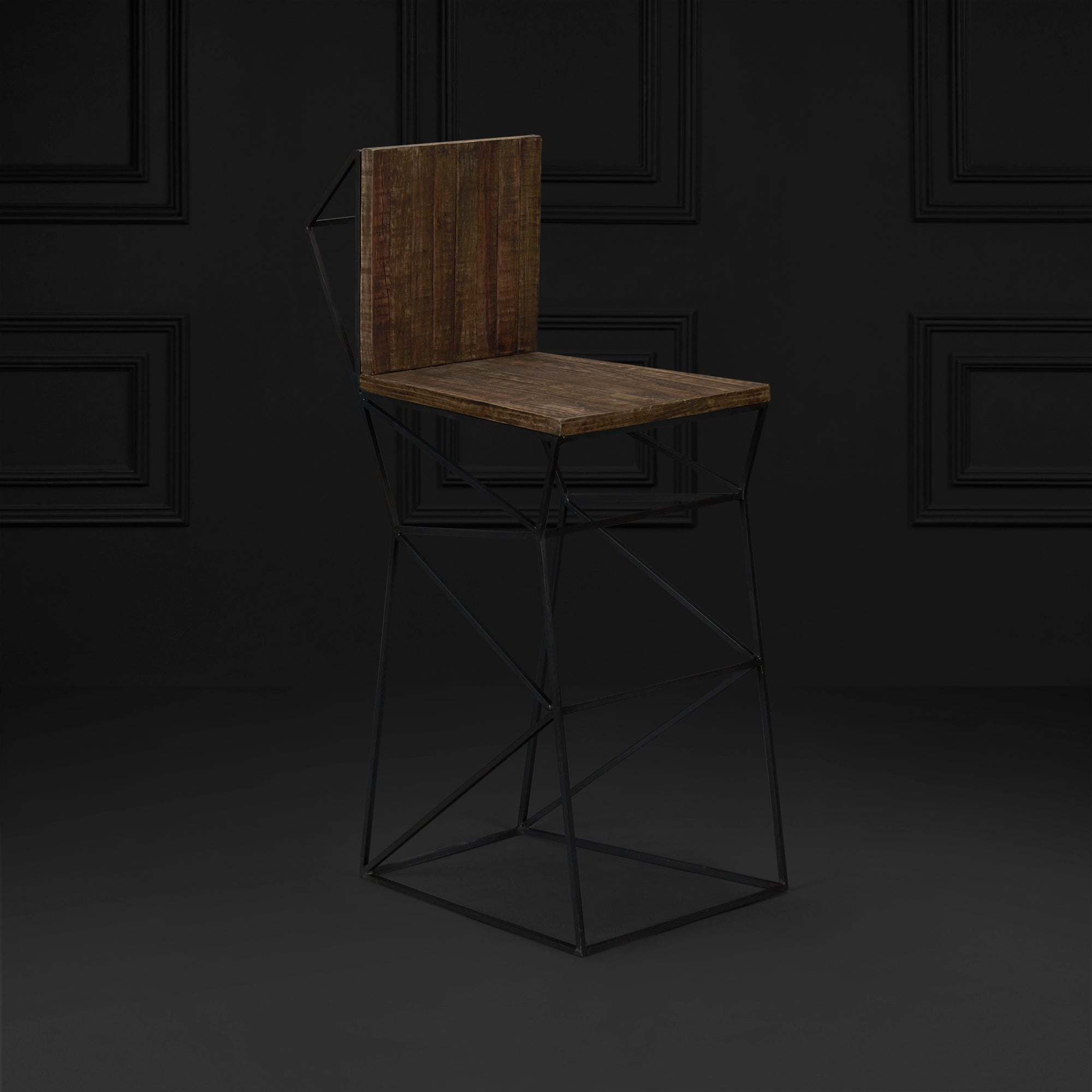 Pieza de estilo moderno, compuesto por una estructura metálica en acabado Tinta y Laca, de un atractivo diseño geométrico, y por un asiento de madera en acabado Natural República.