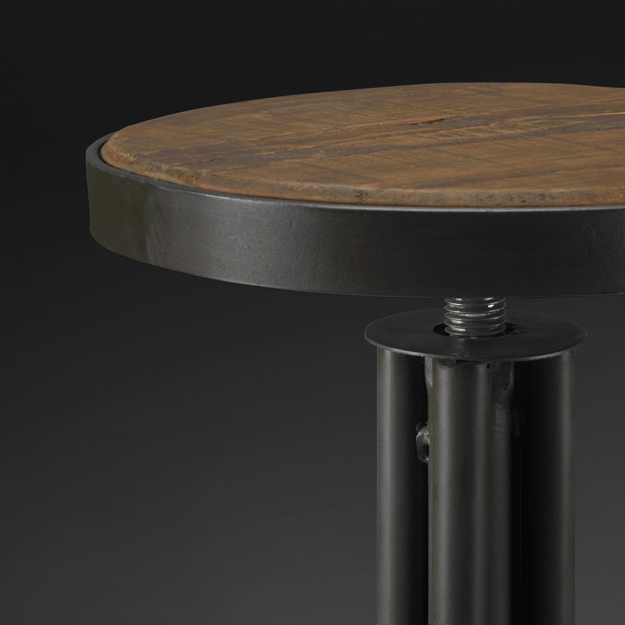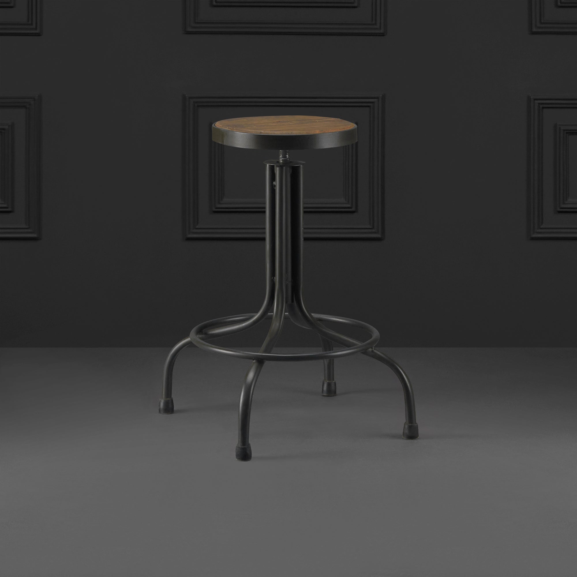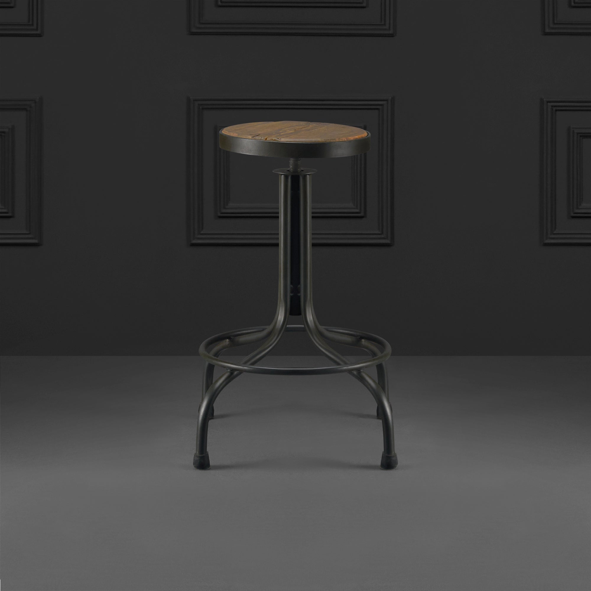 Esbelta pieza de asiento de madera, manufacturada por las manos artesanales de Casa Armida; el Banco Aristóteles ofrece soporte y firmeza debido a su fabricación en sólida herrería, además de integrar un mecanismo de altura ajustable.