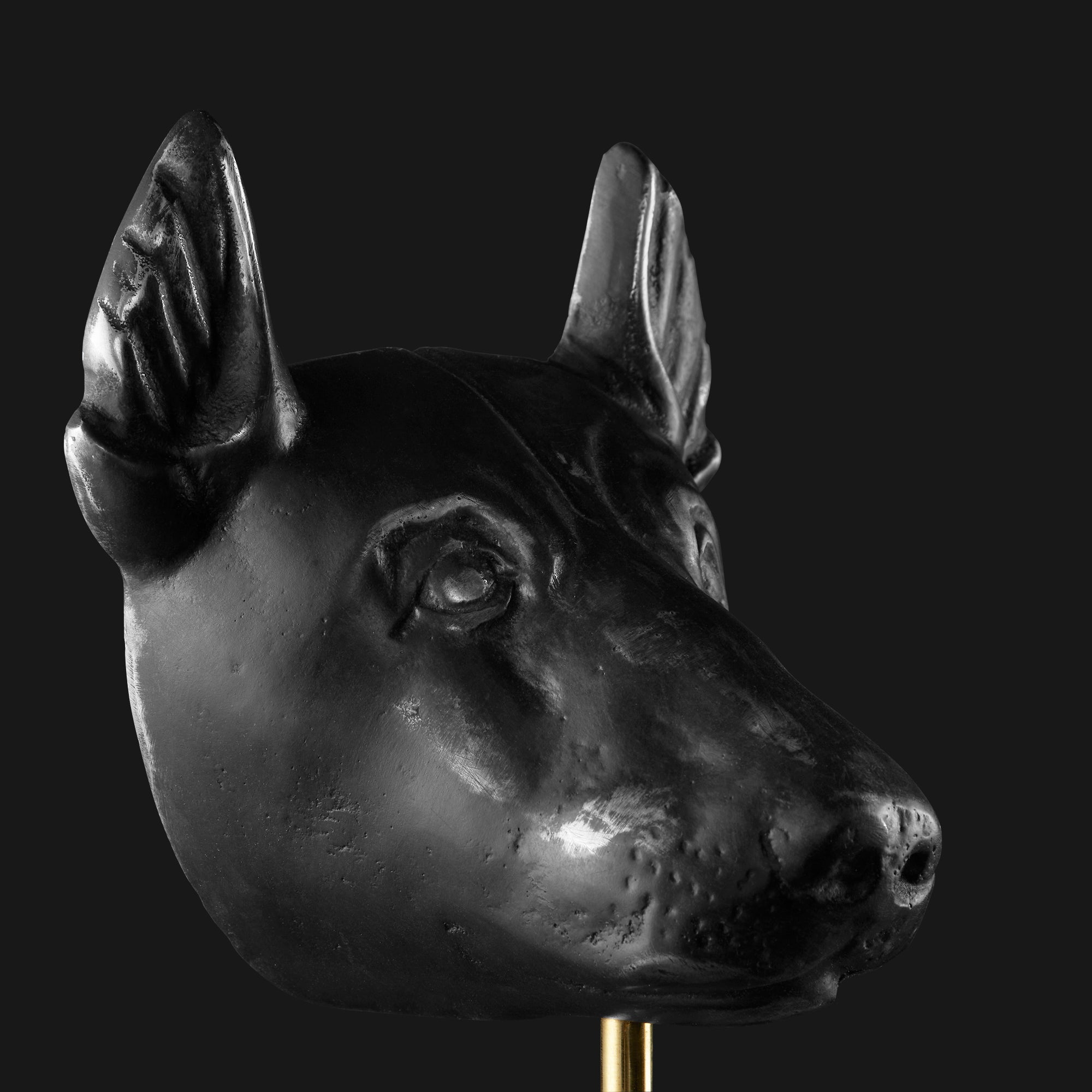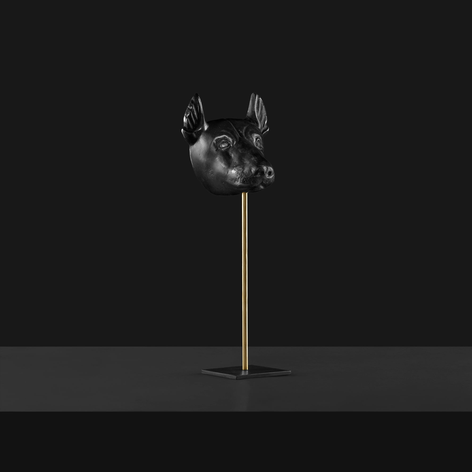 Dentro de tu espacio siempre hay lugar para estos fantásticos complementos de decoración, hecha a partir una pieza esculpida de una cabeza de perro a escala y elaborada a base de aluminio el cual es fundido y vaciado en molde para obtener esa forma en acabado negro brillante, esta figura se encuentra colocada sobre un pedestal de bronce, su diseño, color y sobre todo la armonía que provoca el uso en una excelente opción para darle aún más estilo a tu hogar u oficina. Comprueba que los pequeños detalles hacen que nuestro entorno luzca de manera diferente.
