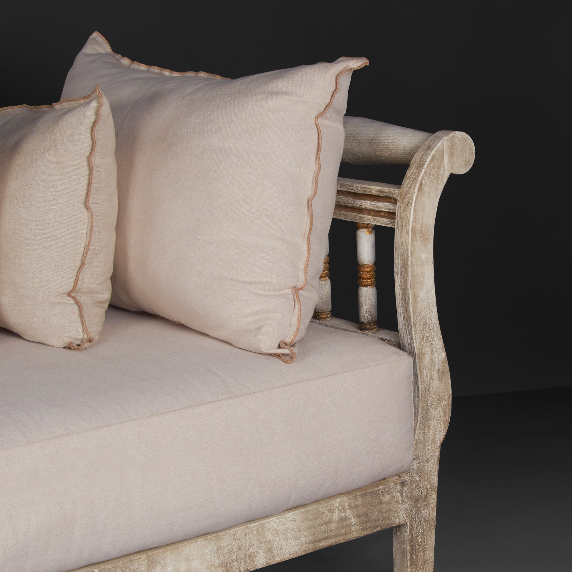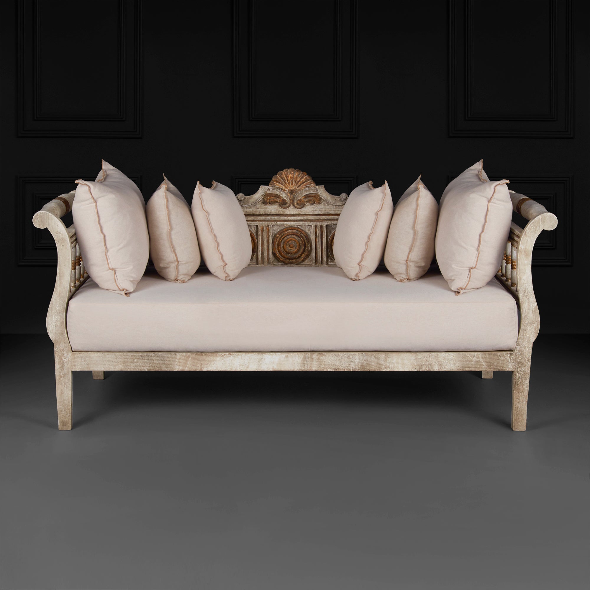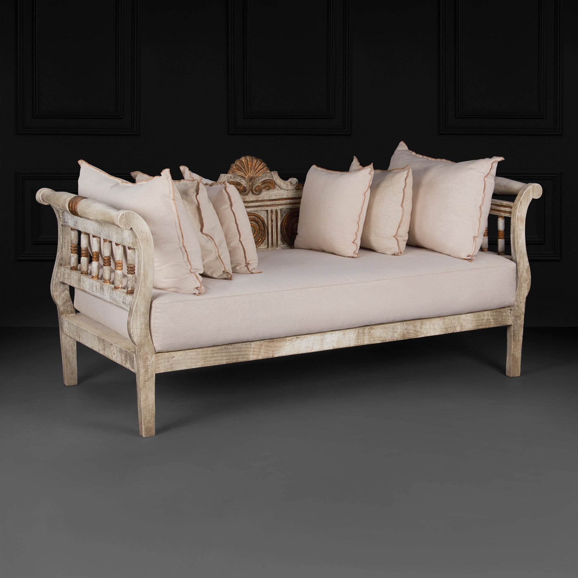 Pieza emblemática de nuestra Colección de Muebles. La Cama de Día Portuguesa denota su estilo y técnica artesanal de elaboración a mano. Mueble para uso en interiores, manufacturado en madera e integrado por un cómodo colchón de tamaño individual y cojines forrados en tela Fiordo Beige. Comprueba que los pequeños detalles hacen que nuestro entorno luzca de manera diferente.