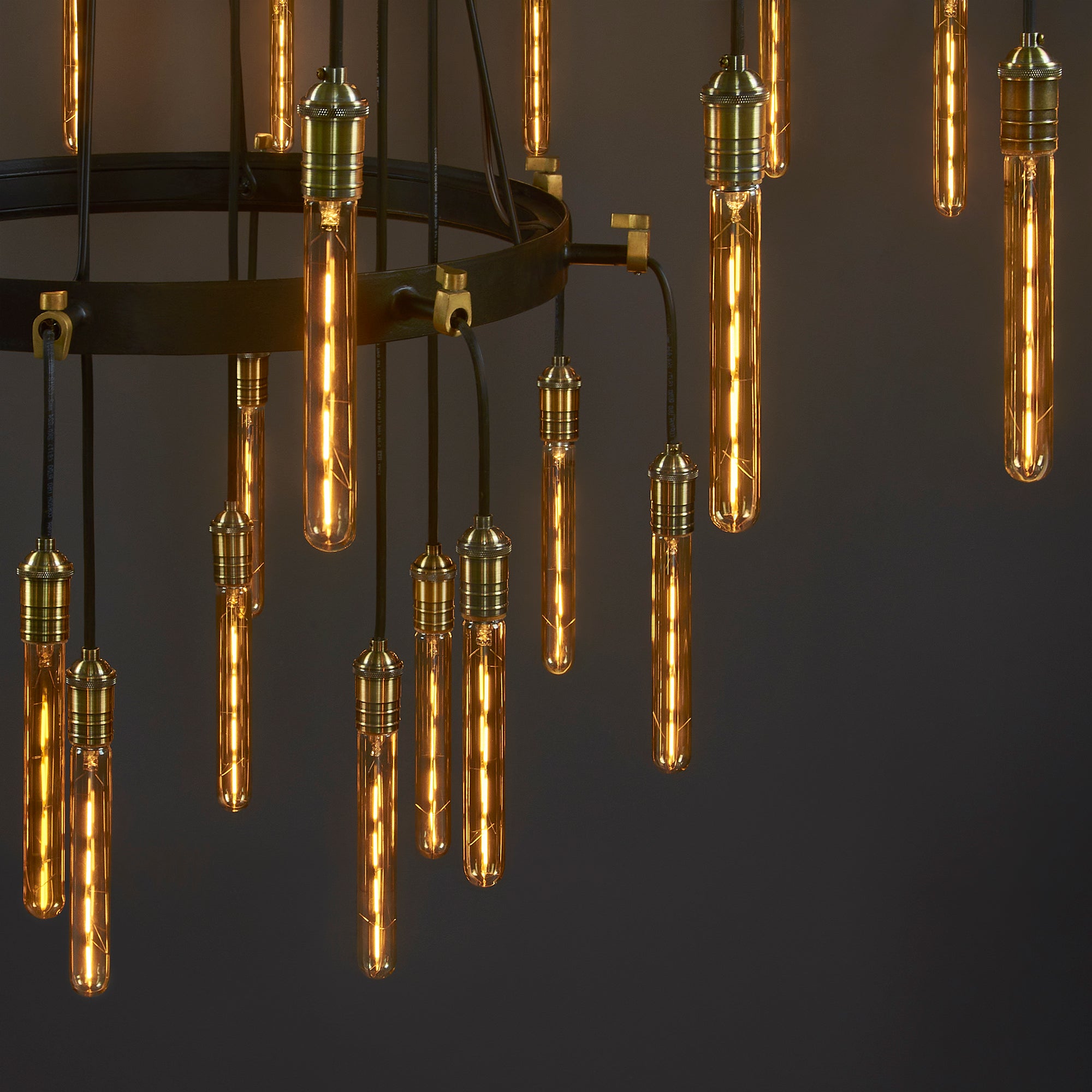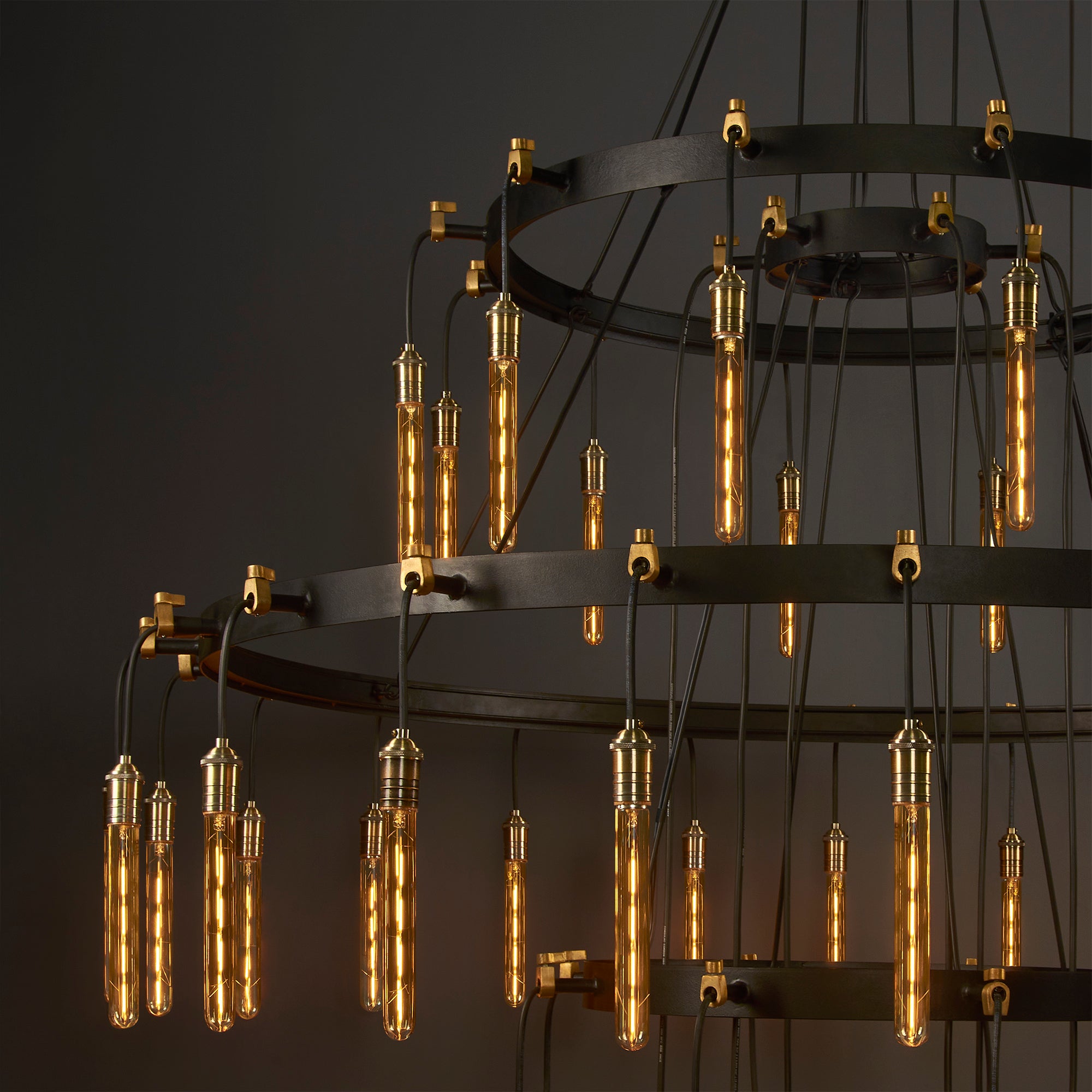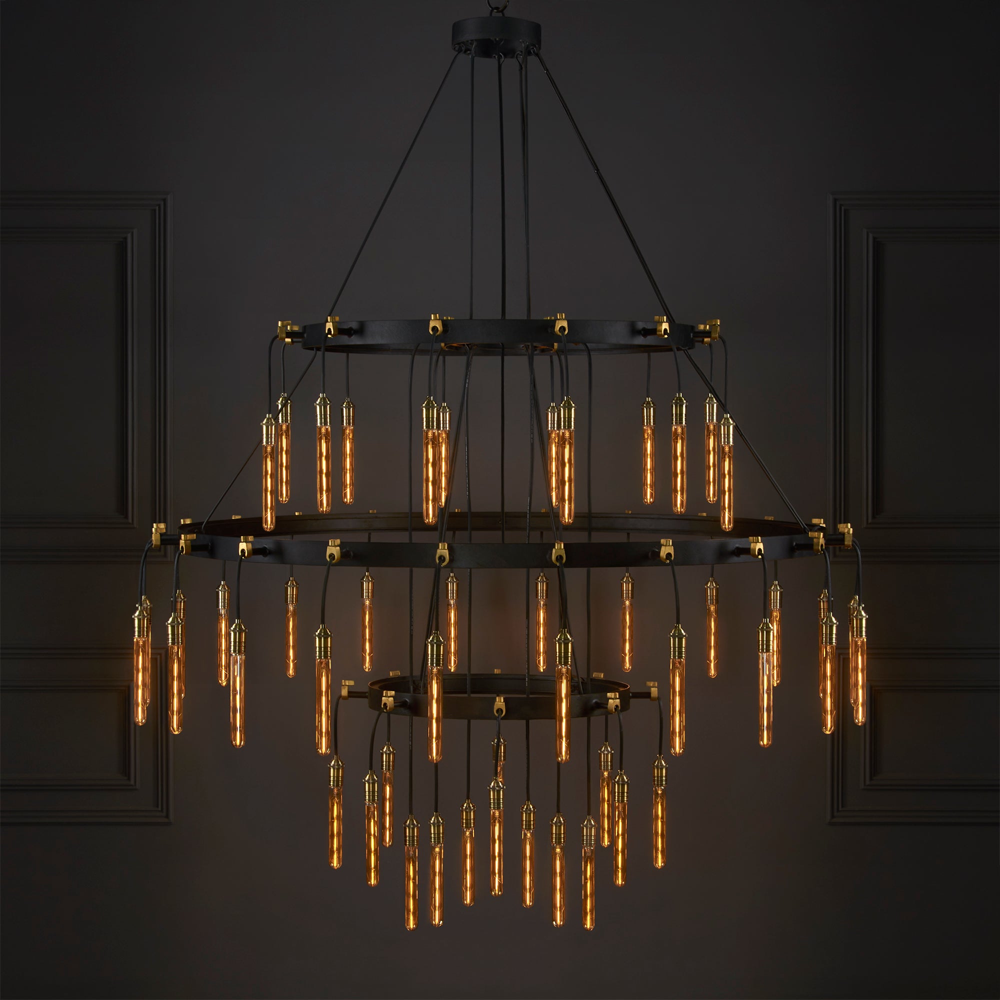 Nuestro majestuoso Candil Residente de 48 luces, es una pieza de iluminación muy atractiva por su moderno estilo y diseño. Compuesto por tres niveles de iluminación y por tres sólidas estructuras metálicas de forma circular, en acabado negro. Cada nivel, integrado por sus luces de iluminación, mismos que decoran y transmiten un sentido de movimiento que nos maravilla. Una bella creación de nuestra colección exclusiva de iluminación, que Casa Armida tiene para ti.
