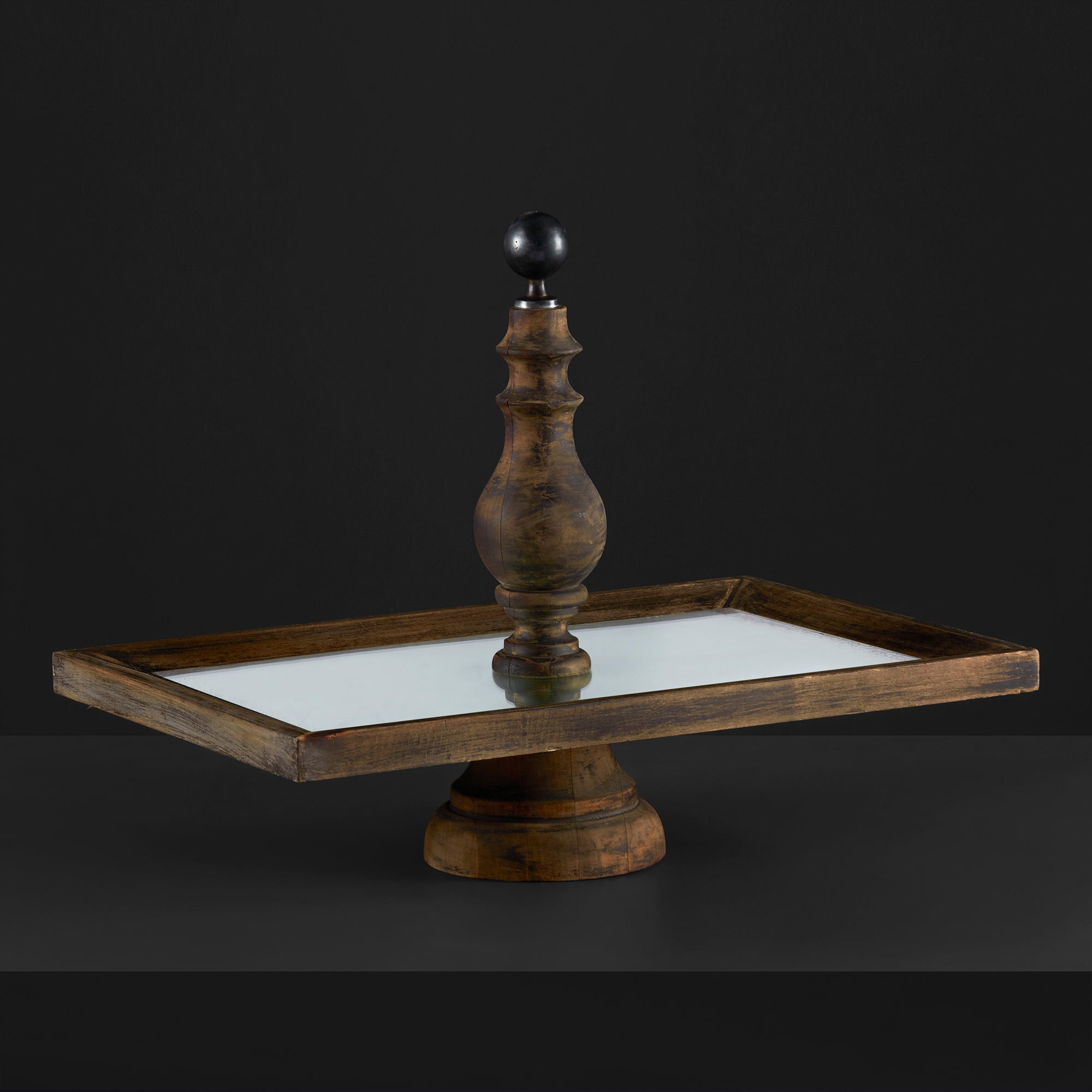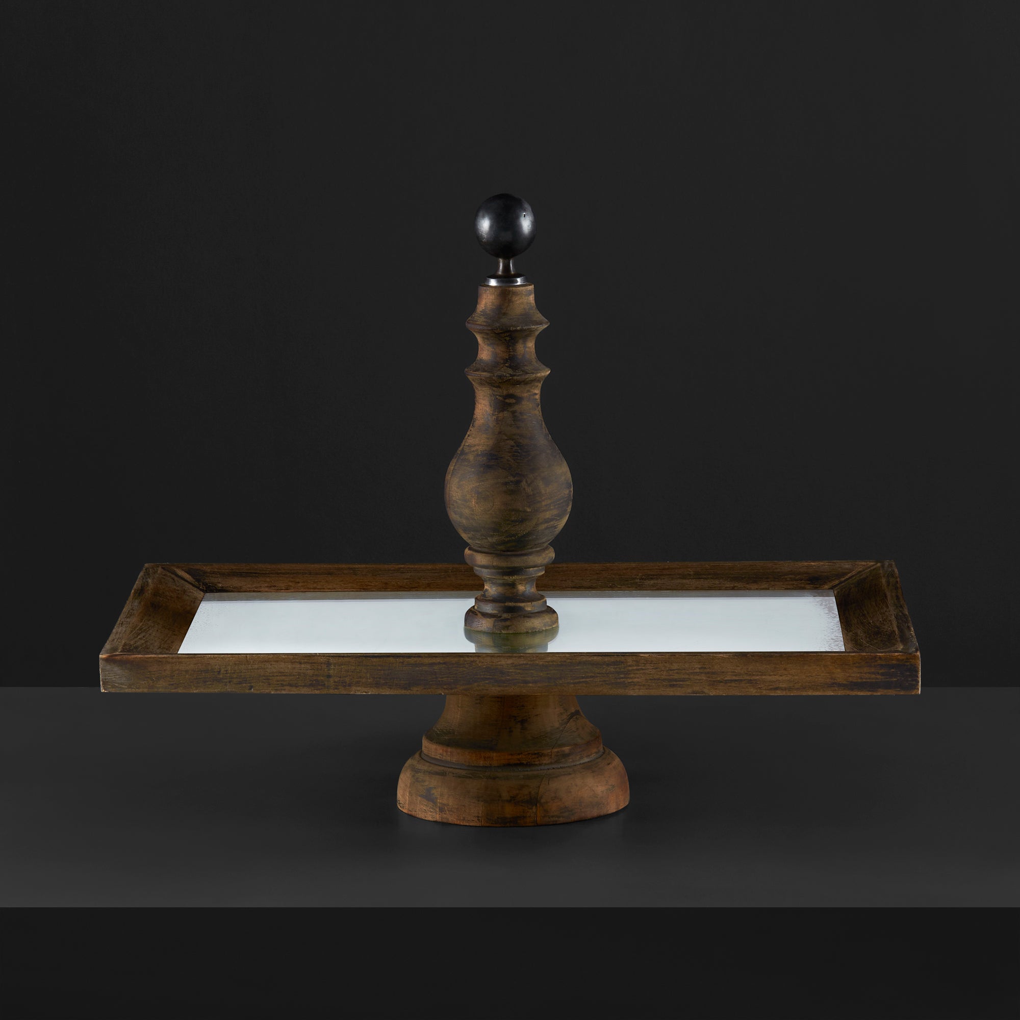 Cada accesorio para tu hogar es importante y representa parte de tu personalidad, elaborada a base de madera maciza, con una cubierta de espejo con efecto desgastado en los bordes, en el centro de la charola se ubica un remate de madera con una esfera de aluminio en la punta, además de darle un toque único y lleno de estilo, le aporta visibilidad a tus espacios y soporte a la hora de colocar tus accesorios en ella.