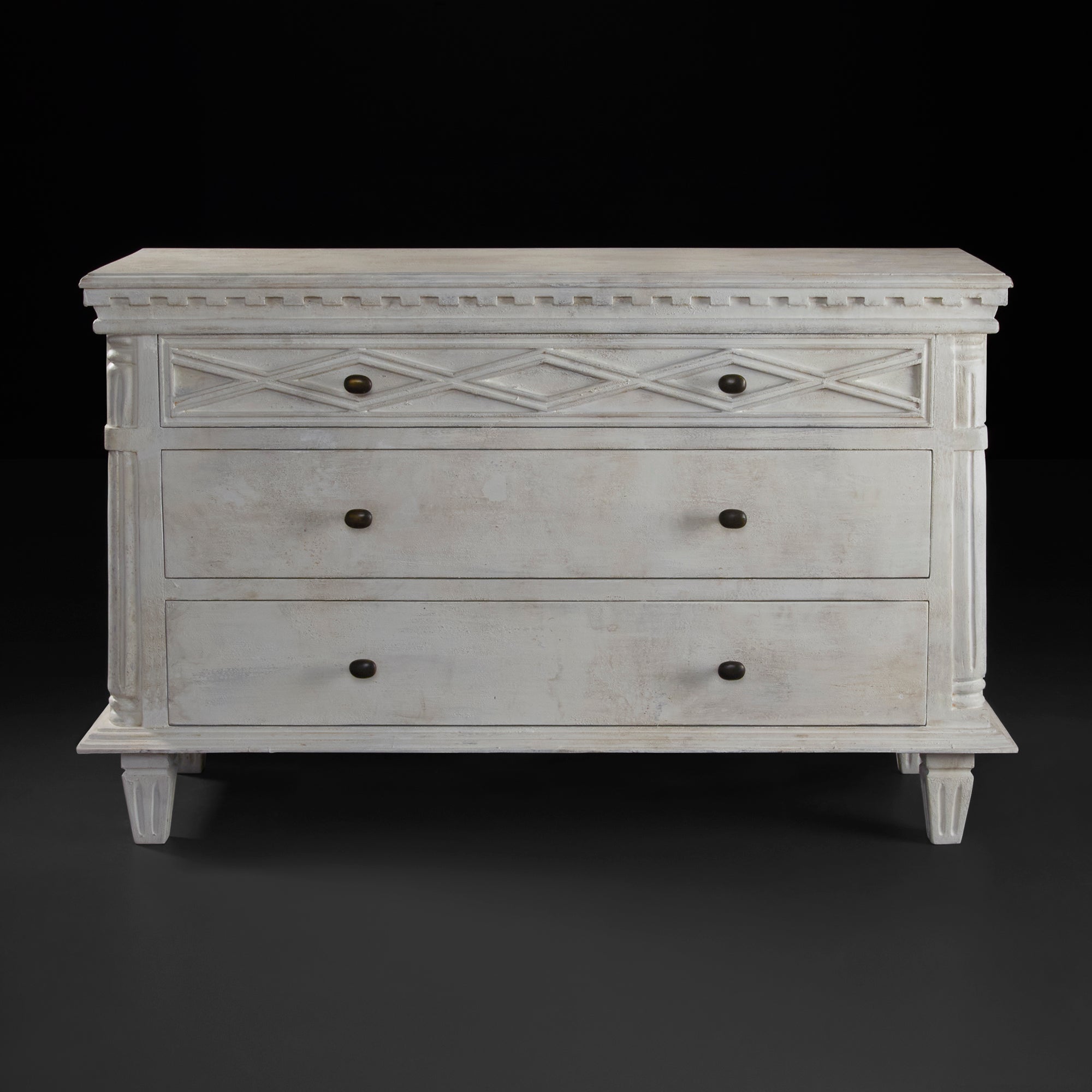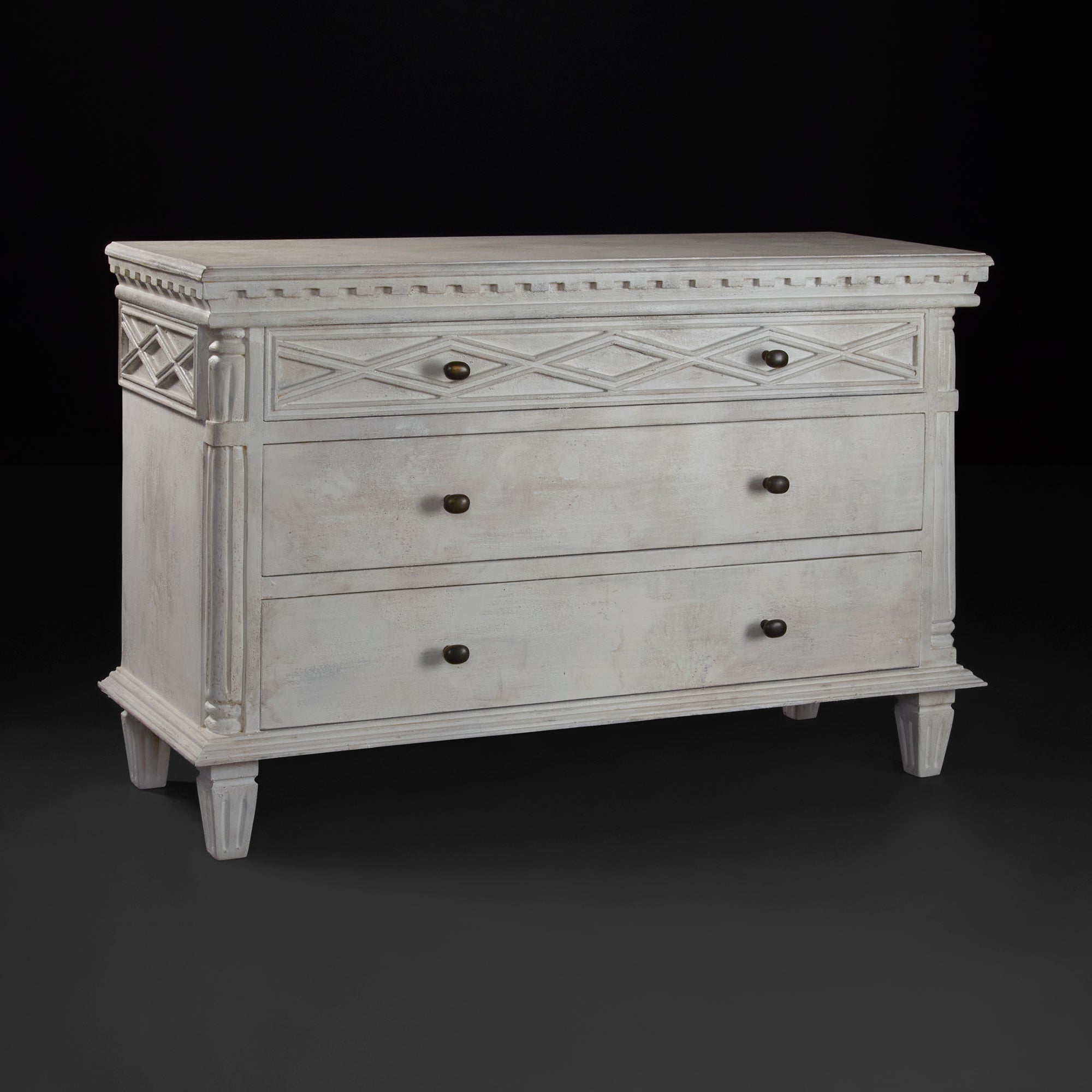 Dentro de tu espacio siempre hay lugar para estos fantásticos complementos de decoración, la cómoda Joaquín está hecha a mano con madera maciza entintada y cubierta con una capa de pintura desgastada en tono blanco, este aspecto lo convierte en una pieza con carácter único.