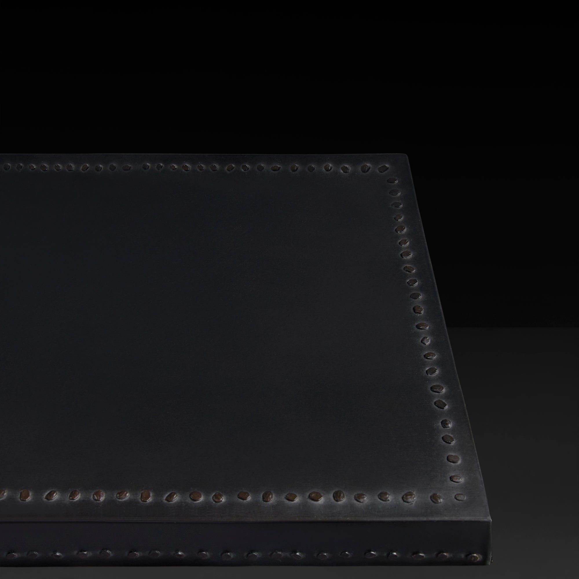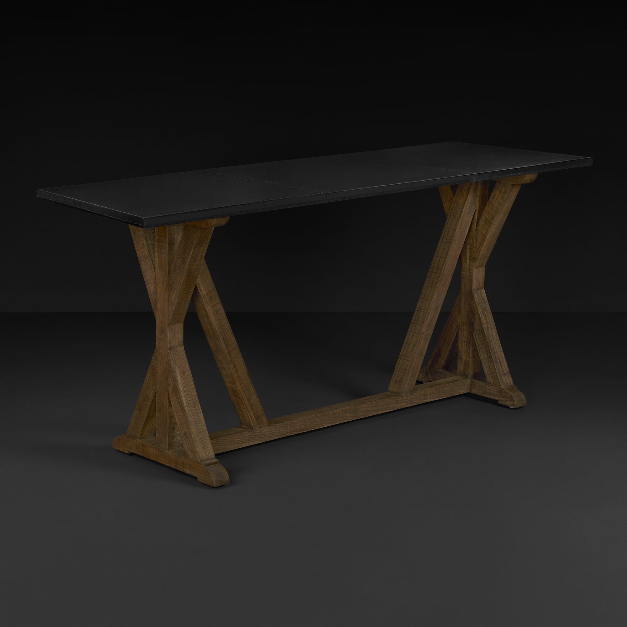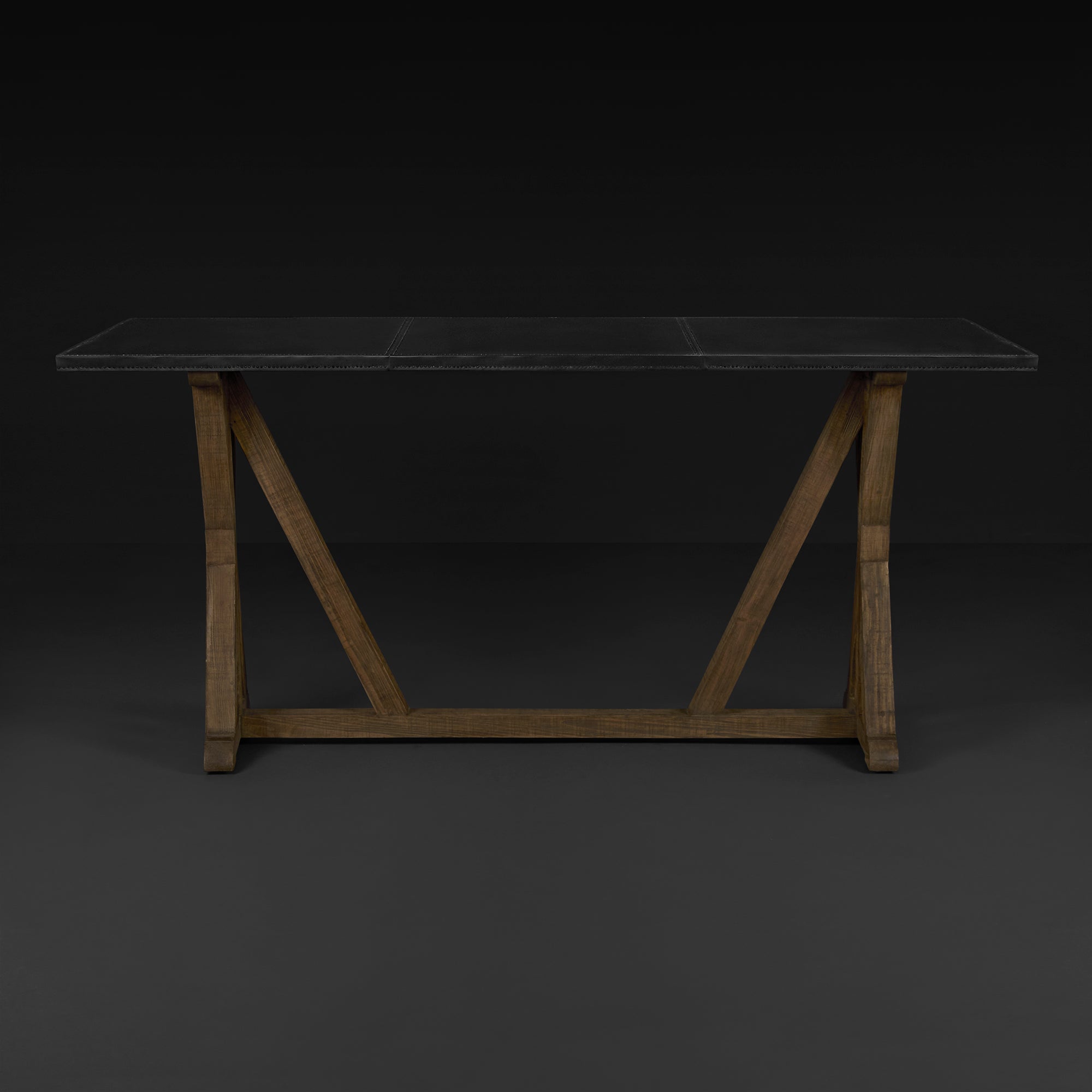 Consola elaborada a mano, con una base de madera natural sólida que le da soporte y estabilidad, con una cubierta metálica forrada de lamina y decorada con remaches martillados, su diseño le permitirá adecuarse a cualquier ambiente. Comprueba que los pequeños detalles hacen que nuestro entorno luzca de manera diferente.