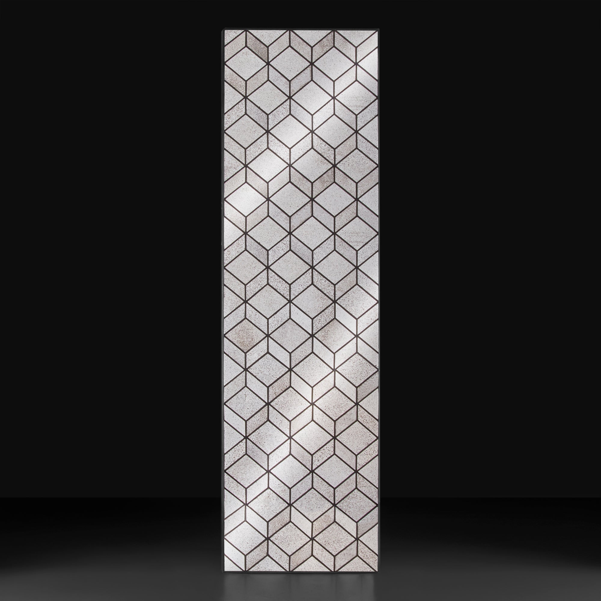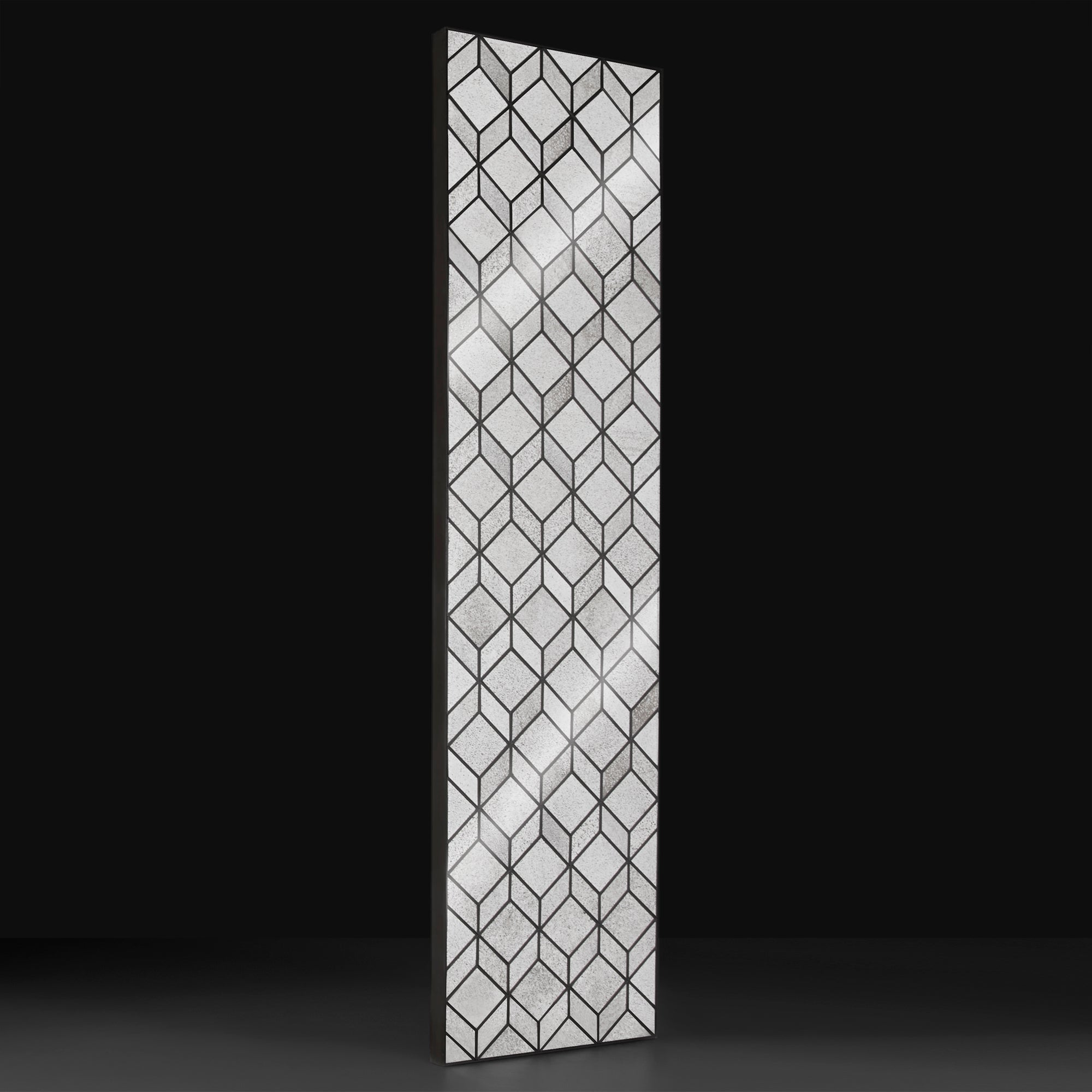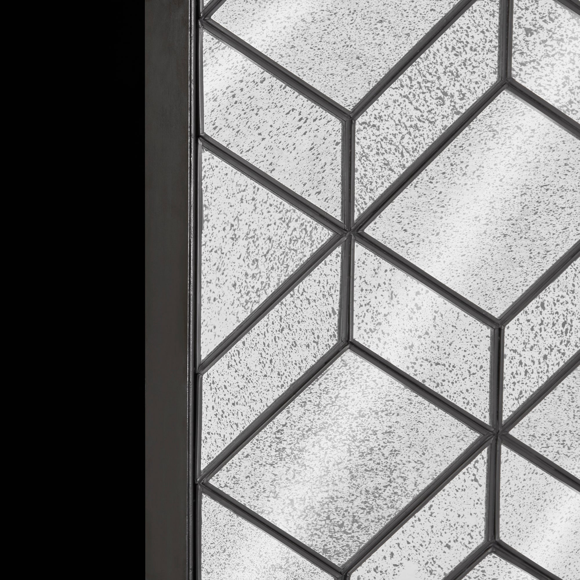 Excelente elemento funcional que, además de servir como auxiliar decorativo, nos ayuda a reflejar nuestro estilo, elaborado a base de líneas limpias y angulares, conformado por placas de espejo perfectamente colocadas y unidas con cañuela, su ensamblado es sobre un marco metálico de herrería el cual le aporta estabilidad. Comprueba que los pequeños detalles hacen que nuestro entorno luzca de manera diferente.