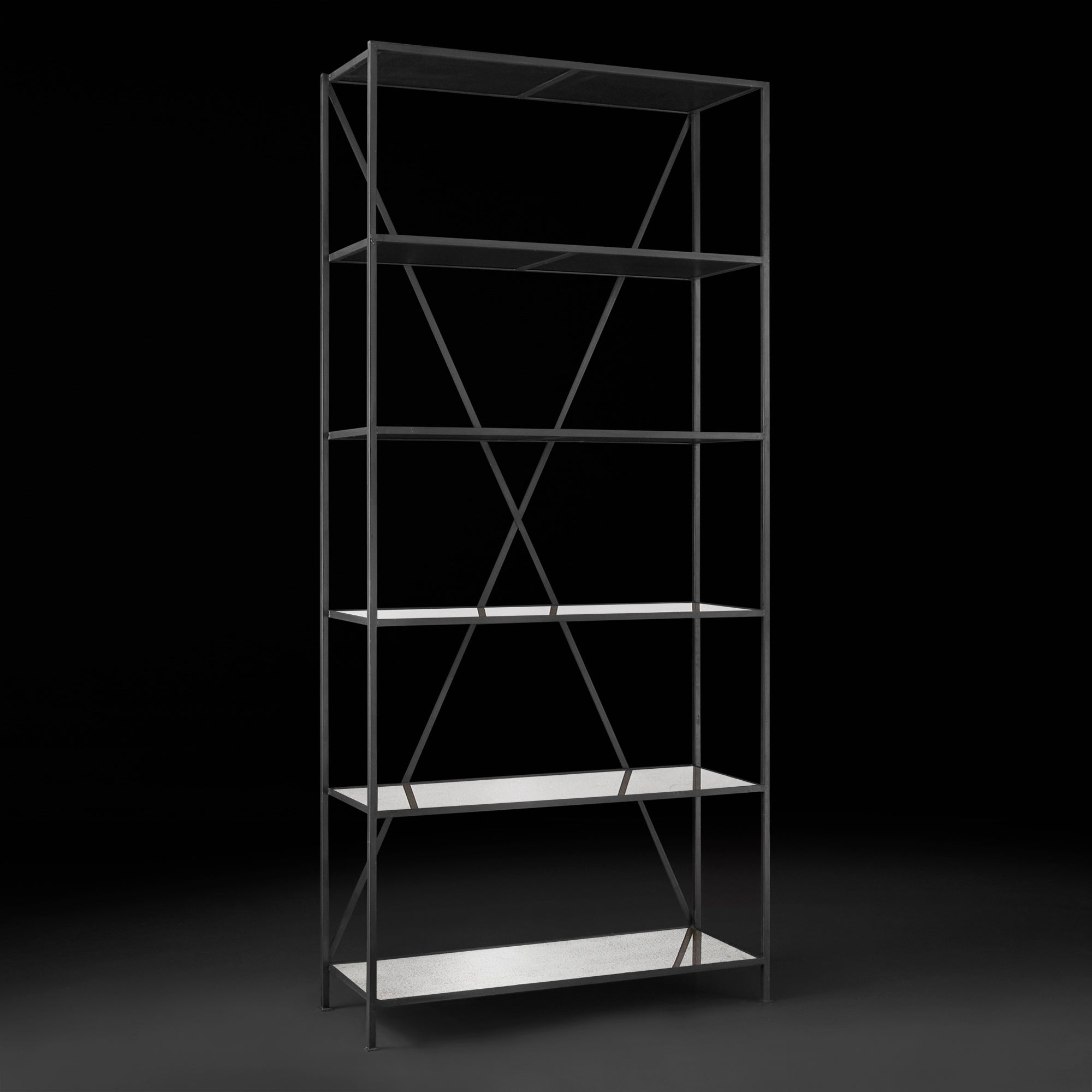 Esta pieza es la representación perfecta de estilo y practicidad, el estilo, funcionalidad y diseño de esta pieza, te permitirán ponerla en varios sitios de tu hogar convirtiéndolo en un estantero perfecto para espacios amplios y únicos, elaborado a base de metal en tono obscuro y placas de espejo plateado con efecto desgastado, gracias a su diseño original se convertirá en el protagonista de tu espacio. Comprueba que los pequeños detalles hacen que nuestro entorno luzca de manera diferente.