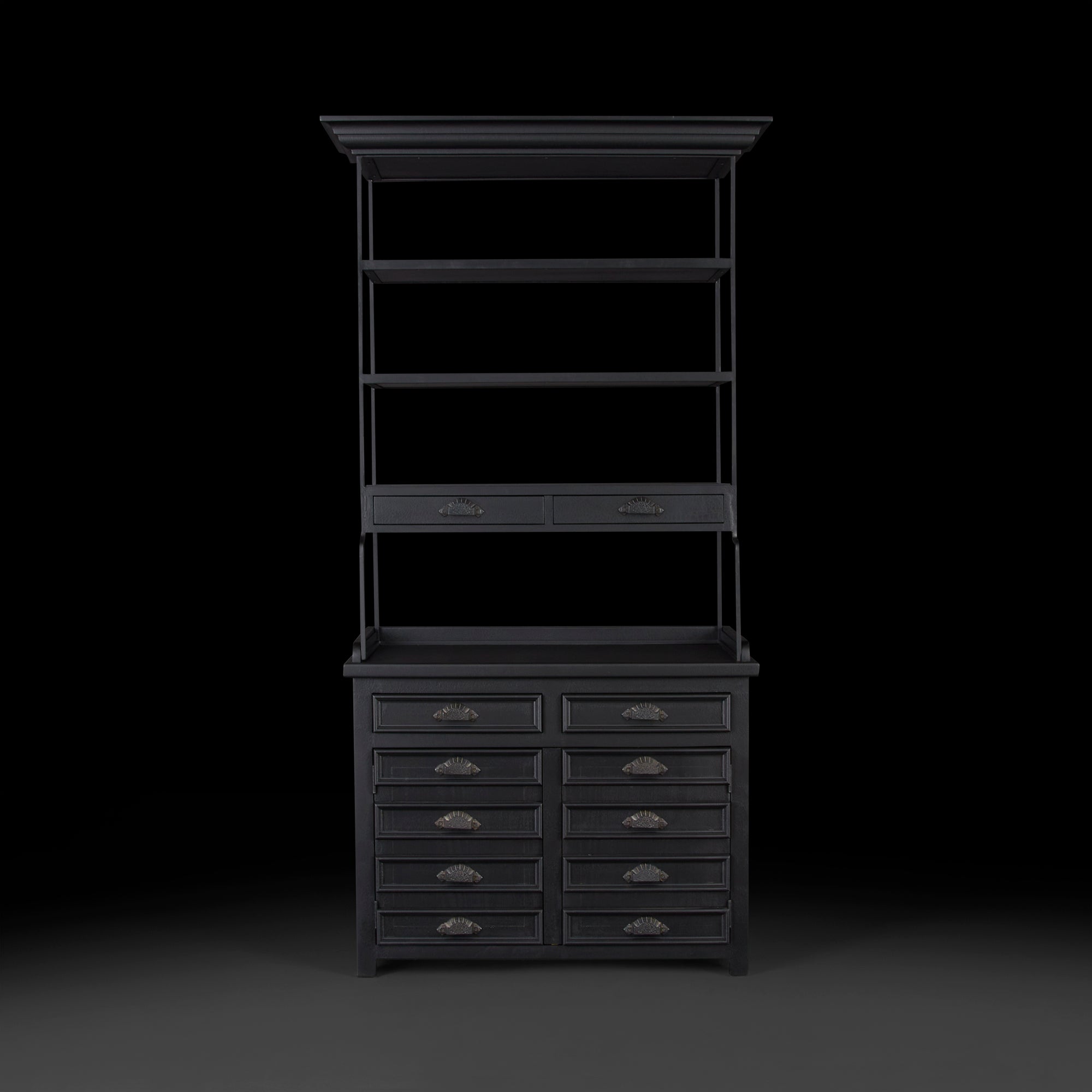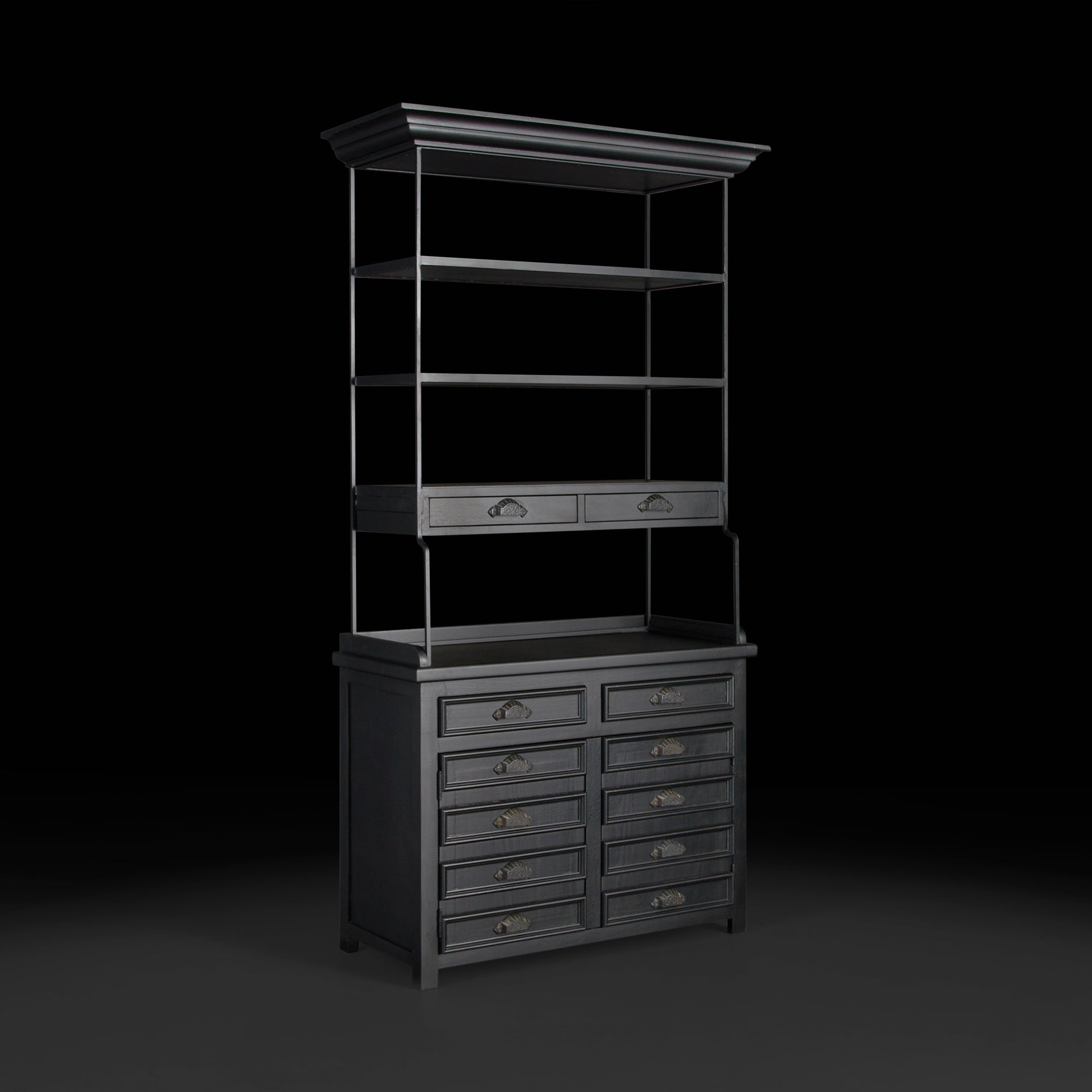 Esta pieza es la representación perfecta de estilo y practicidad, el estilo, funcionalidad y diseño de esta pieza, te permitirán ponerla en varios sitios de tu hogar convirtiéndolo en un estantero perfecto para espacios amplios y únicos, elaborado a partir de madera natural en tono negro, barras de metal que le brindan soporte y estabilidad a la parte de arriba. Incluye 12 cajones cada uno contiene una jaladera de aluminio, gracias a su diseño original se convertirá en el protagonista de tu espacio. Comprueba que los pequeños detalles hacen que nuestro entorno luzca de manera diferente.