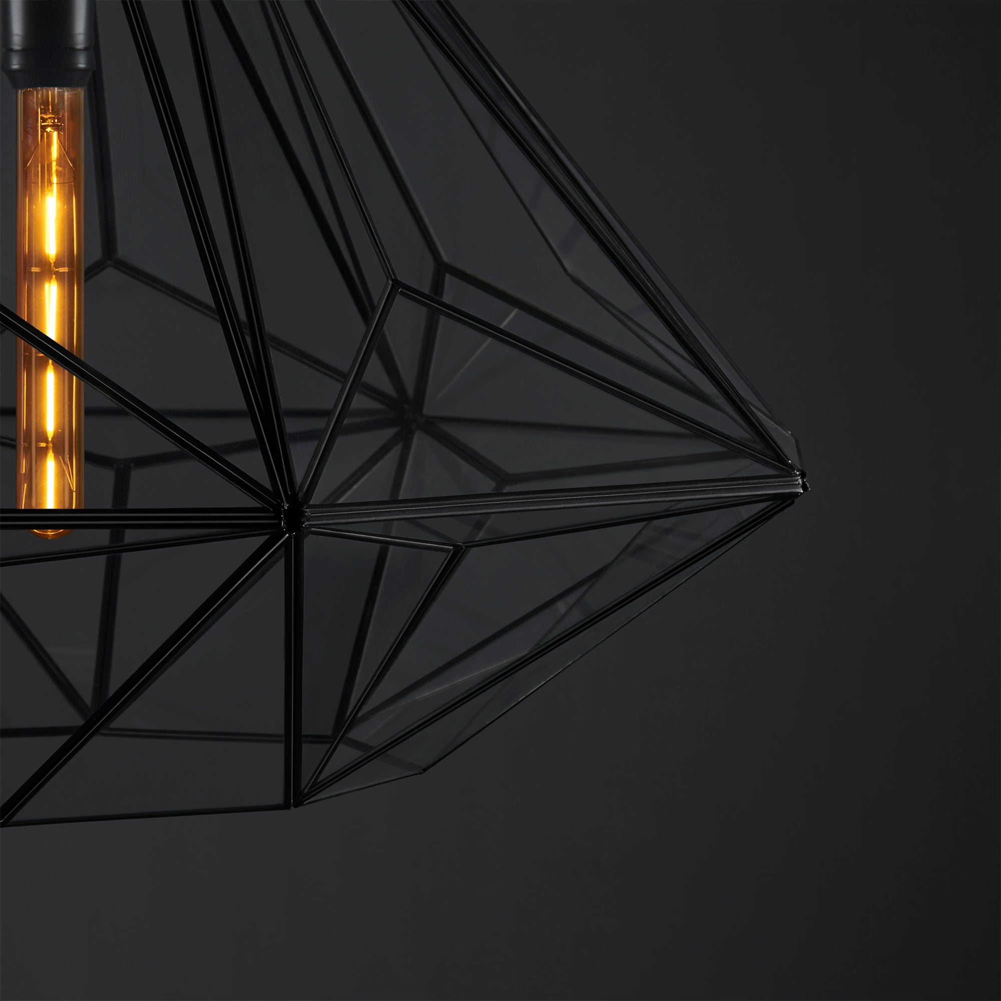 Nuestra Lámpara Colgante Antonio en acabado de Vidrio Claro y Hojalata Cobrizada, es una pieza que deslumbra por su originalidad y estilo. Elaborada a base de placas de vidrio claro, unidas con cañuela metálica.
