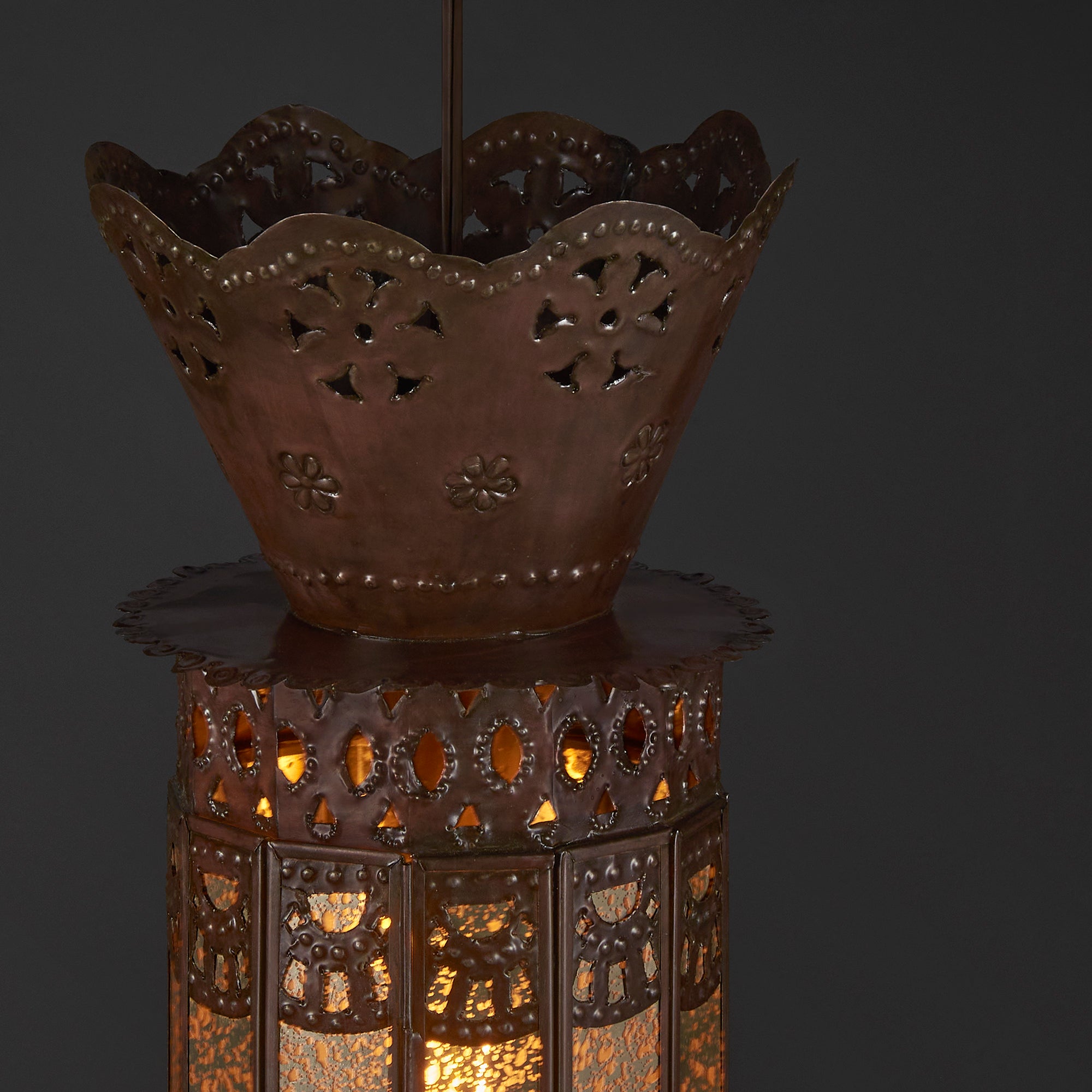 Llena de luz cada rincón de tu hogar u oficina con esta espectacular Lámpara Colgante, cuyo fantástico diseño le dará una vista única a la decoración de la estancia donde decidas colocarla. Se trata de una pieza compuesta de láminas de Espejo Viejo Dorado y de Hojalata Cobrizado Clásico, que muestra un complejo grado de talla artesanal.