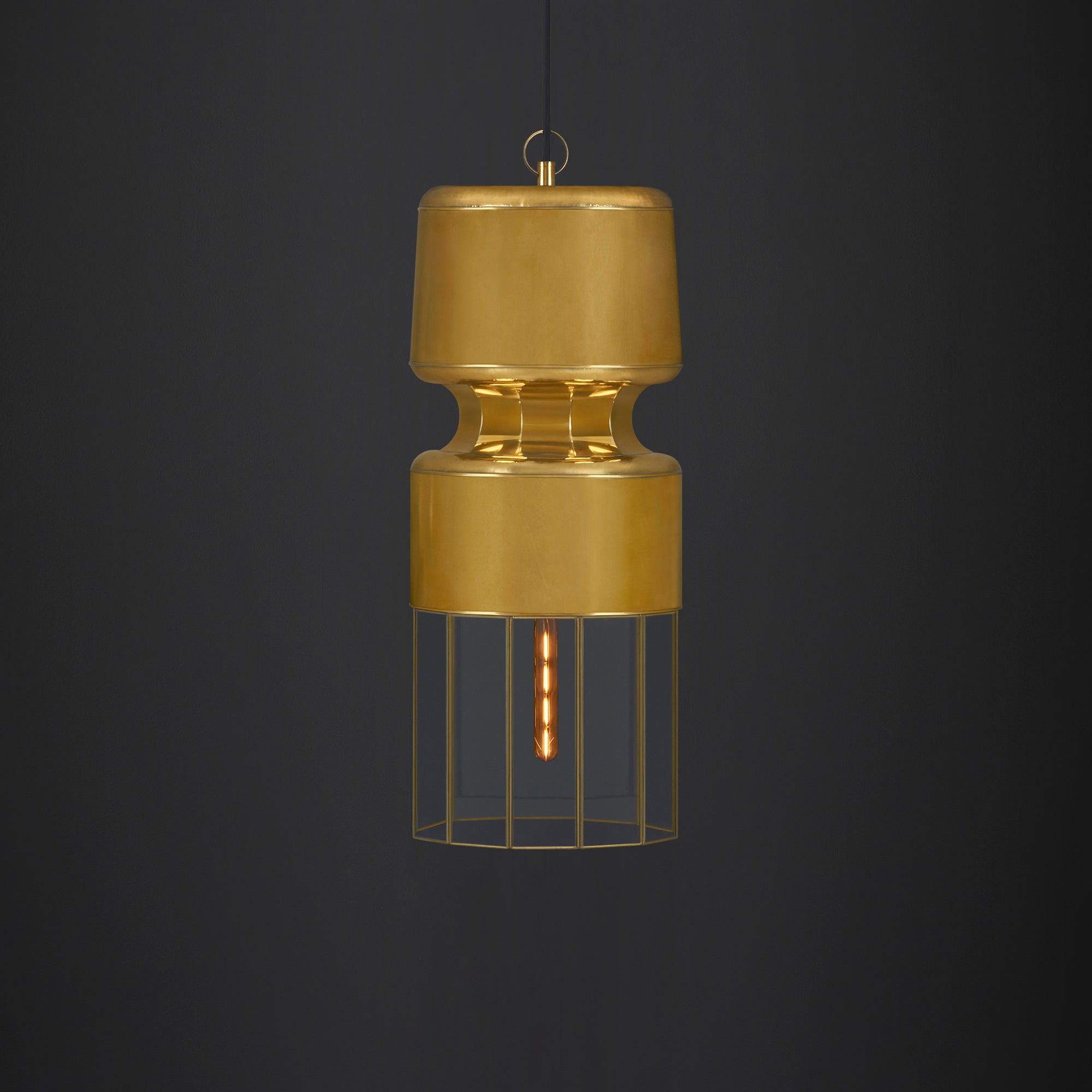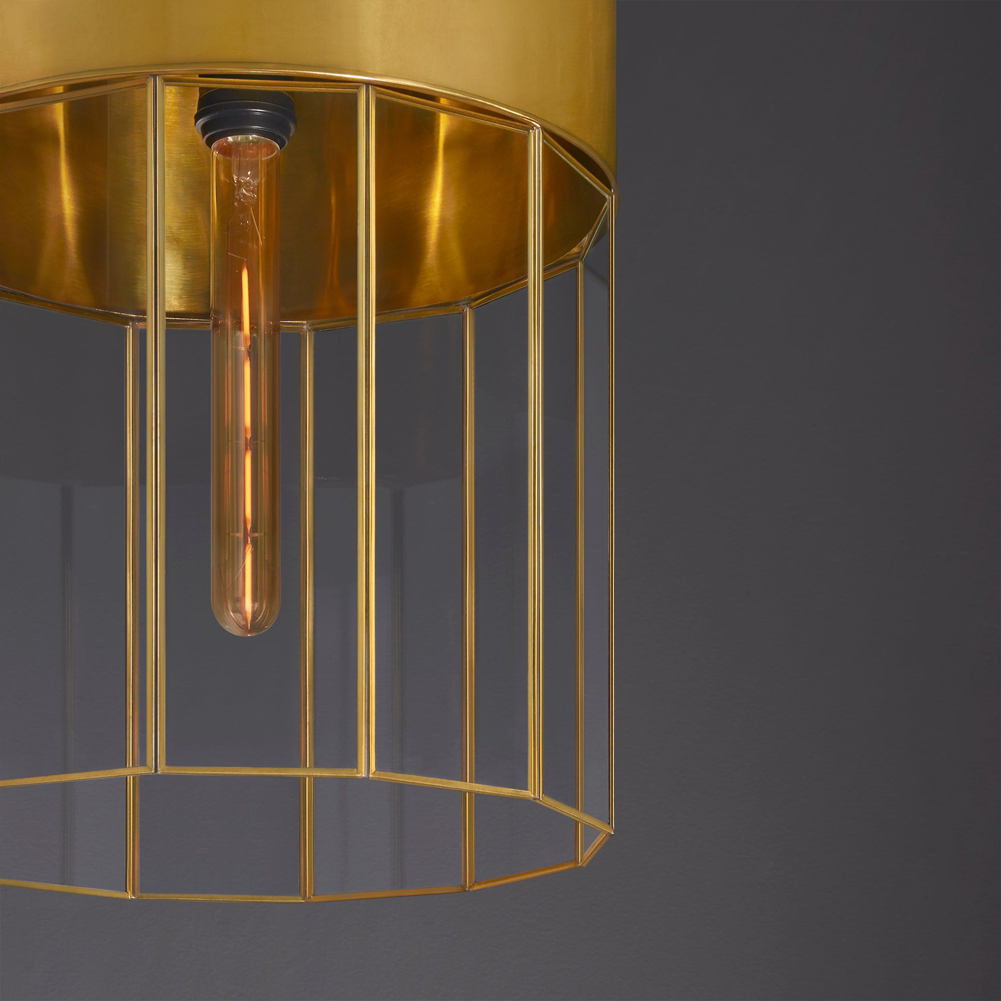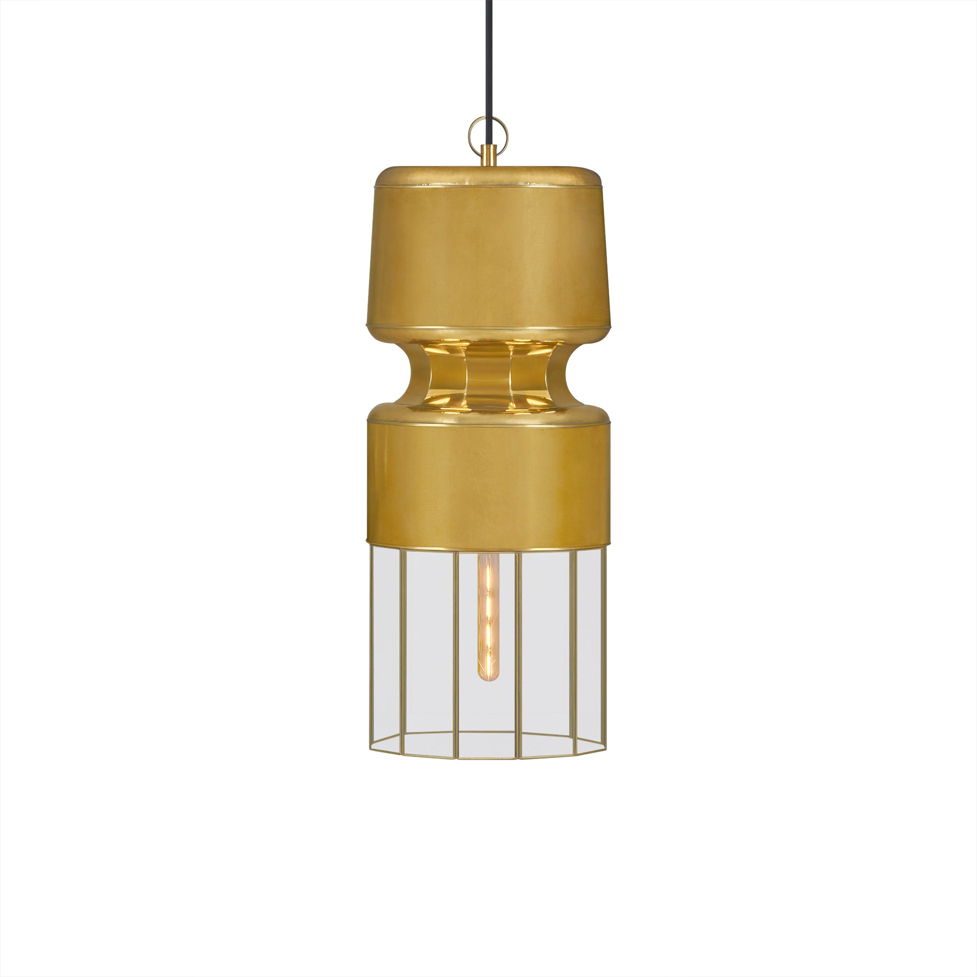 Una elegante y estilizada opción de iluminación, elaborada a base placas de Latón Pulido y Vidrio Claro, perfectamente unidas y colocadas con cañuela, resultando en una propuesta moderna y cálida.