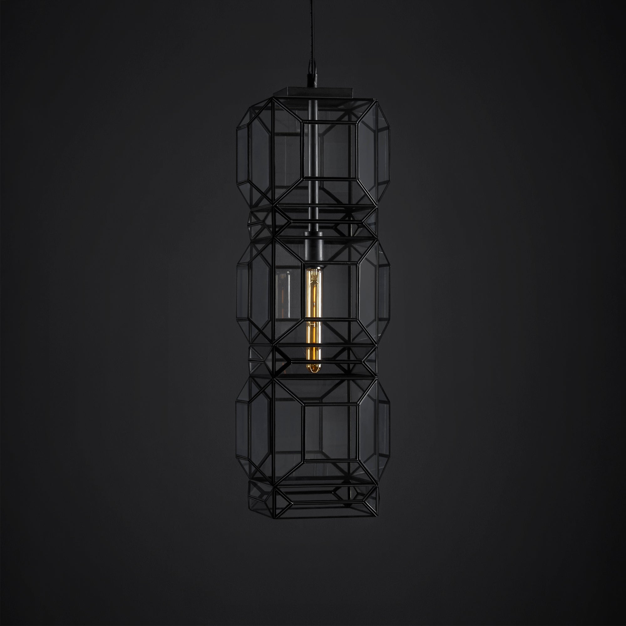 Una elegante y estilizada opción de iluminación, elaborada a base placas de hojalata y vidrio claro, perfectamente unidas y colocadas con cañuela, resultando en una propuesta moderna y cálida. Nuestra Lámpara Colgante Jaen Grande, está conformada por 3 secciones unidas en su vertical, que resalta un diseño único y elegante.