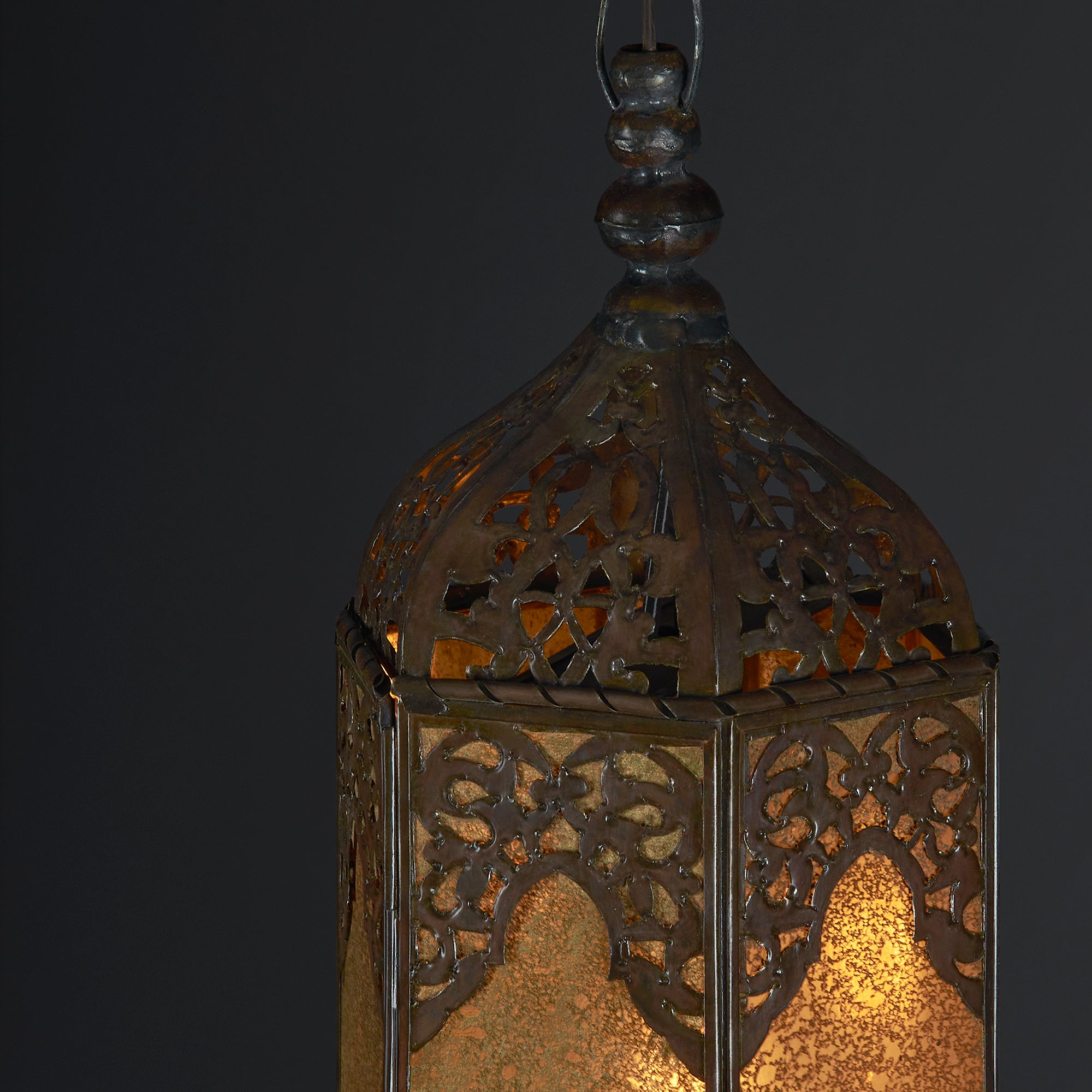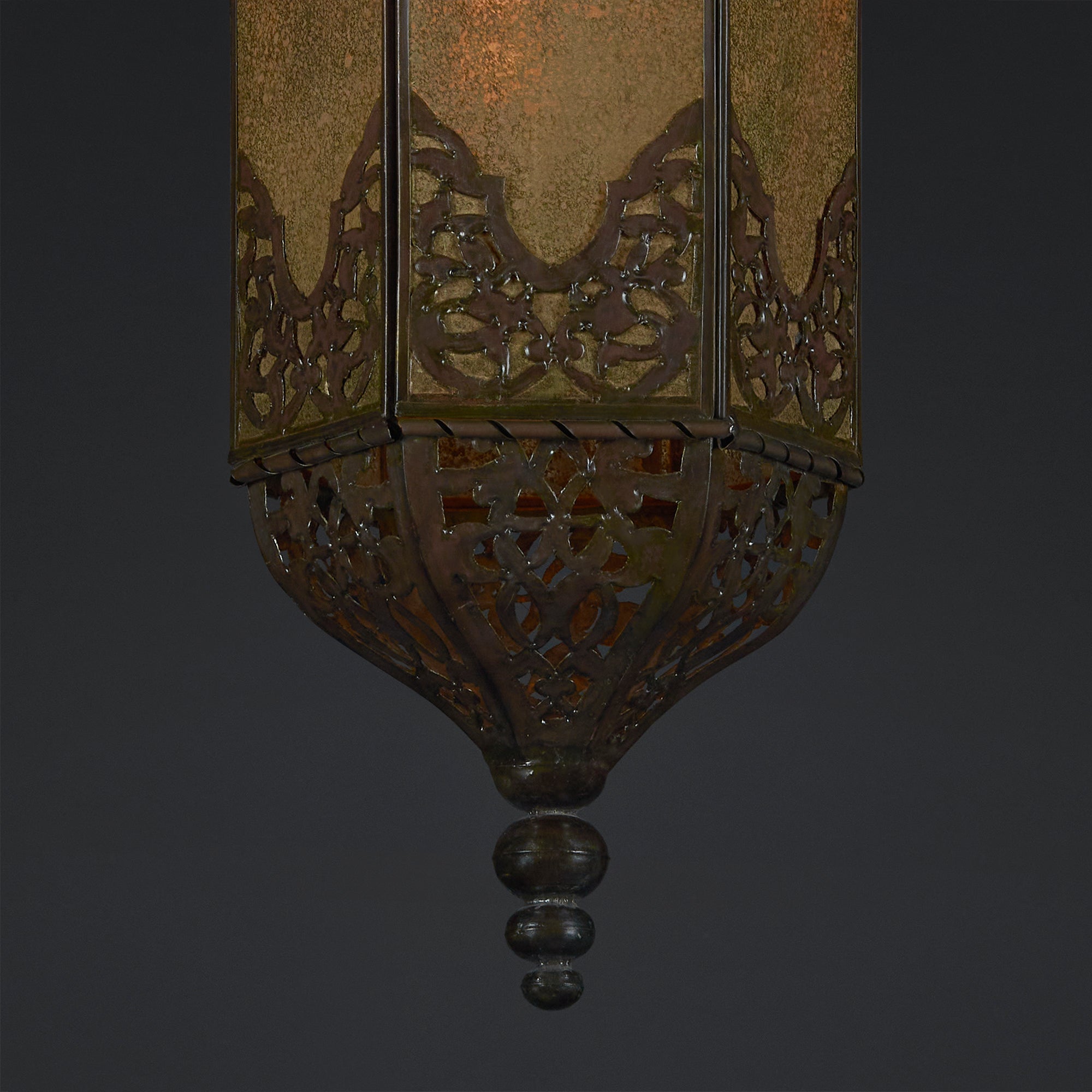 Sin duda, una bella opción de iluminación que muestra el talento artesanal aplicado en cada una de sus partes. Nuesta Lámpara Colgante Moreal, esta compuesta por placas de Espejo Viejo Dorado y decorada en su totalidad, con diseños tradicionales del calado en hoja de lata, rematando con un acabado Cobrizado clásico.