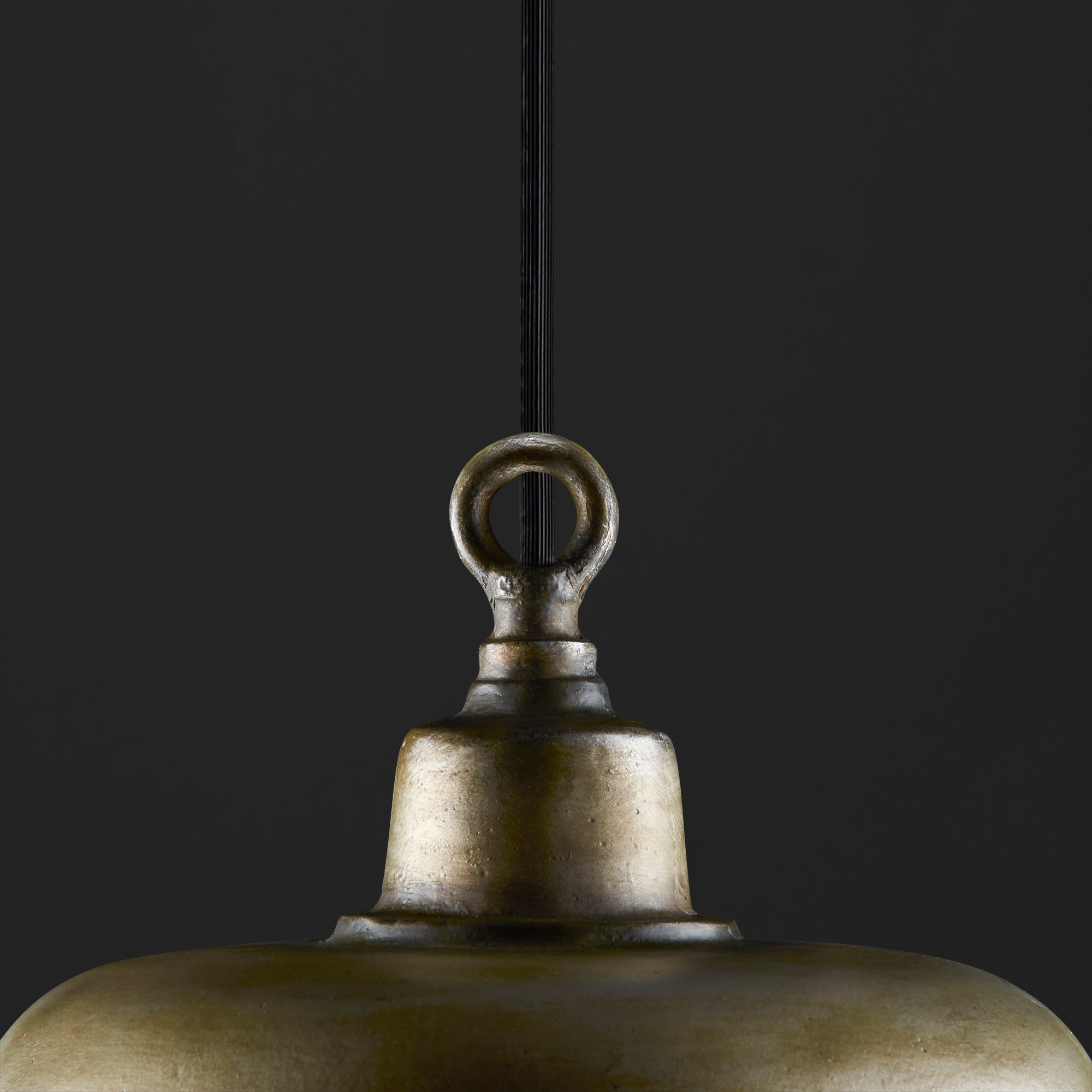 Una bella Lámpara Colgante, cuya pantalla es elaborada a base de resina y fibra de vidrio hecho a mano con un acabado aplicado de aspecto metálico. Ideal para colocarlas en conjunto a fin de integrar una iluminación original de cada uno de tus espacios.
