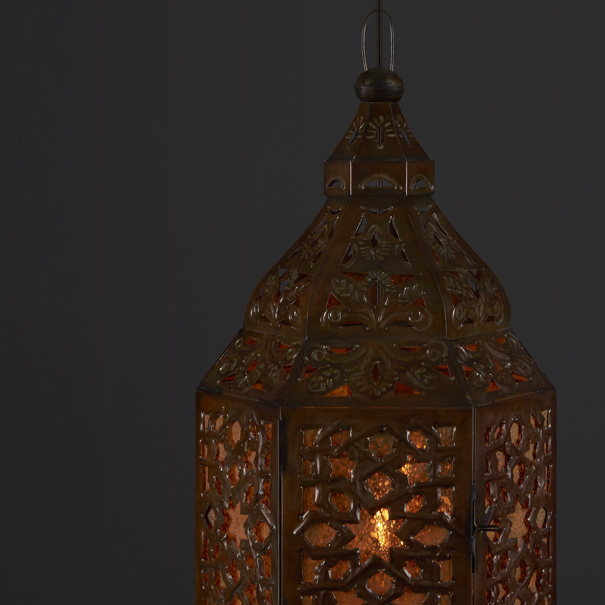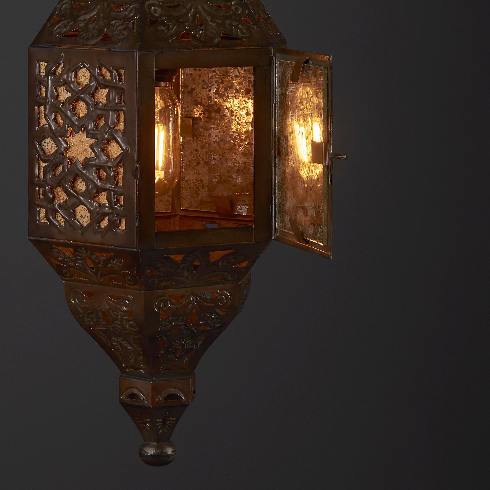 Sin duda, una bella opción de iluminación que muestra el talento artesanal aplicado en cada detalle de ésta pieza, la cual está elaborada por hojas de hoja de lata en un acabado cobrizado clásico.