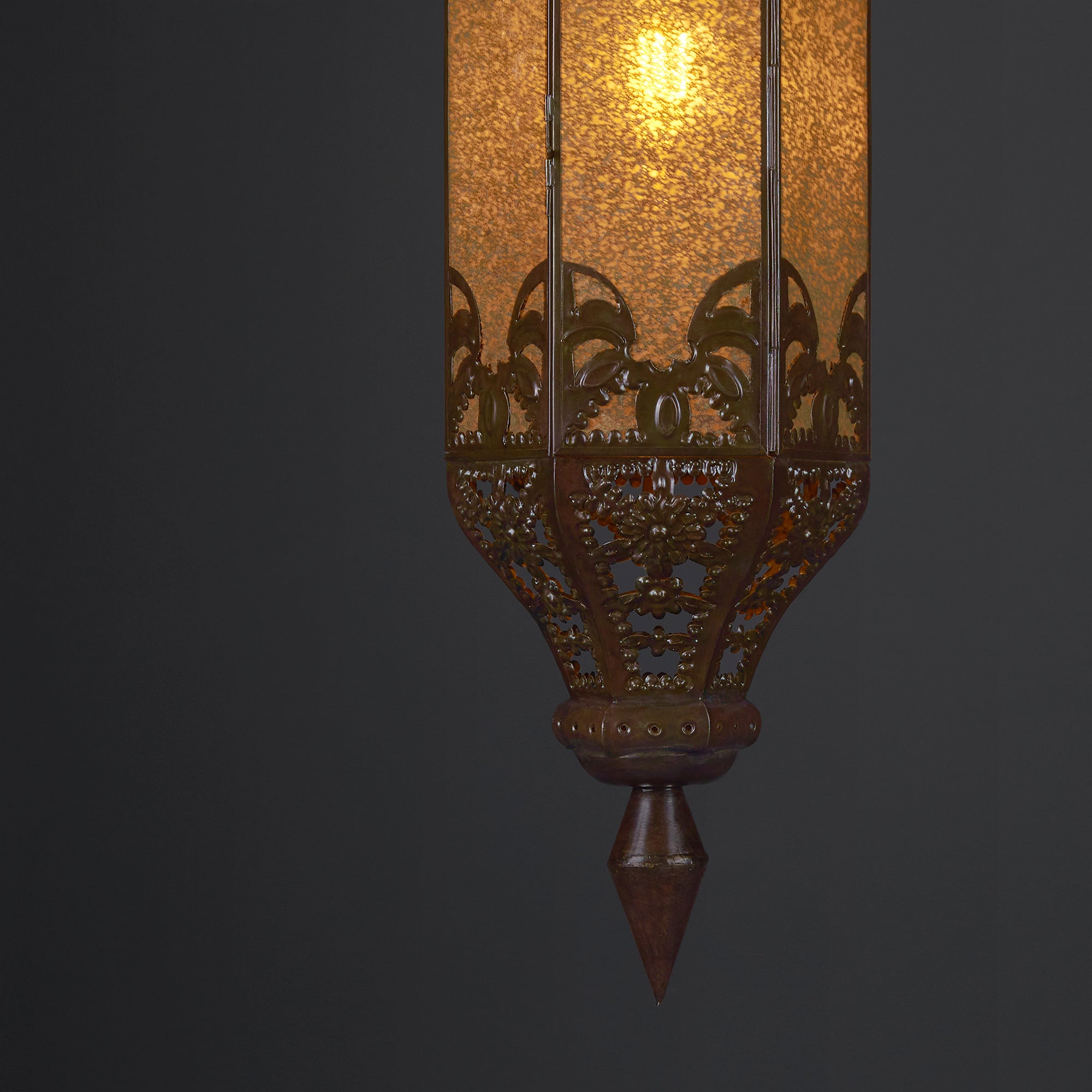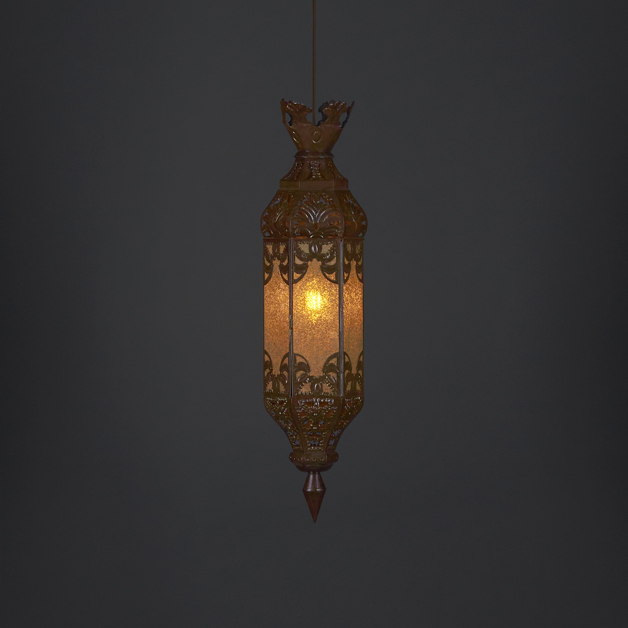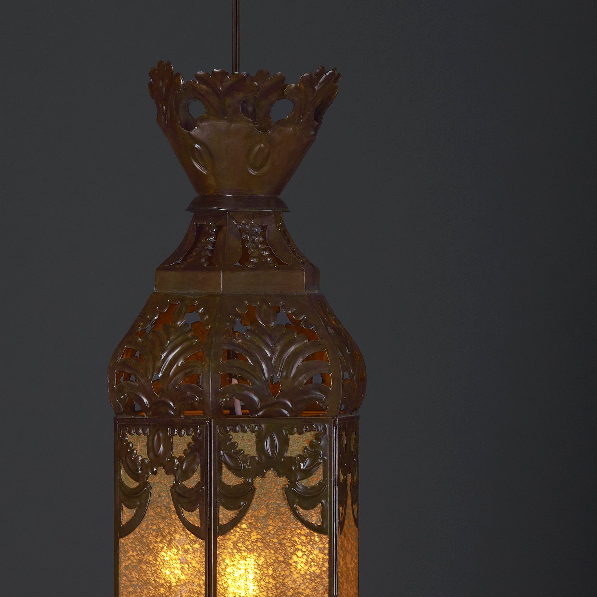 Llena de luz cada rincón de tu hogar u oficina con esta espectacular Lámpara Colgante, cuyo fantástico diseño le dará una vista única a la decoración de la estancia donde decidas colocarla. Se trata de una pieza compuesta de láminas de Espejo Viejo Dorado y de Hojalata Cobrizado Clásico, que muestra un complejo grado de talla artesanal.
