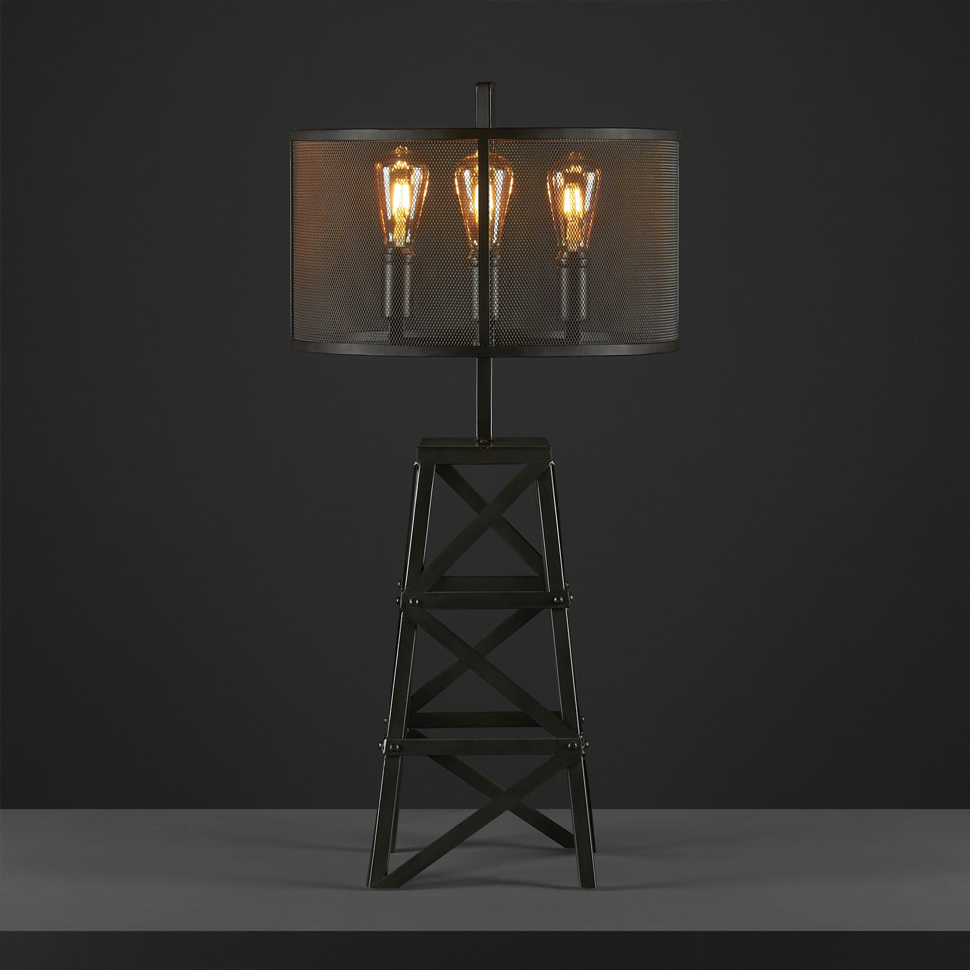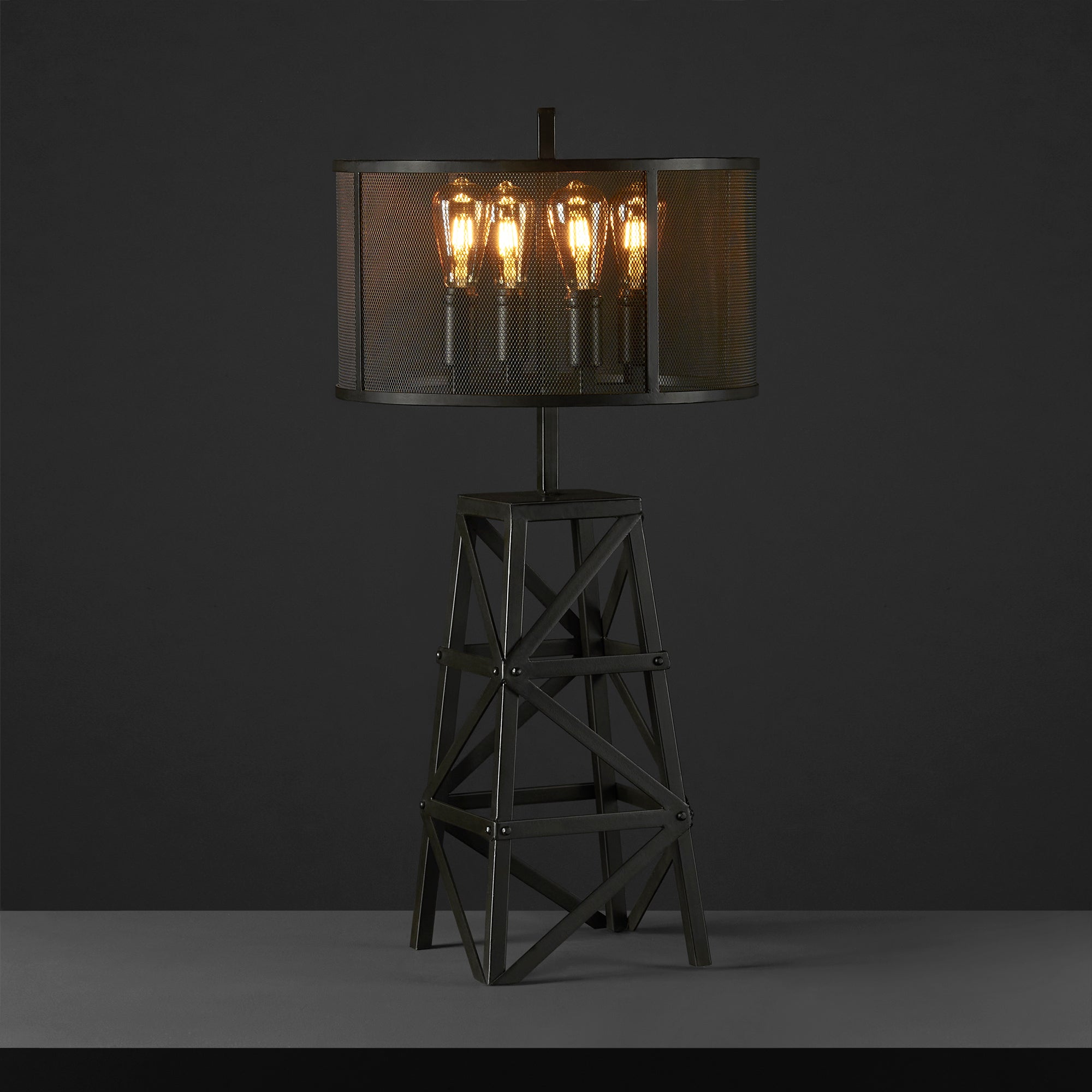 Un bello elemento de iluminación, compuesto por 4 focos de iluminación cálida. La Lámpara de Mesa Torre tiene como pantalla, una malla metálica en forma circular. Su base de metal le da rigidez y fuerza a una pieza de iluminación original.