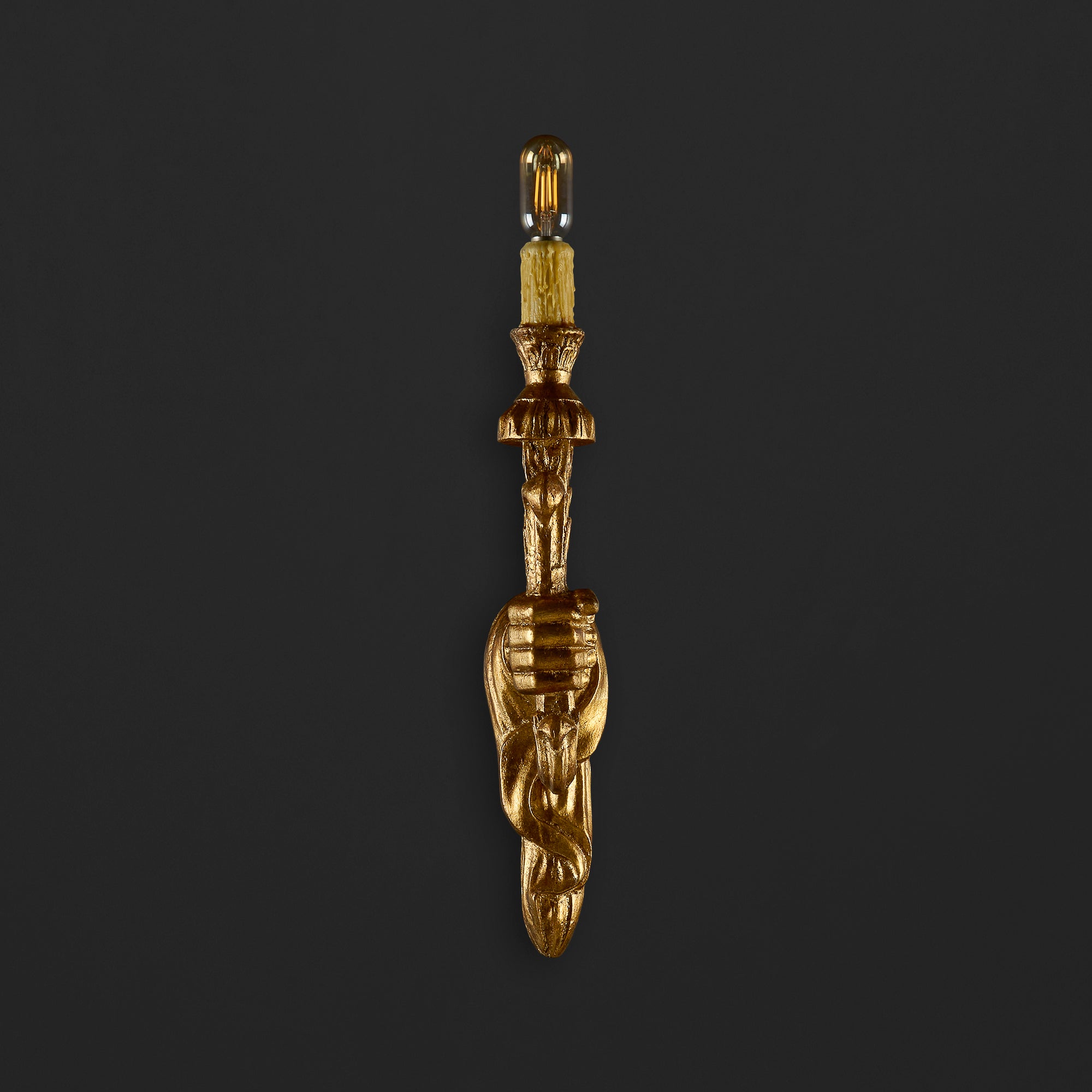 Llena de luz cada rincón de tu hogar con esta espectacular lámpara de muro que, además de proporcionar la iluminación adecuada, su fantástico diseño le dará una vista a la decoración de la estancia donde decidas colocarla, hecha a base de molde en resina forrada con hoja de oro. Su diseño original le aporta estilo a tu espacio. Comprueba que los pequeños detalles hacen que nuestro entorno luzca de manera diferente.