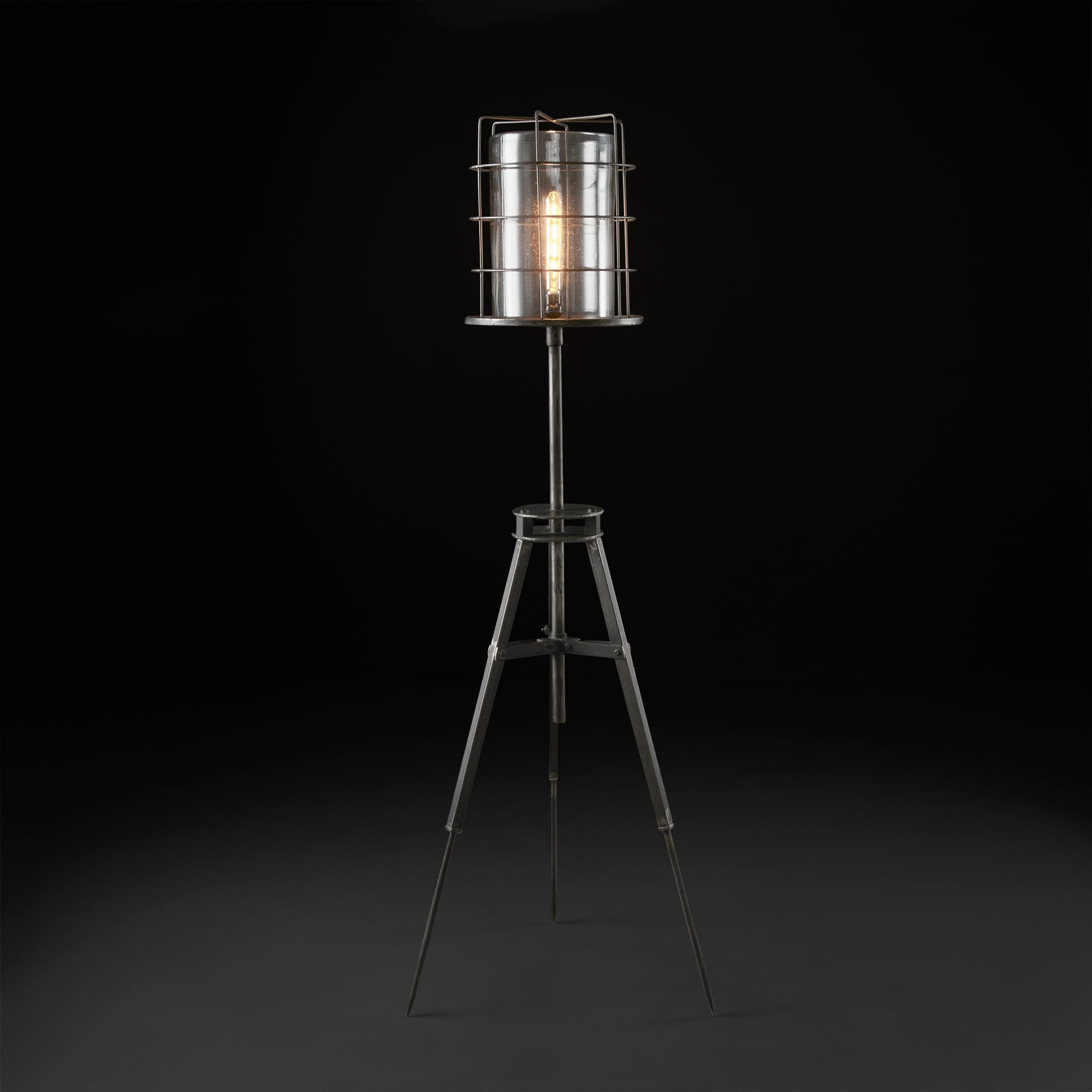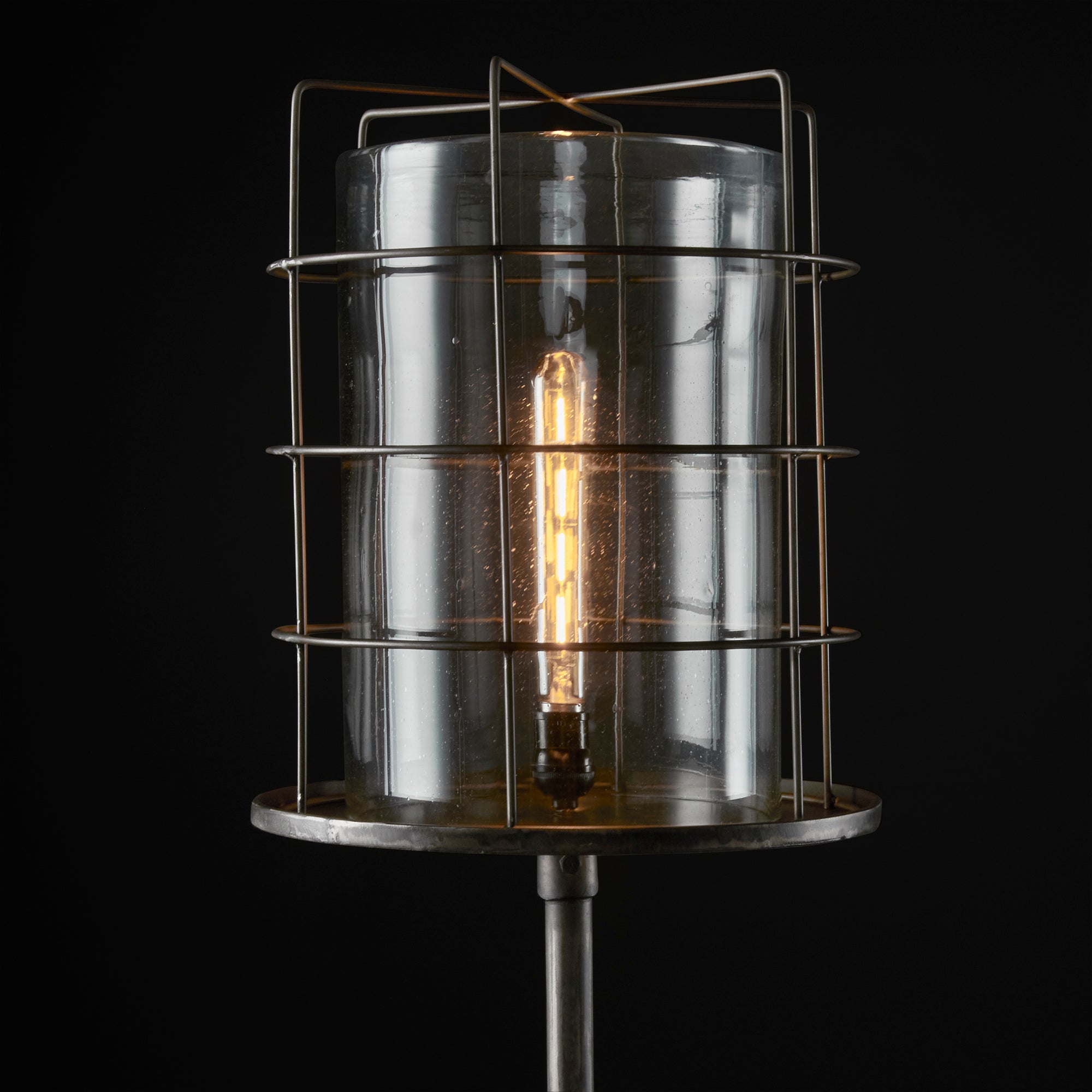 Llena de luz cada rincón de tu hogar u oficina con esta espectacular lámpara de piso que, además de proporcionar la iluminación adecuada, su fantástico diseño le dará una vista a la decoración de la estancia donde decidas colocarla, elaborada a partir de metal moldeado y ensamblado a mano, cubierto por un cilindro de vidrio claro y una rejilla entrelazada en varillas de alambre. Comprueba que los pequeños detalles hacen que nuestro entorno luzca de manera diferente.