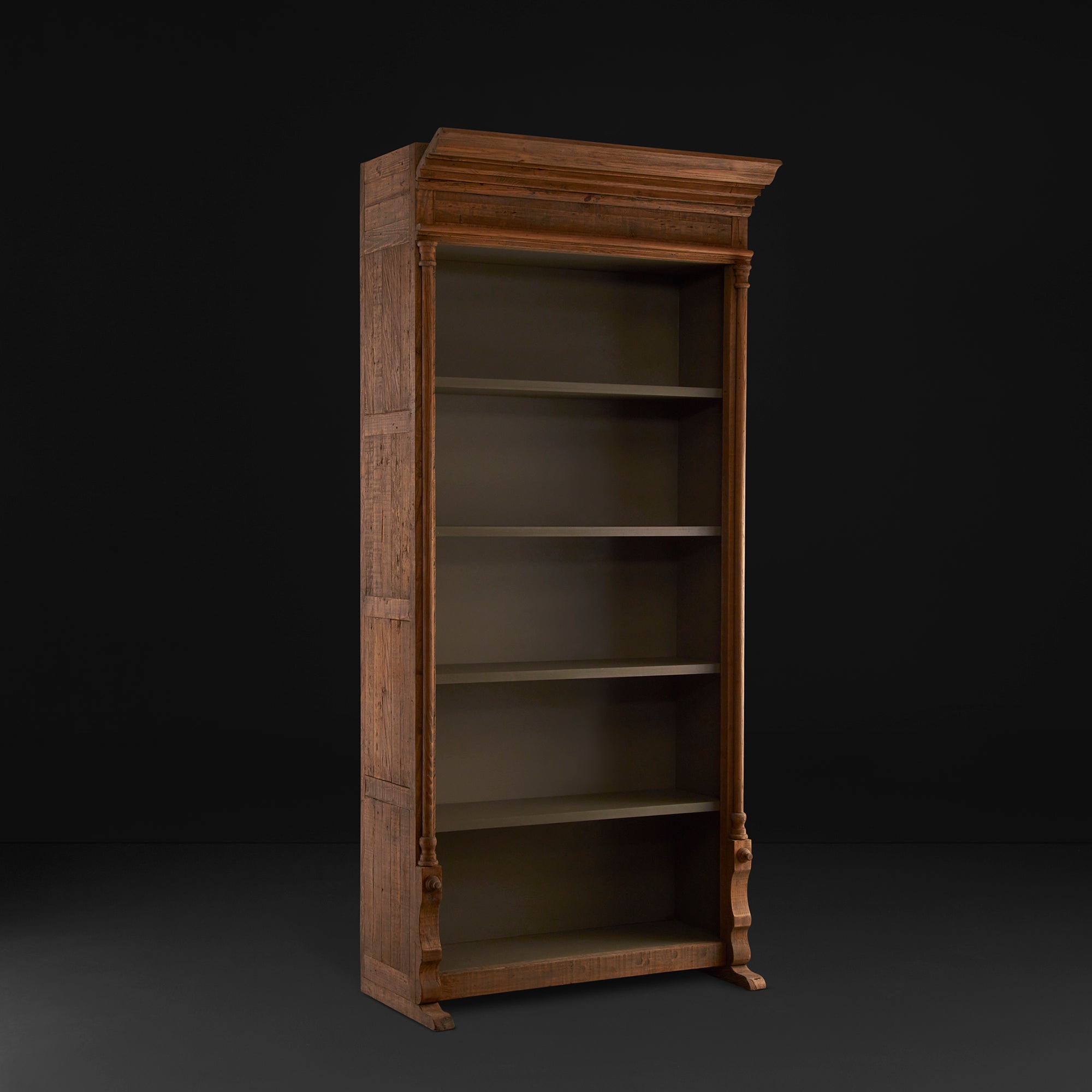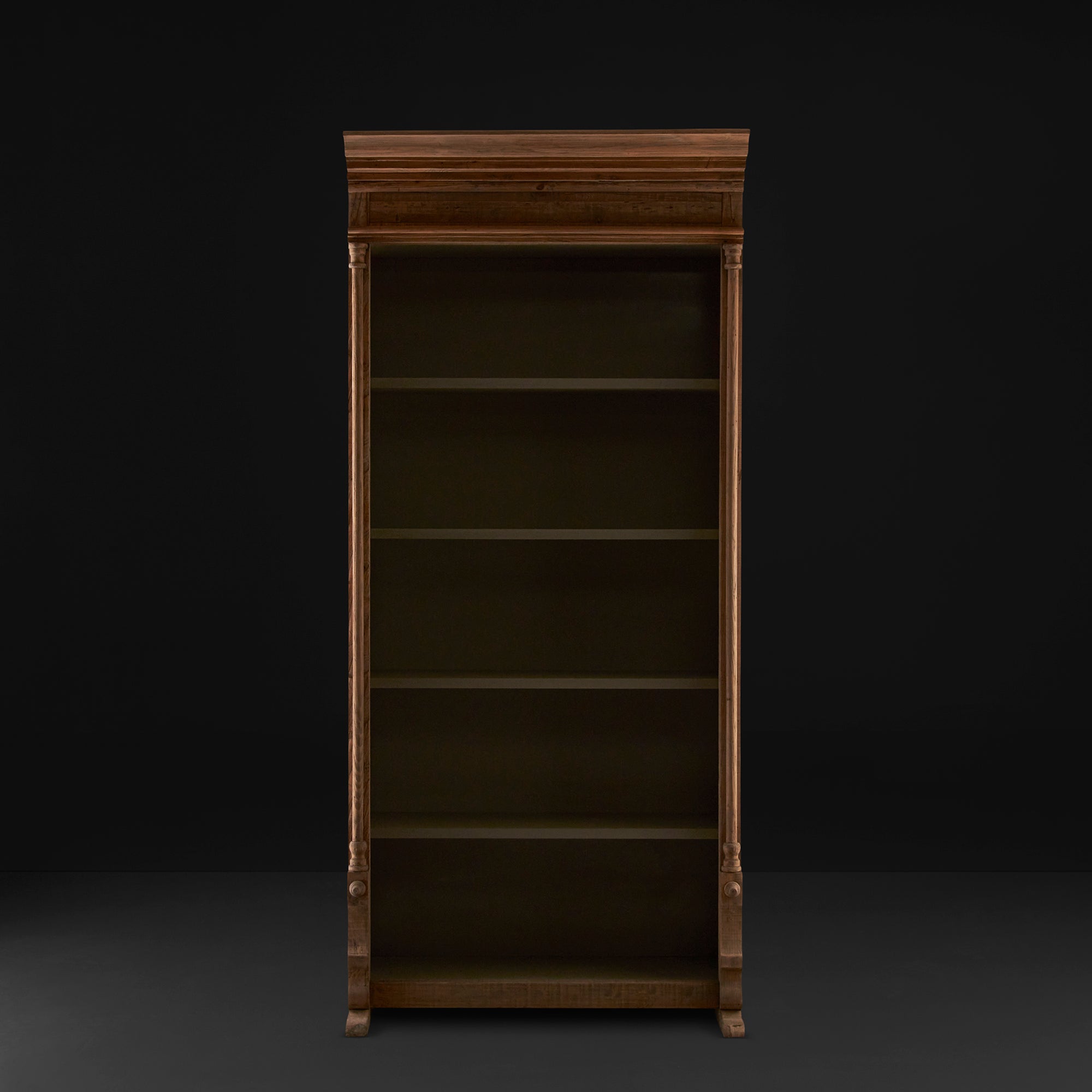 Librero clásico de madera sólida con copete superior, compuesto de repisas móviles para adaptarlas a sus necesidades, pieza en acabado madera Vicente en exterior e interior en madera gris pimienta. Comprueba que los pequeños detalles hacen que todo tu entorno luzca de manera diferente.