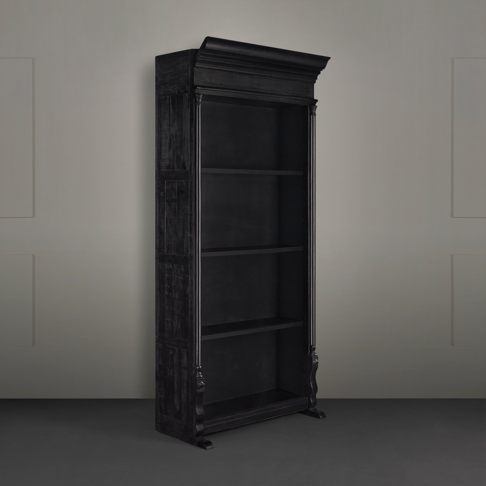 Librero clásico de madera sólida con copete superior, compuesto de repisas móviles para adaptarlas a sus necesidades, pieza en acabado madera Negro Primer tanto en su exterior, como en su interior. Comprueba que los pequeños detalles hacen que todo tu entorno luzca de manera diferente.