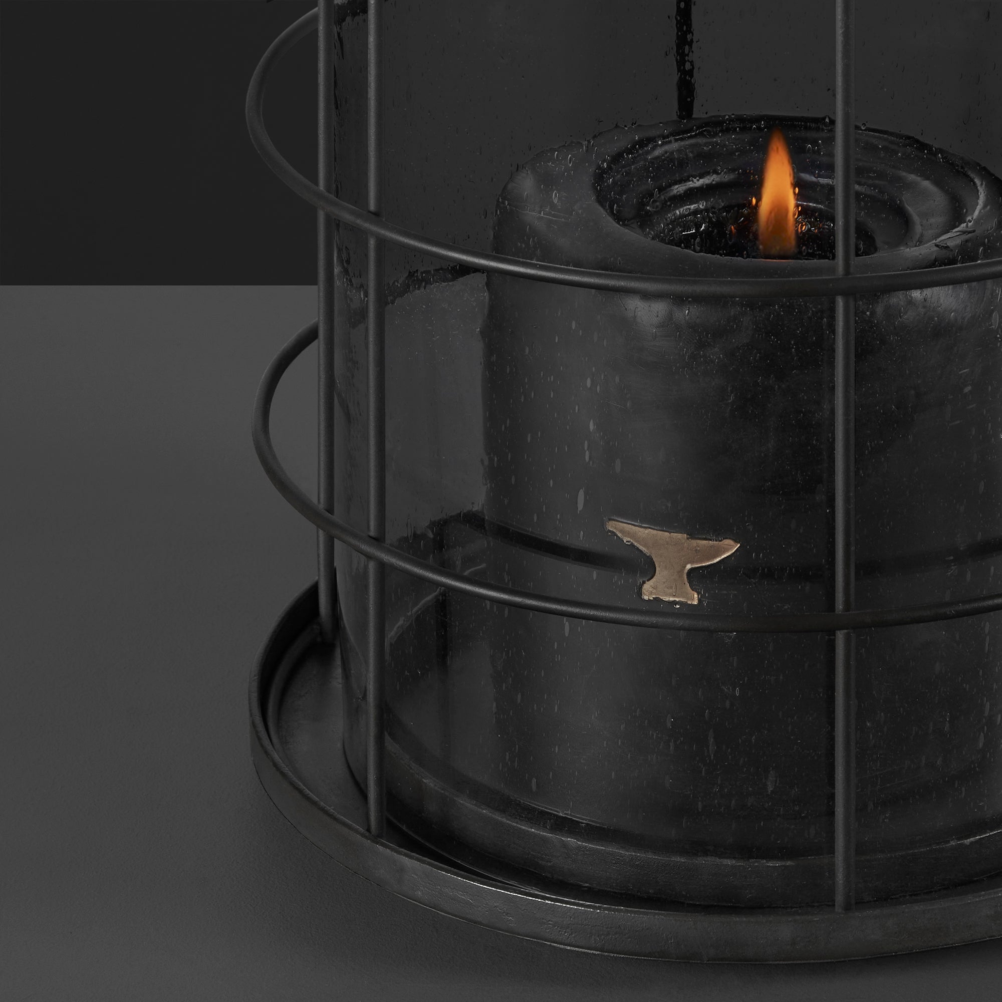 Como su nombre lo transmite, la linternilla artesano refleja el arduo trabajo de manufactura artesanal, junto con una creatividad única que combina elementos de vidrio soplado y metal en acabado tinta y laca, pieza compuesta por una sólida coraza de metal, resguardando una pantalla circular de vidrio soplado.