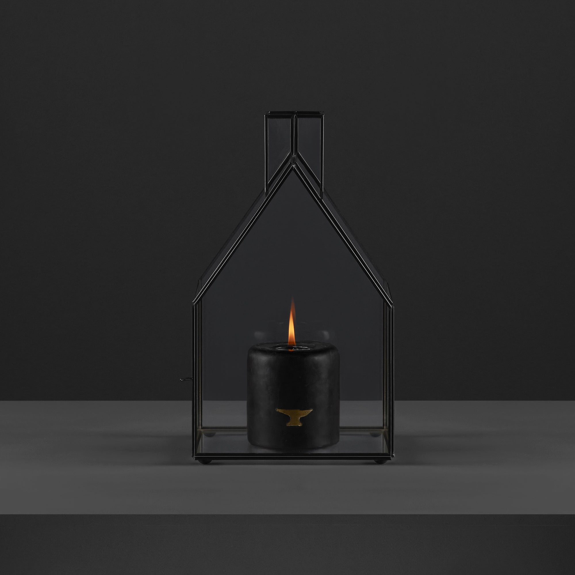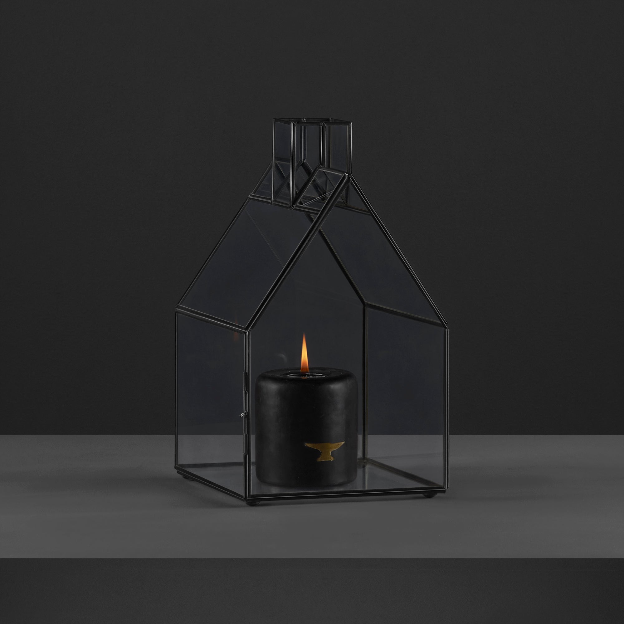 Cálida opción decorativa para tus espacios, la linternilla gabriela esta manufacturada artesanalmente y compuesta por placas de vidrio soplado transparente, así mismo, protegida por un armazón de metal en acabado tinta y laca.