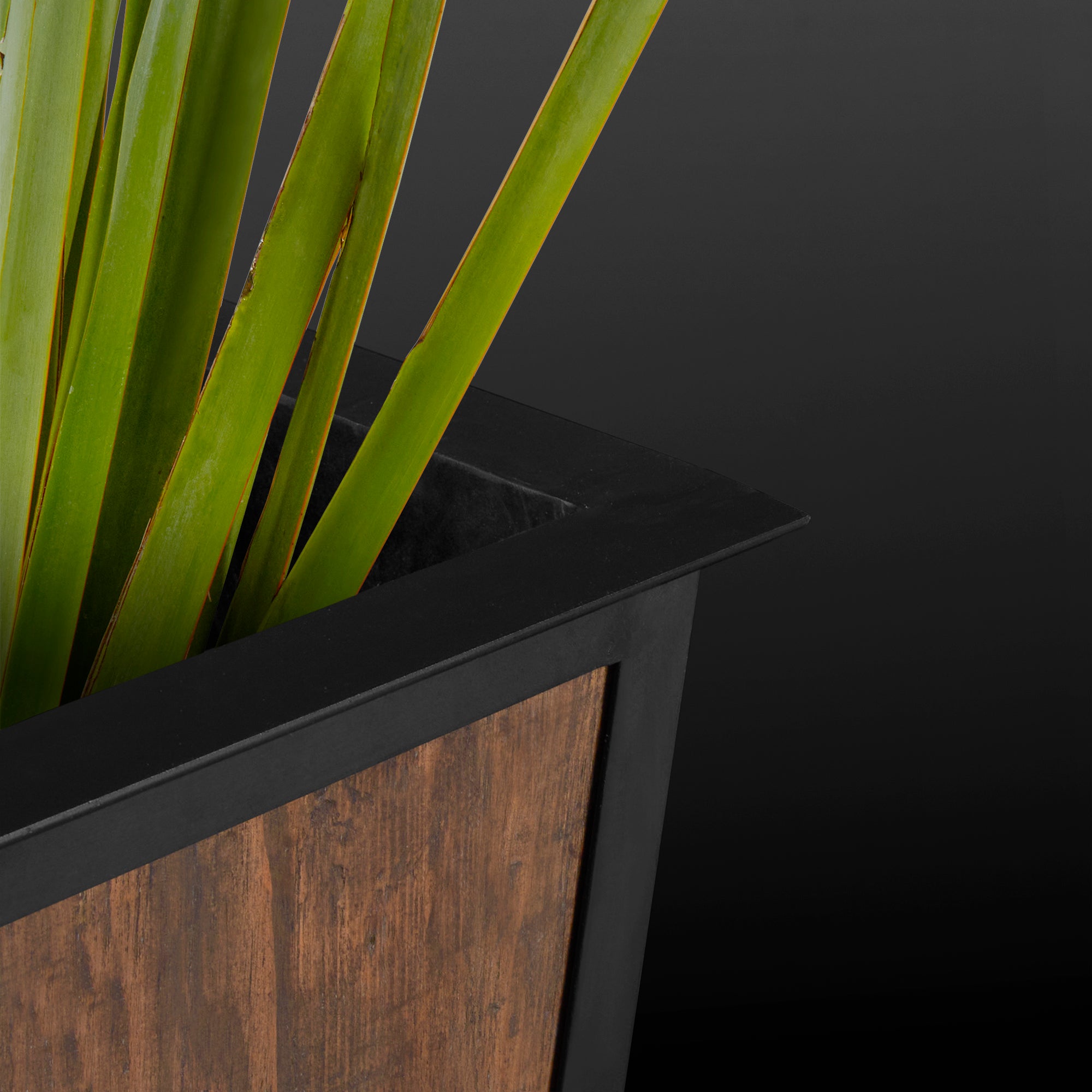La Maceta Acuña enmarca bellas placas de madera en acabado Natural República, resultando en una pieza atractiva de alma de metal, presentando además, una armoniosa combinación entre los acabados del metal en tinta y laca, con el suave acabado de la madera que la conforma.