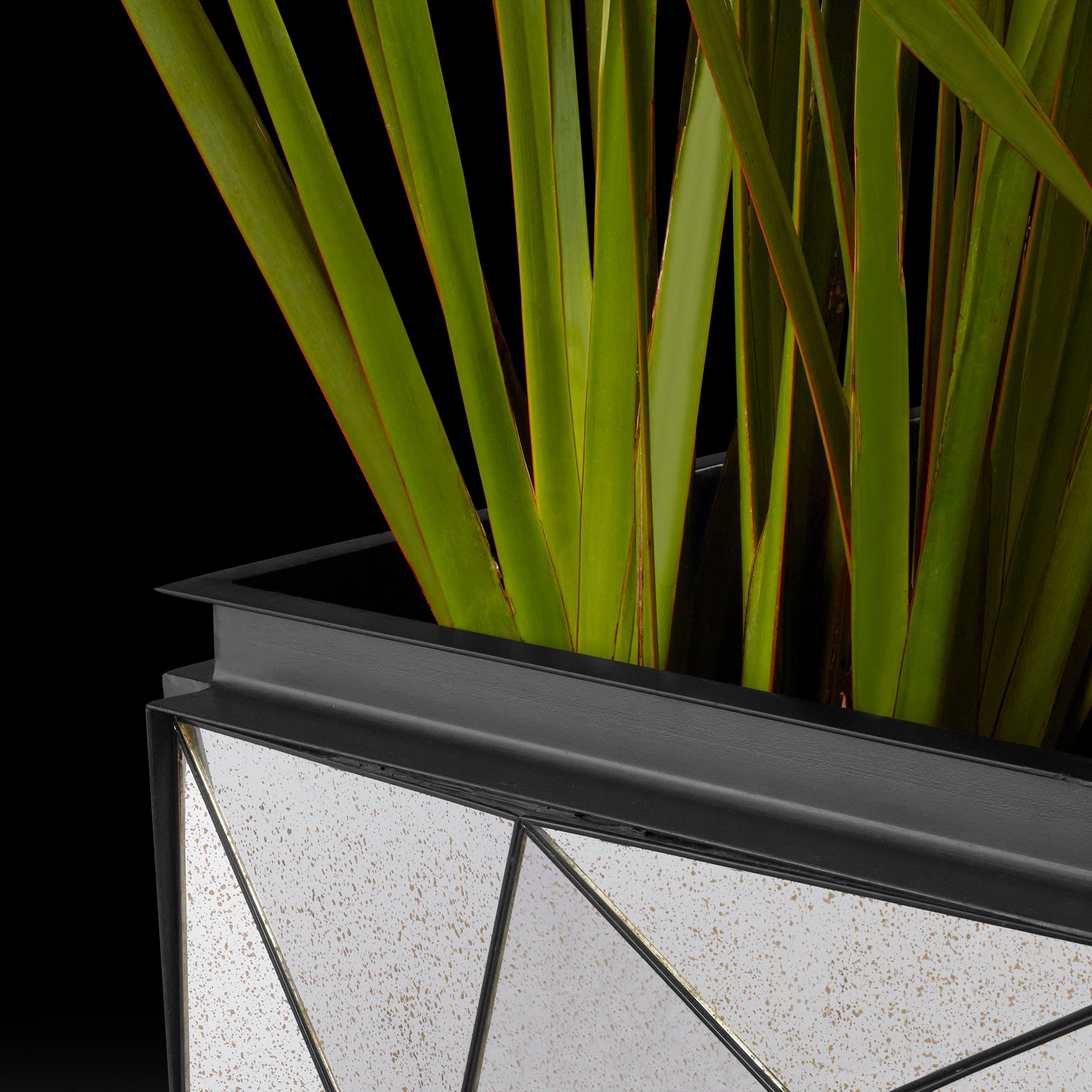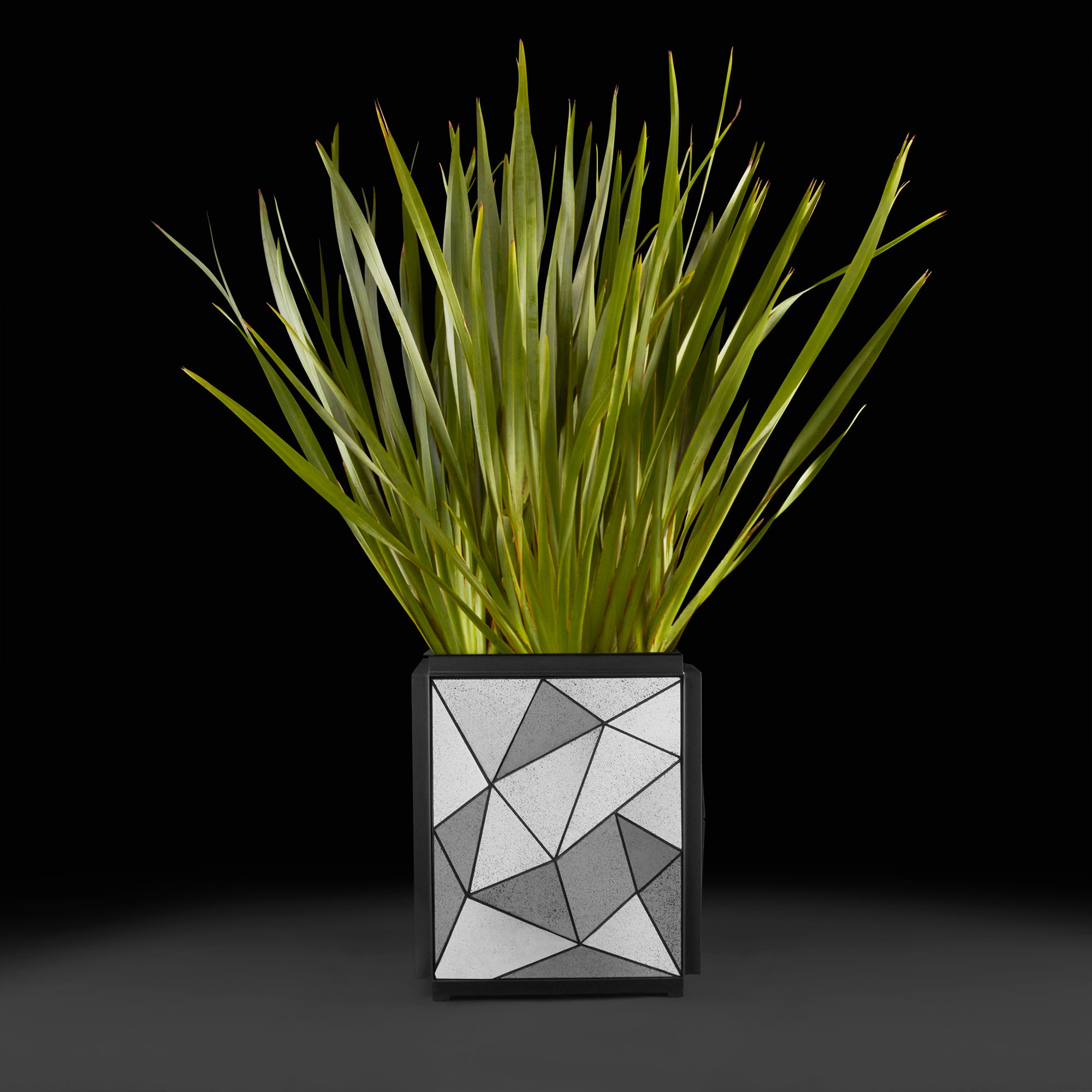 La naturaleza siempre está presente en nuestro entorno y una maceta con diseño elegante hará aún más amena la estancia de cualquier lugar, elaborada a base de metal en tono obscuro y cubierto por una placa de espejos plateados en forma geométrica, que ayuda a ser más visible la pieza, su diseño original contribuye a resaltar la belleza misma de la naturaleza. Comprueba que los pequeños detalles hacen que nuestro entorno luzca de manera diferente.