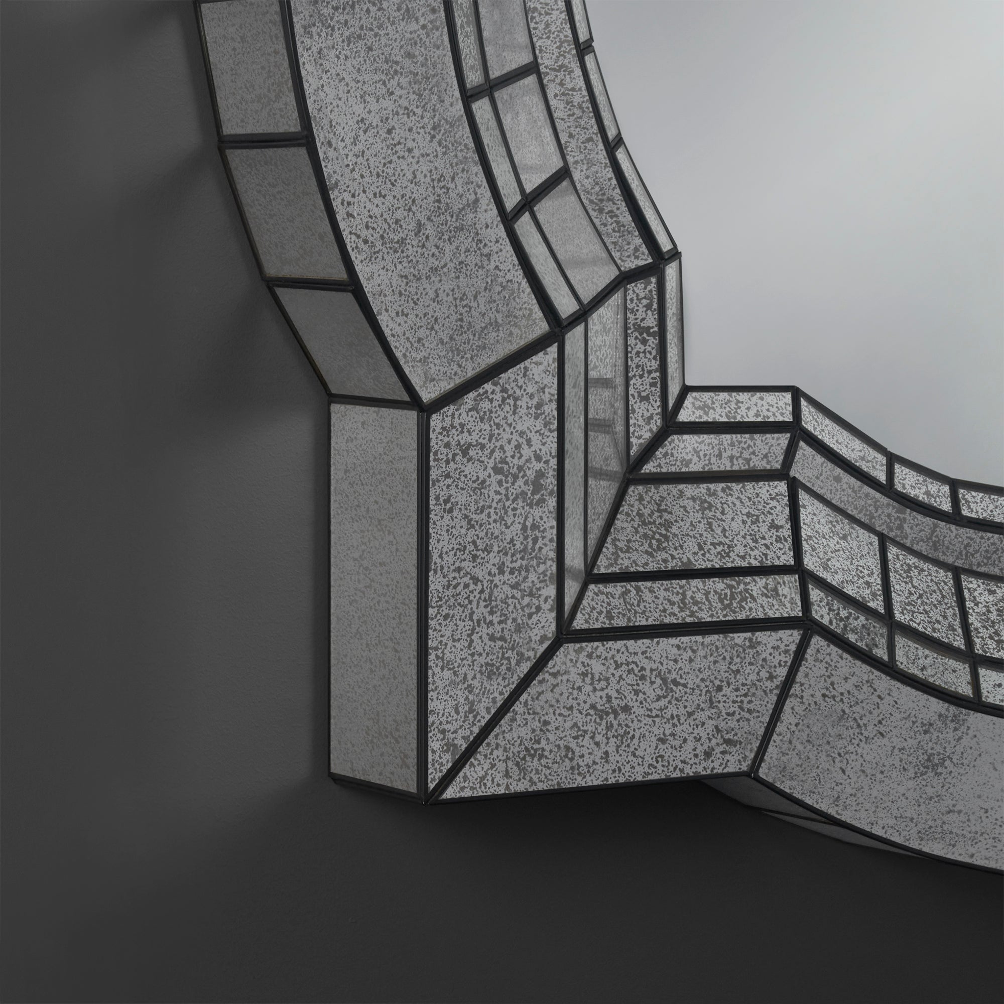 Sin duda, una original opción de espejo decorativo para muro. Nuestro Marco Espejo Darío se compone de un marco elaborado por placas de espejo viejo plateado, conformando la forma de un medallón decorativo, por demás deslumbrante.