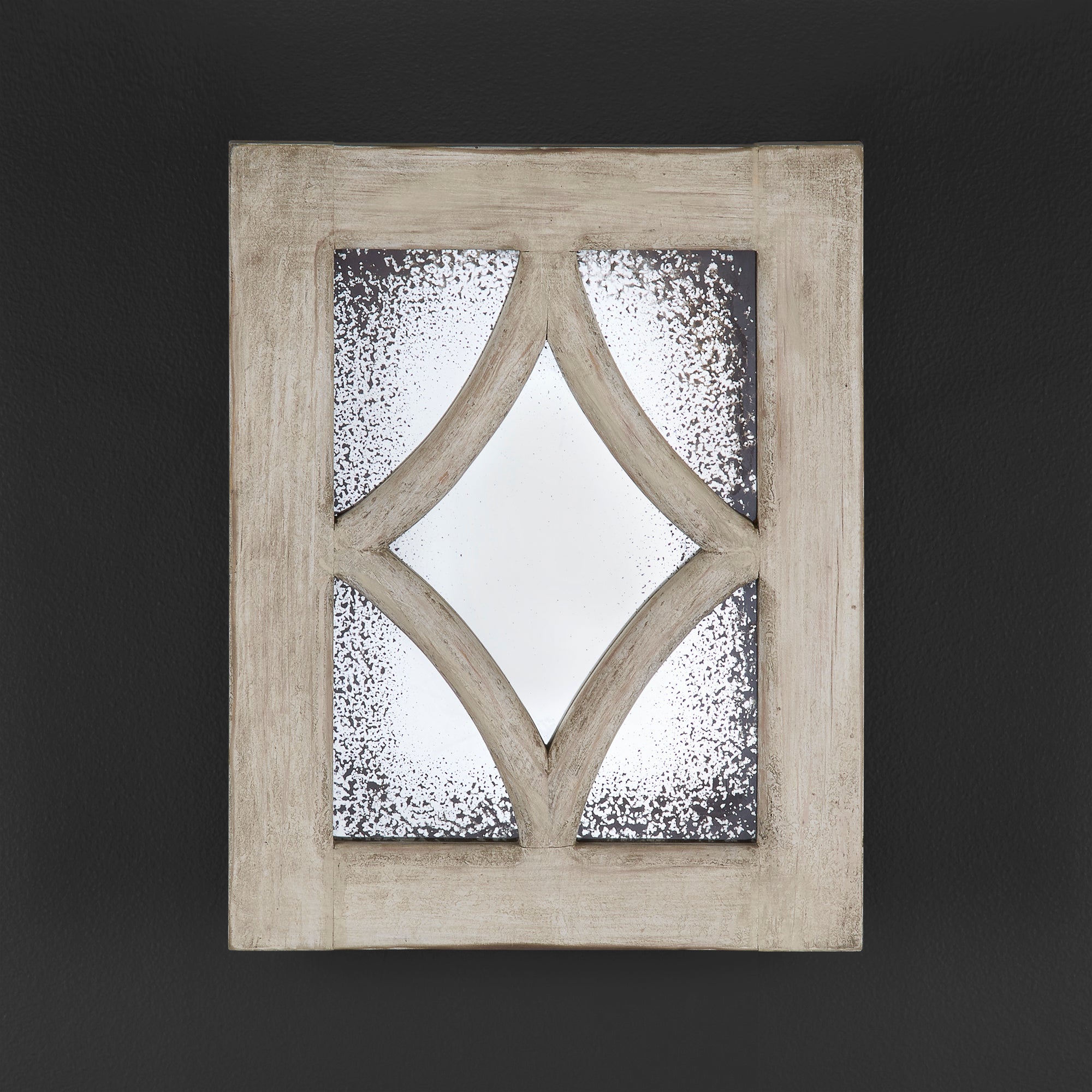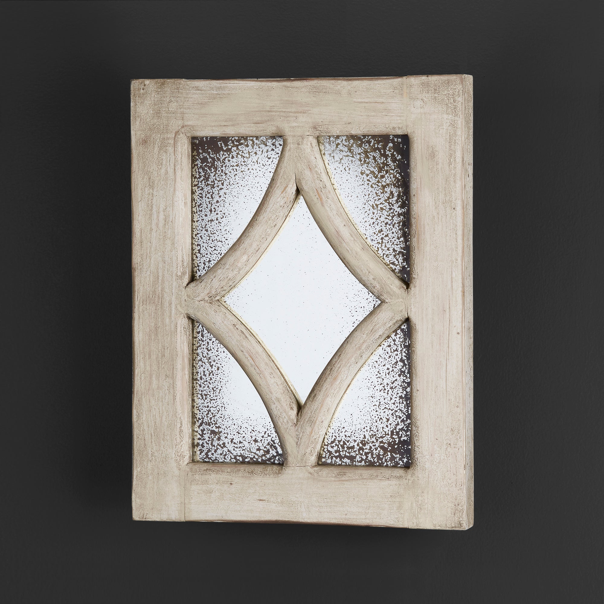 Pieza decorativa que llama la atención por su exquisita talla en madera y por su acabado de espejo viejo, que la pieza lleva al interior, la aplicación del acabado blanco elic en la madera, la hace aún más suave y luminosa, su diseño, color y sobre todo la armonía que provocan los convierten en una excelente opción para darle aún más estilo a tu hogar u oficina. Comprueba que los pequeños detalles hacen que nuestro entorno luzca de manera diferente.