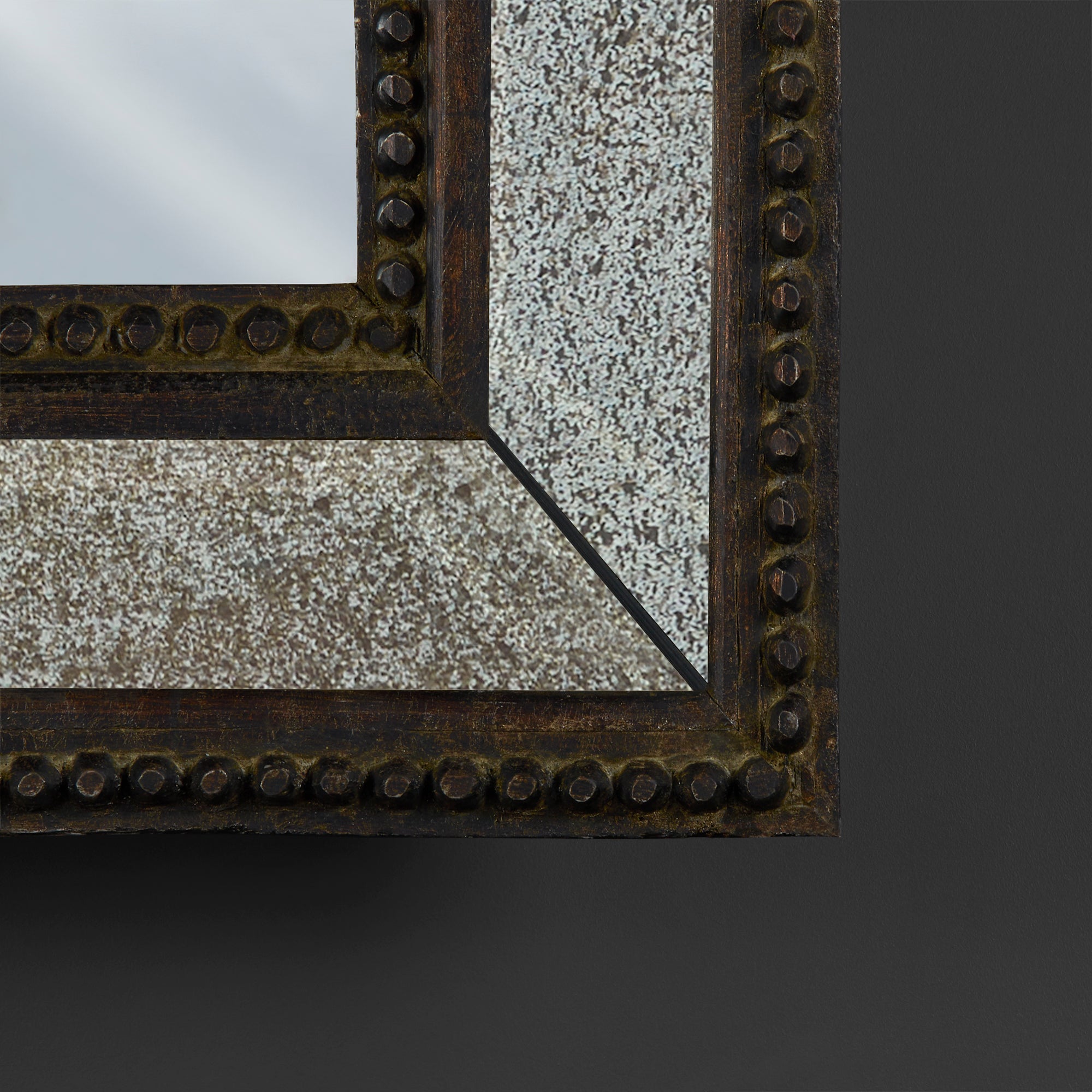 Excelente elemento funcional que, además de servir como auxiliar decorativo, nos ayuda a reflejar nuestro estilo, creando espacios acorde a nuestra personalidad generando confianza y armonía en nuestra persona, provocando una sensación de comodidad y elegancia, elaborado sobre un marco a base de madera natural maciza, tallada a mano, con un hermoso diseño de desgaste en cada una de las placas de espejo.
