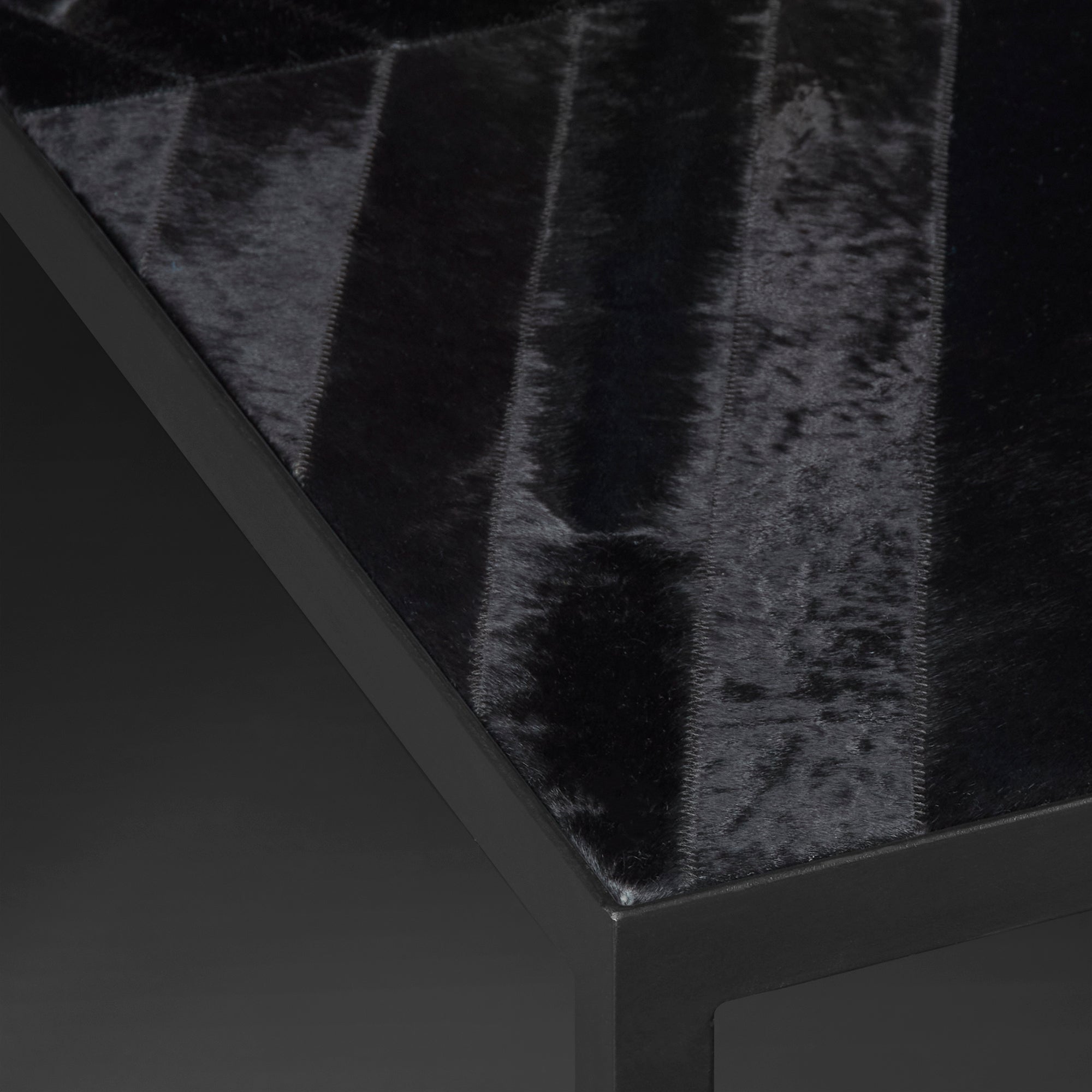 Esta mesa es una alternativa decorativa y atractiva que se adapta a la perfección en cualquier espacio. Elaborada a partir de una base metálica en tono obscuro, con una cubierta tapizada en pelo negro genuino y auténtico, creando un diseño original el cual le permitirá adecuarse a cualquier ambiente.