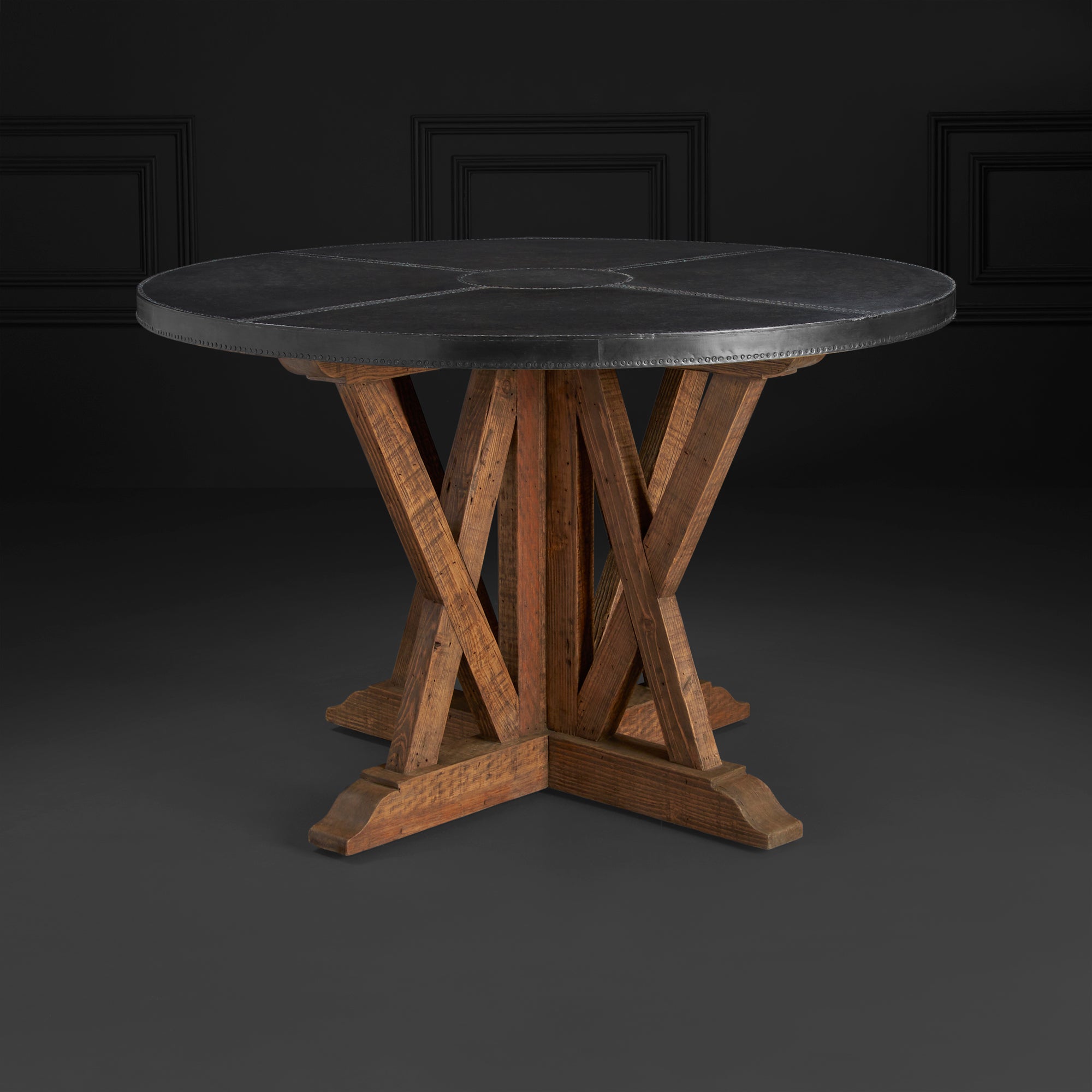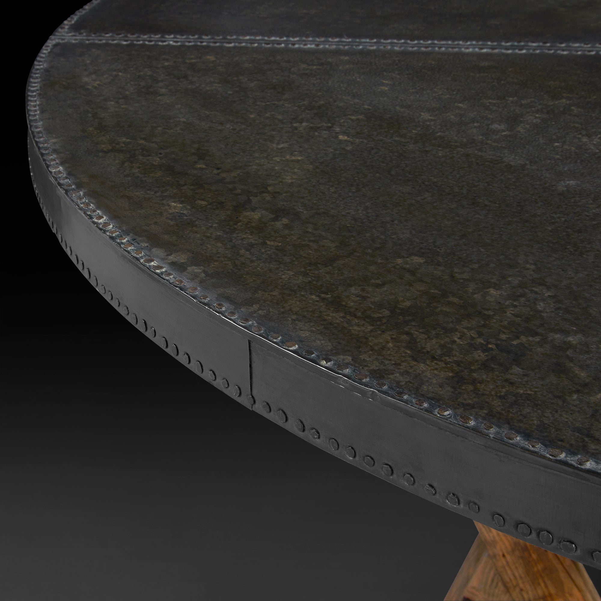 Esta mesa es una alternativa decorativa y atractiva que se adapta a la perfección en cualquier espacio. Elaborada a mano con una base de madera natural sólida que le da soporte y estabilidad con una cubierta metálica forrada de lamina. Su diseño le permitirá adecuarse a cualquier ambiente.