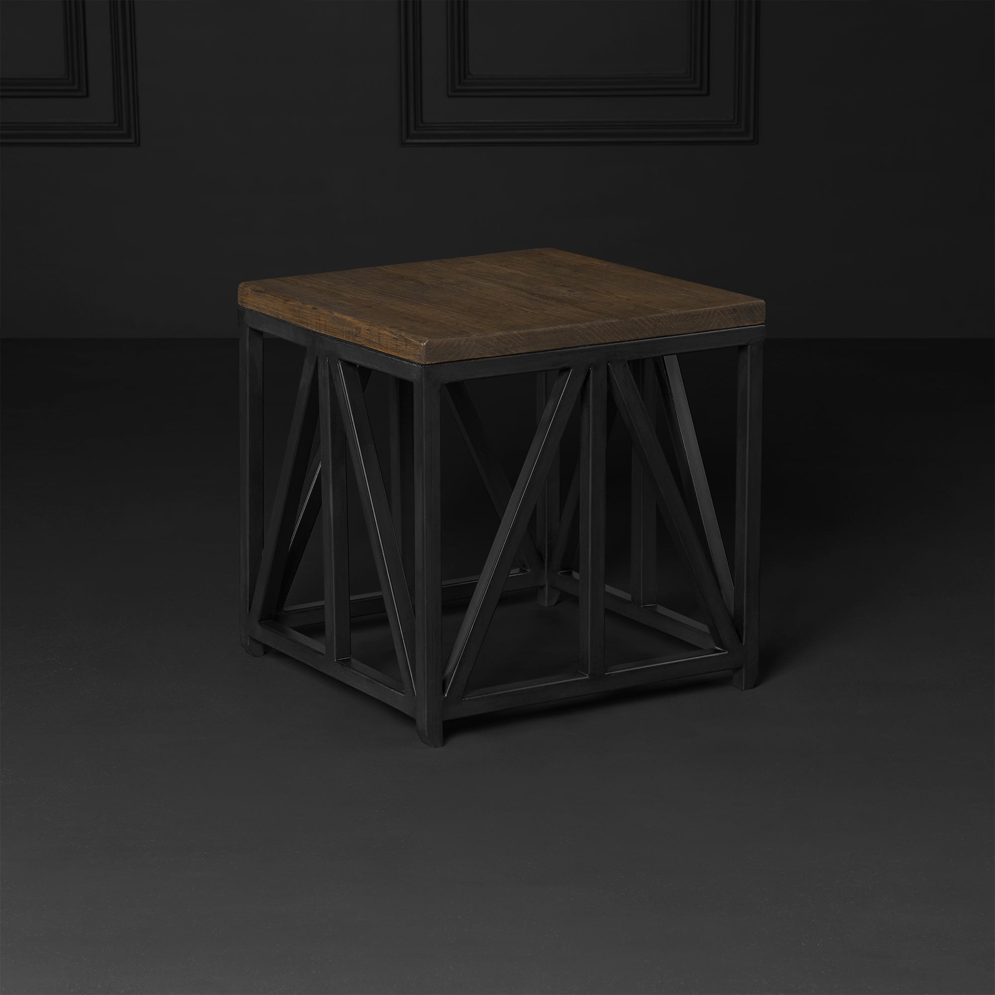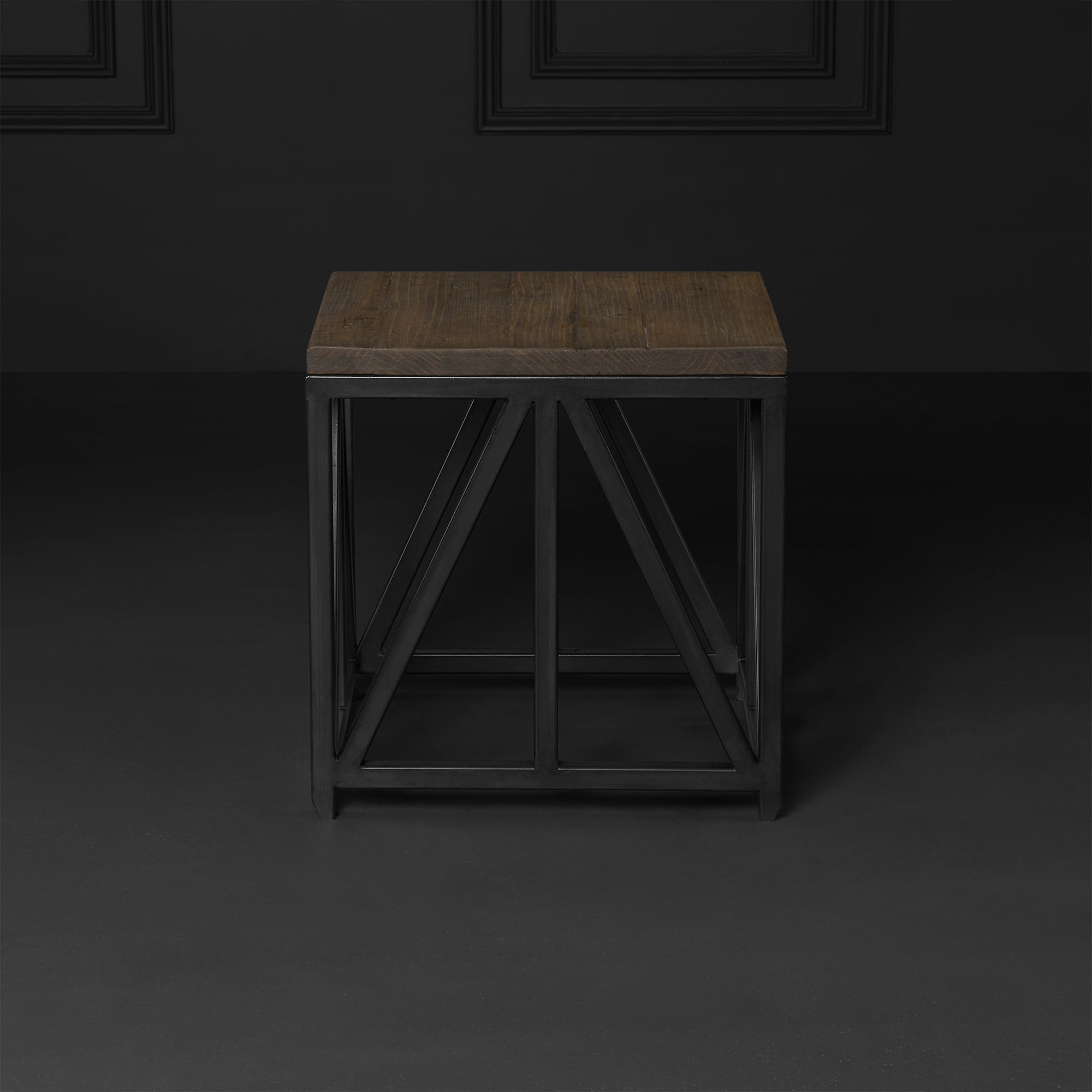 Práctica mesa lateral de forma cuadrada, con cubierta en Madera Natural República. Pieza ligera y útil para el aprovechamiento de espacios reducidos.