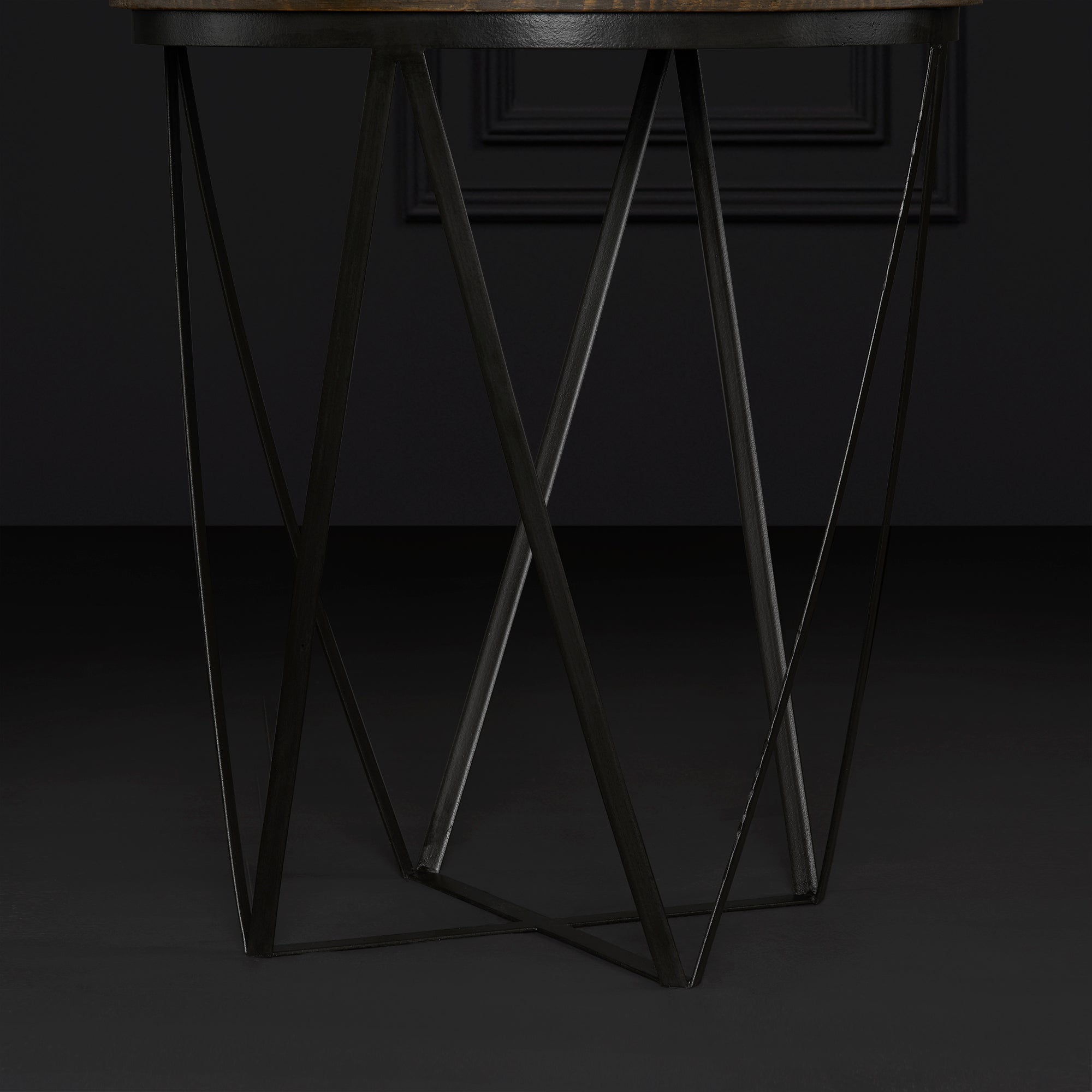 Elaborada a mano a base de Metal forjado a mano en herrería con un diseño de líneas limpias y entrelazadas. su cubierta es de madera maciza en tono natural. Coloca sobre ella algunos elementos decorativos y haz que luzcan de una manera sin igual. Pieza única y exclusiva de Casa Armida.