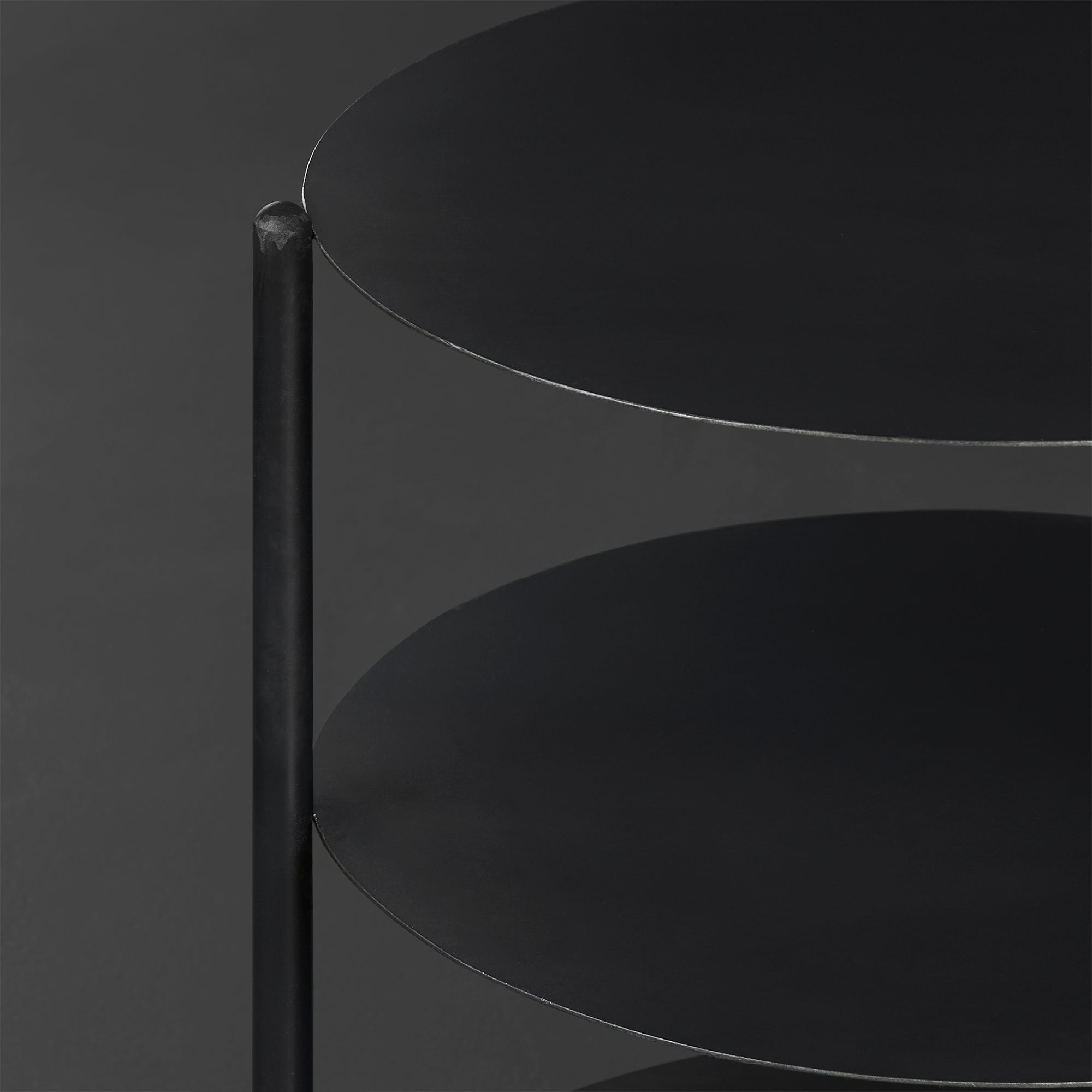 Elaborada a mano a base de metal con un diseño de discos y líneas limpias perfectamente unidas, su estructura y tamaño son ideales para armonizar perfectamente cualquier decoración.