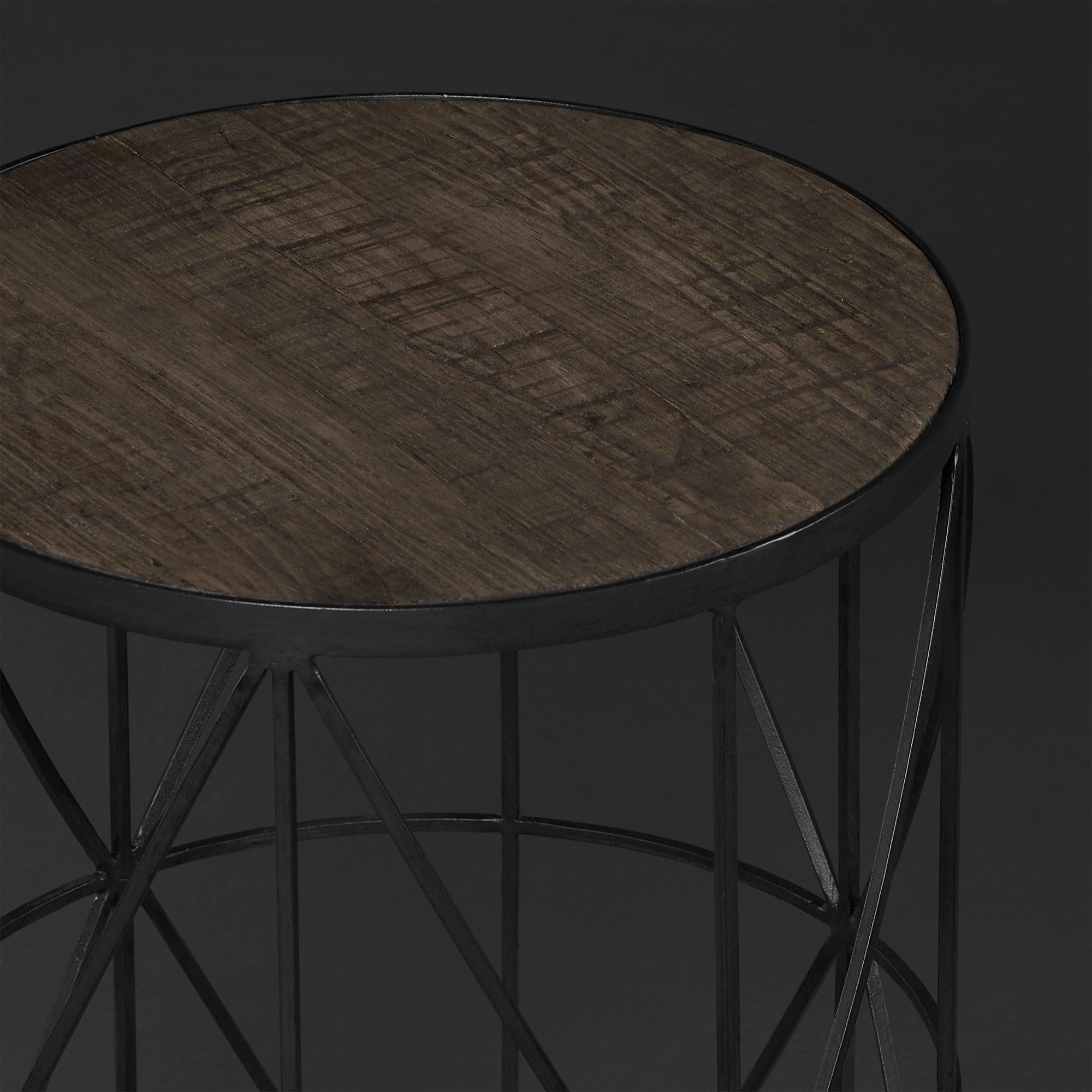 Mesa lateral ideal para integrar texturas en tus espacios decorativos, la cubierta de madera en Natural República la convierte en una pieza atractiva y de sólido carácter. Base en Metal Tinta y Laca.