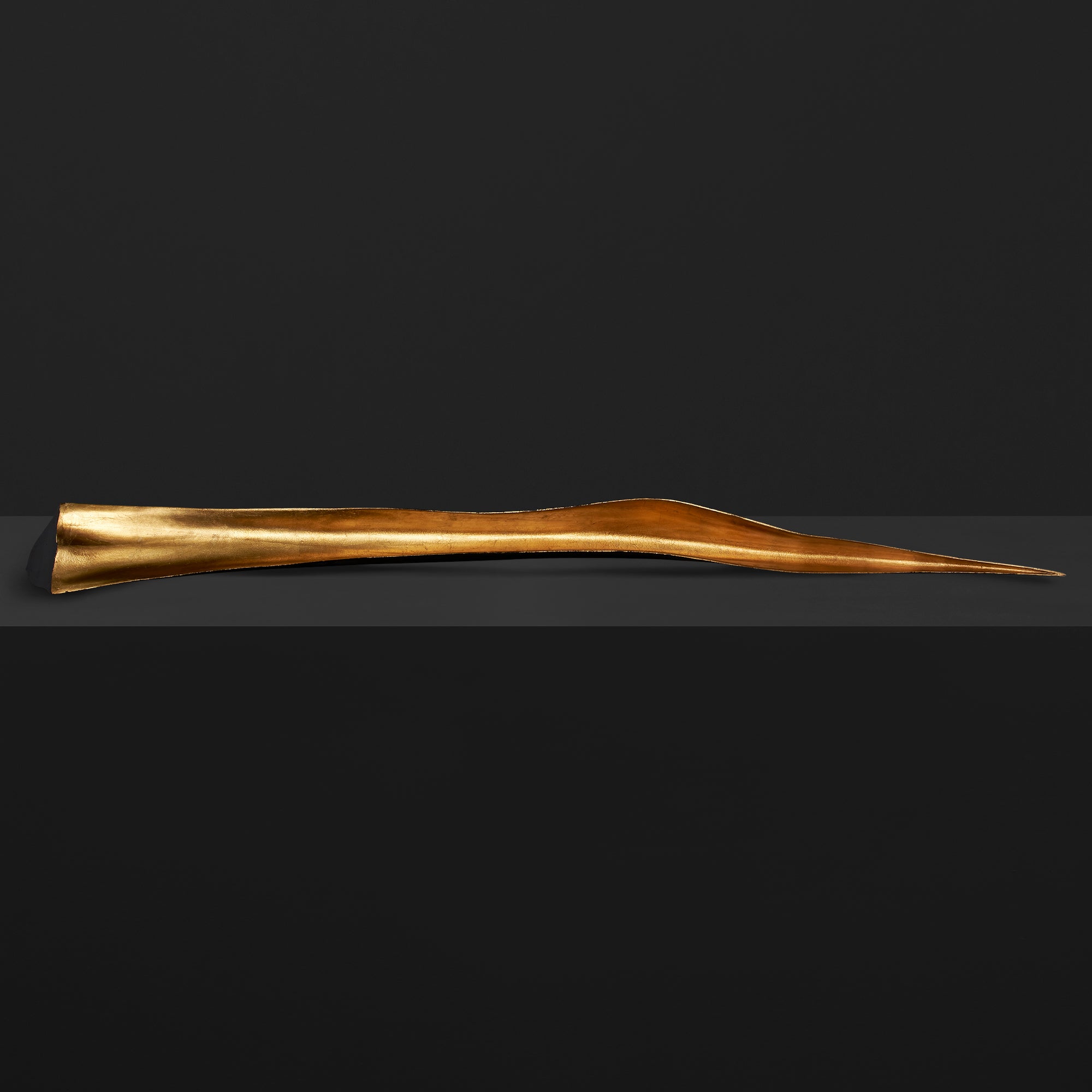 elaborada a base de resina, forrada en tono dorado con hoja de oro y por fuera mantiene un tono oscuro el cual le aporta estética y elegancia a la pieza, su diseño, color y sobre todo la armonía que provoca esta combinación, la convierten en una excelente opción para darle aún más estilo a tu hogar u oficina.