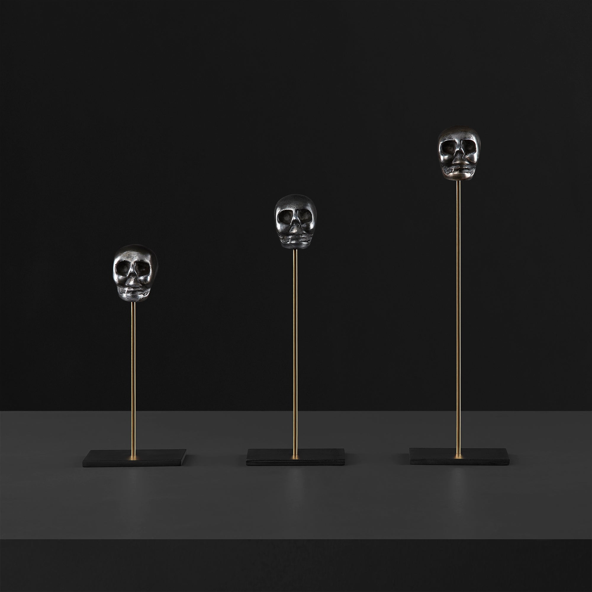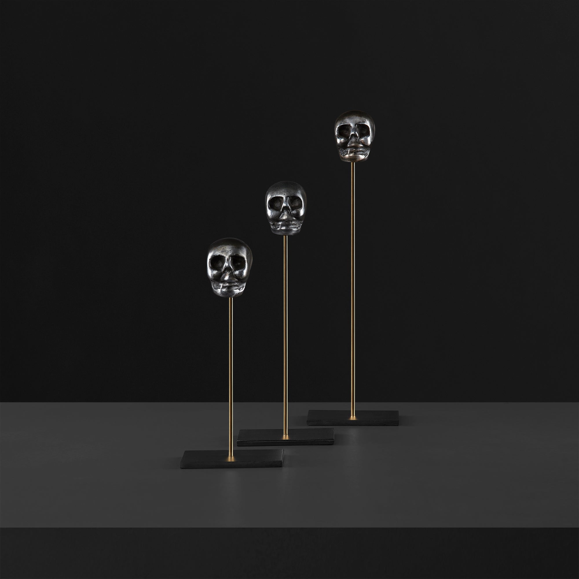 Dentro de tu espacio siempre hay lugar para éstos fantásticos complementos de decoración, cada cráneo decorativo está elaborado en aluminio de tono obscuro satinado, soportado por un pedestal de bronce y con una base en metal, su diseño, color y sobre todo, la armonía que provocan, los convierten en una excelente opción para darle aún más estilo a tu hogar u oficina.