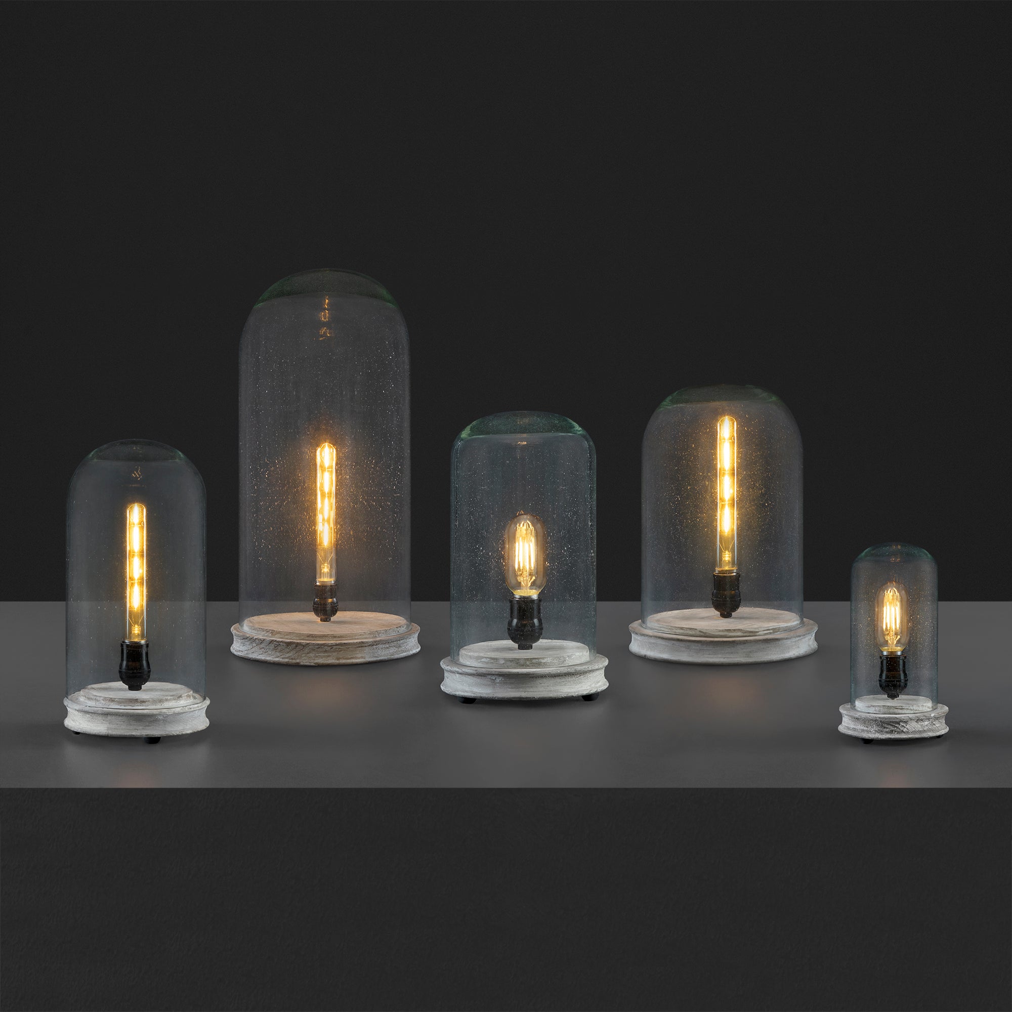 Descubre nuestra atractiva colección de Lámparas de Mesa Domo Dosul, a tavés de la cual presentamos éstas bellas creaciones manufacturadas artesanalmente. Nuesta colección Dósul se compone de un capelo elaborado en vidrio soplado como pantalla, así como de una base de madera tallada, y de un foco de iluminación LED. Creando una ambientación original y reconfortante.