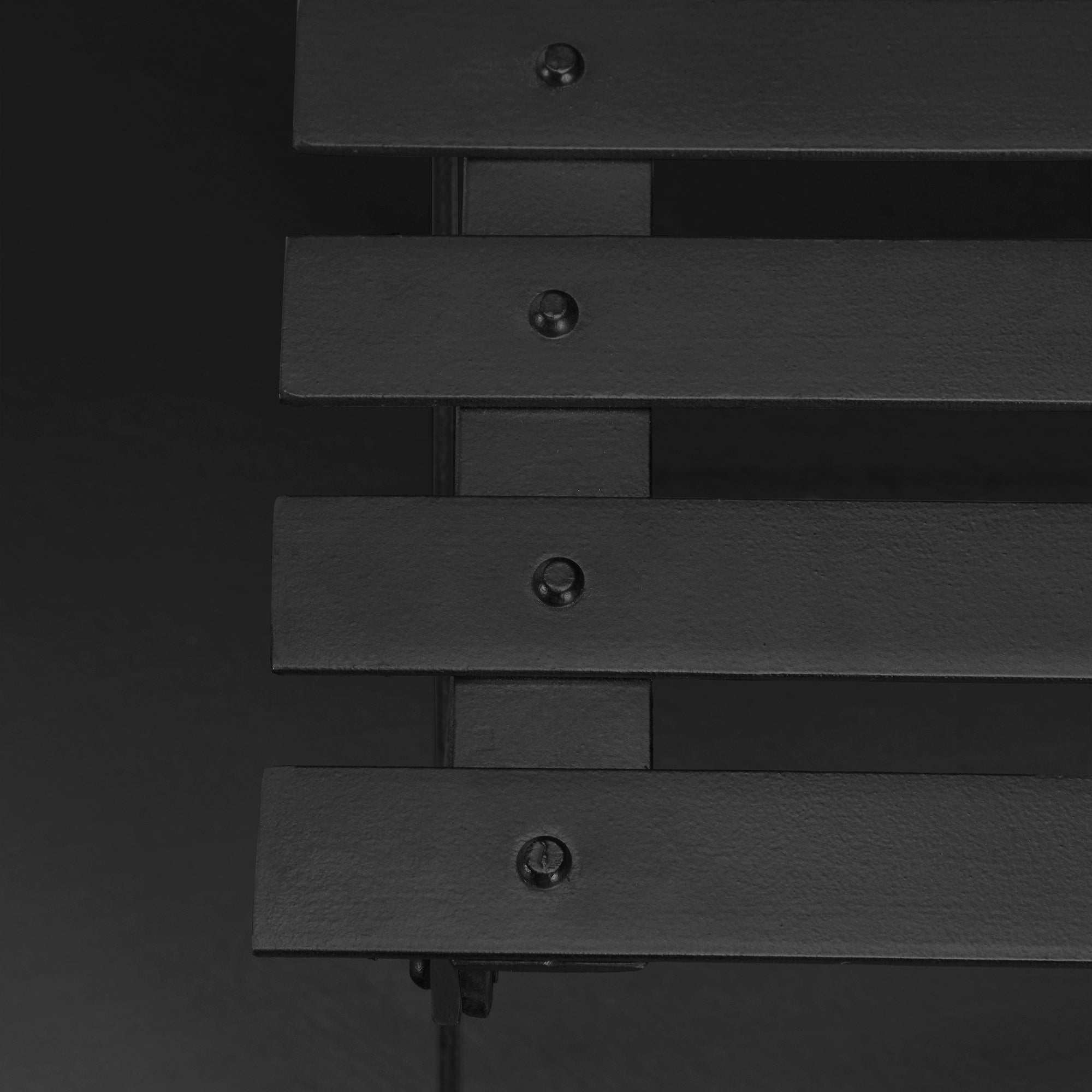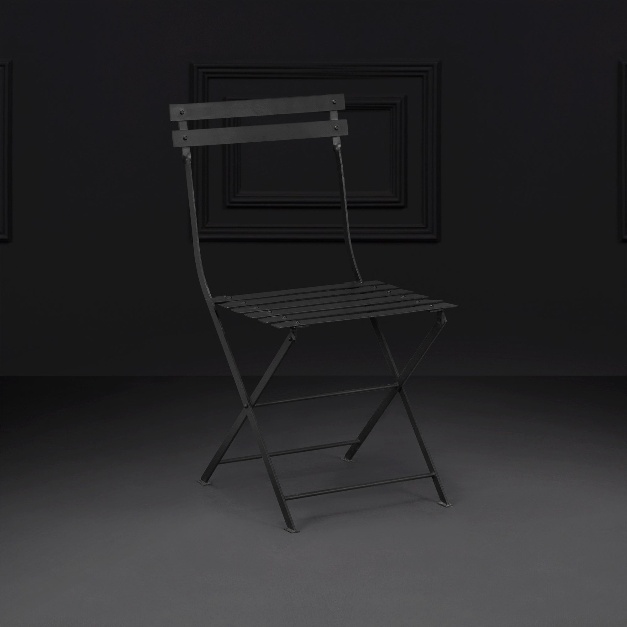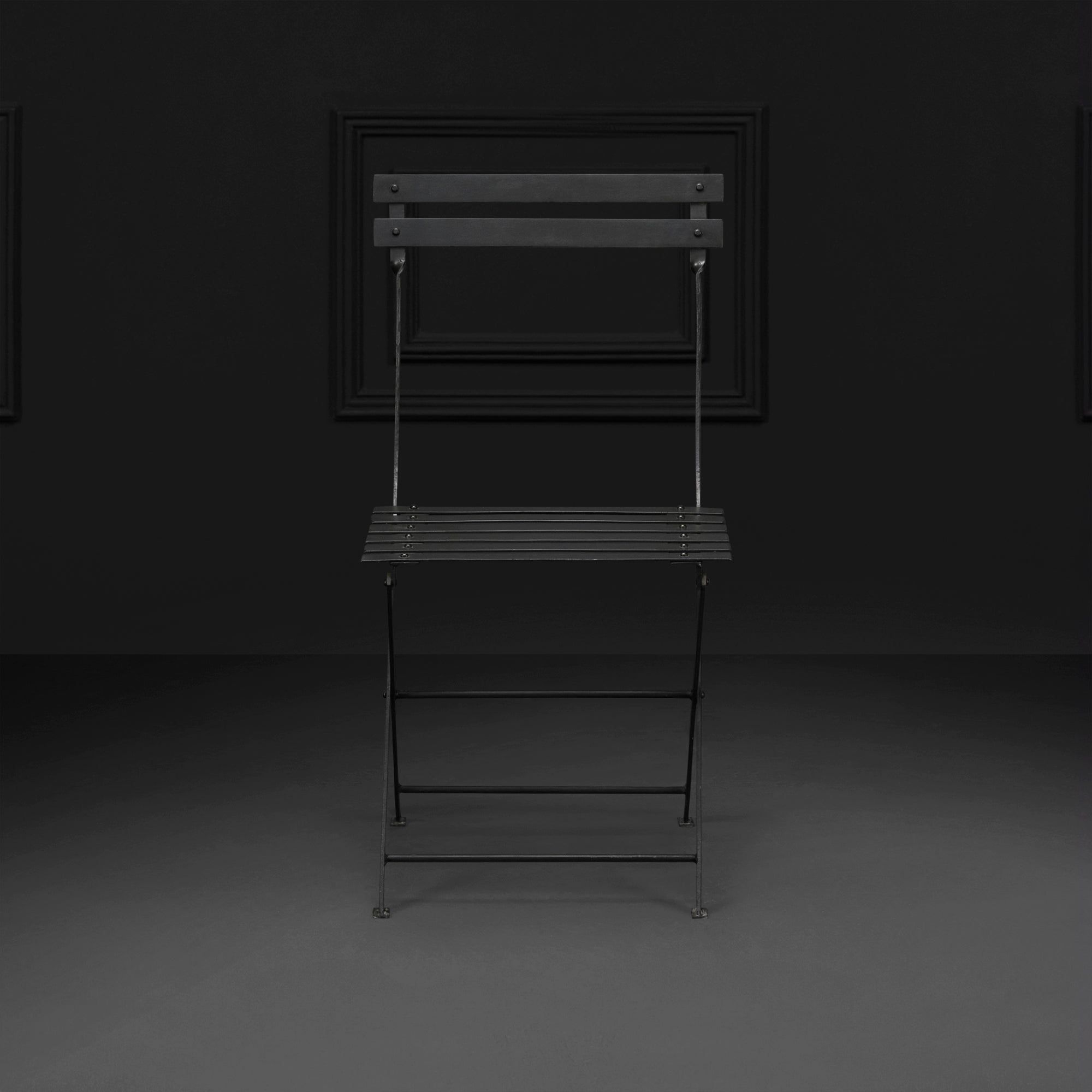 Silla fabricada en metal forjado en herrería, con acabado tinta y laca. Apta para interiores y exteriores.