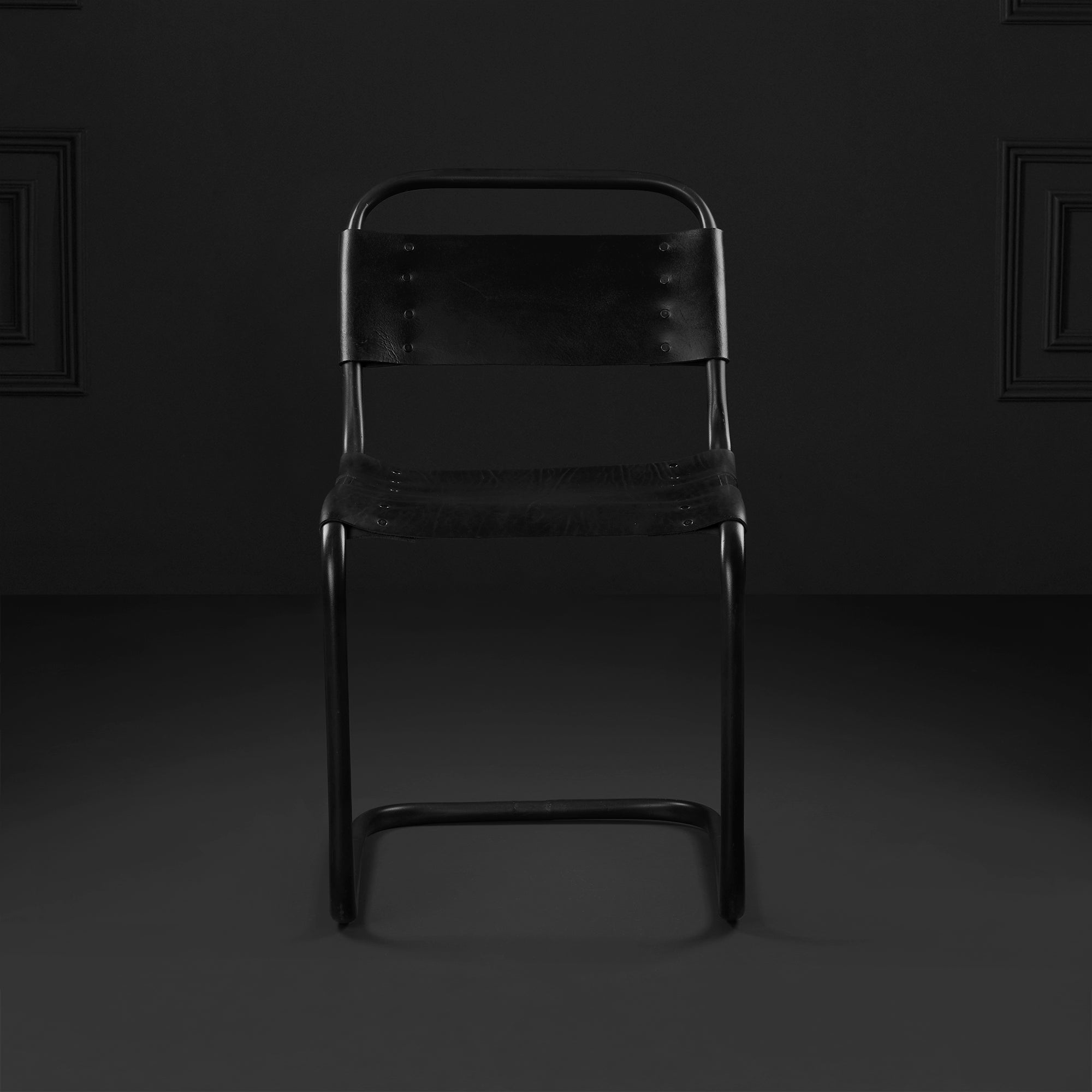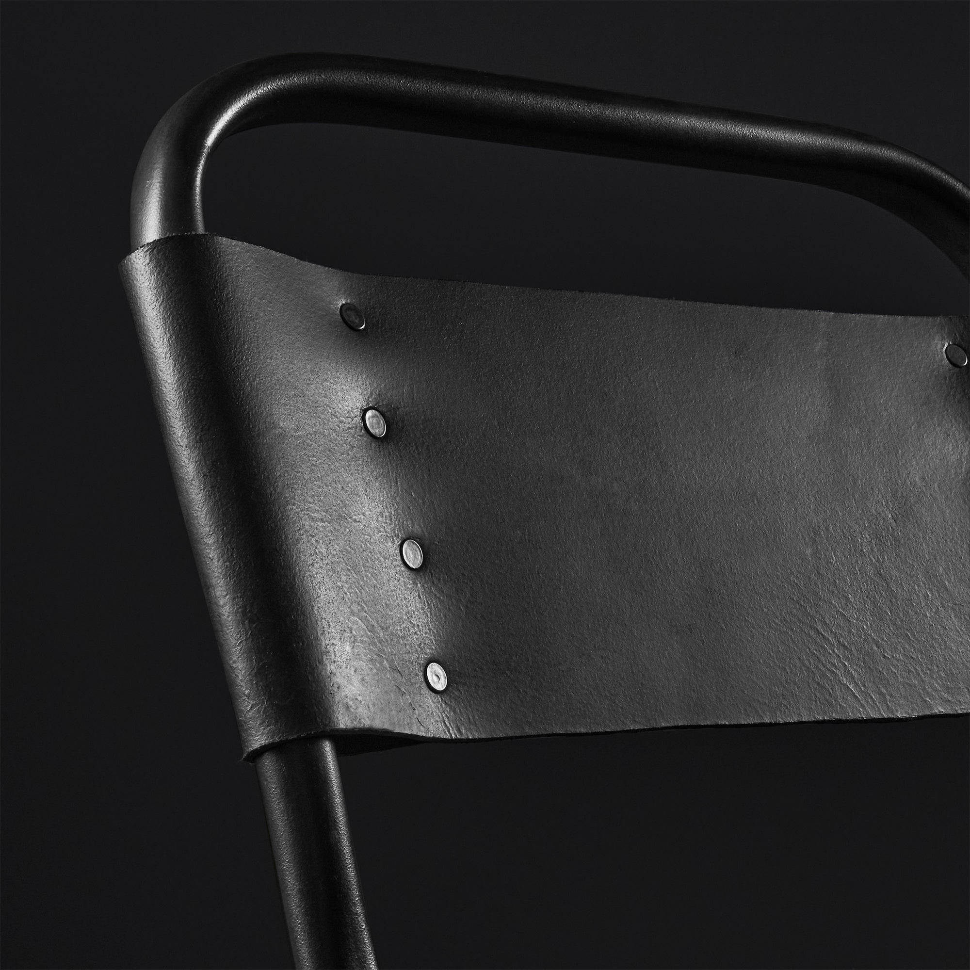 Elaborada a base de metal en tono obscuro, el asiento y el raspando van forrados de piel en tono negro que le aportan confort y estabilidad. Su diseño, color y sobre todo la armonía que esta combinación provoca, la convierten en una excelente opción para darle aún más estilo a tu hogar.